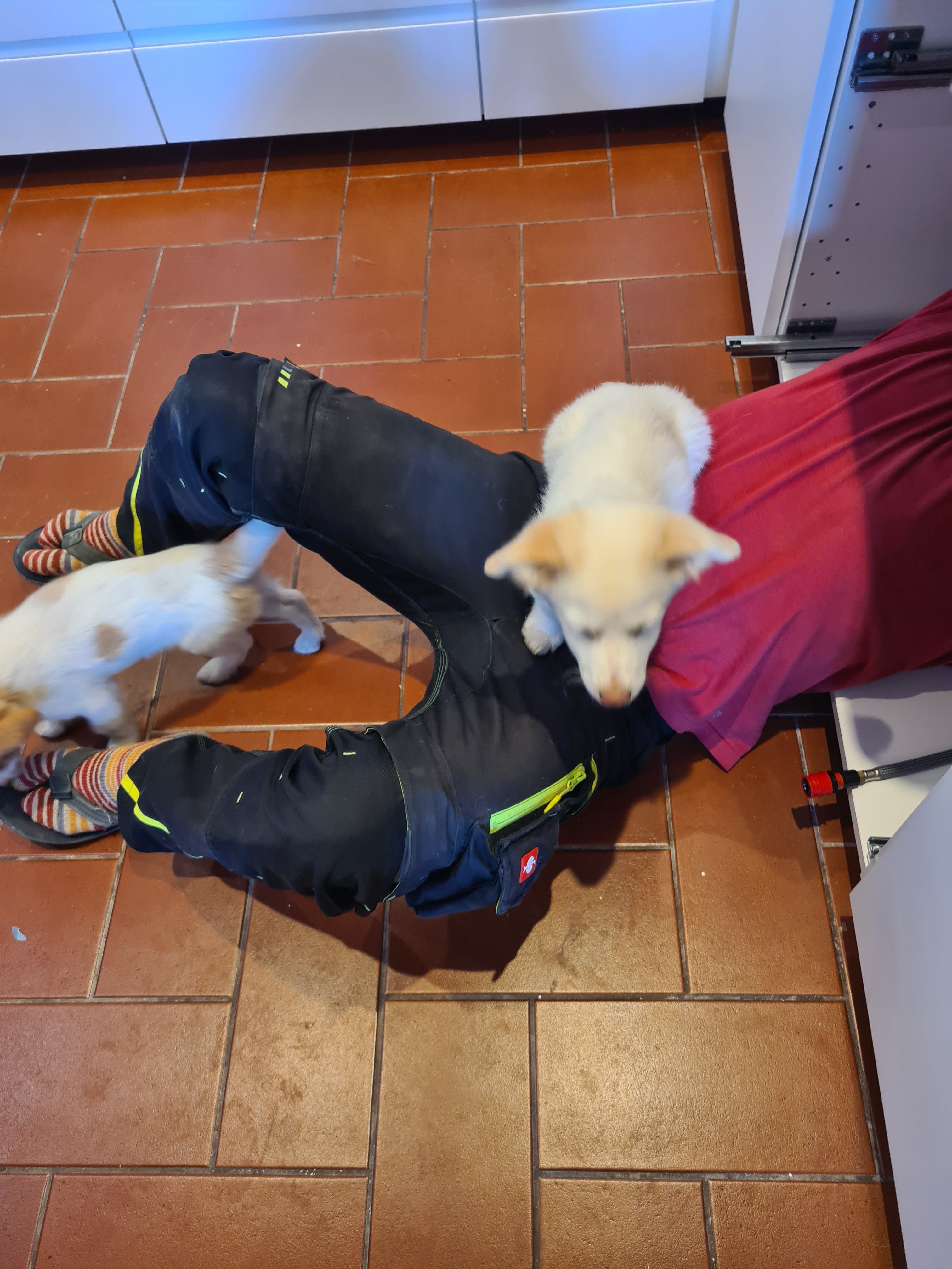 Die Welpen müssen überall dabei sein.