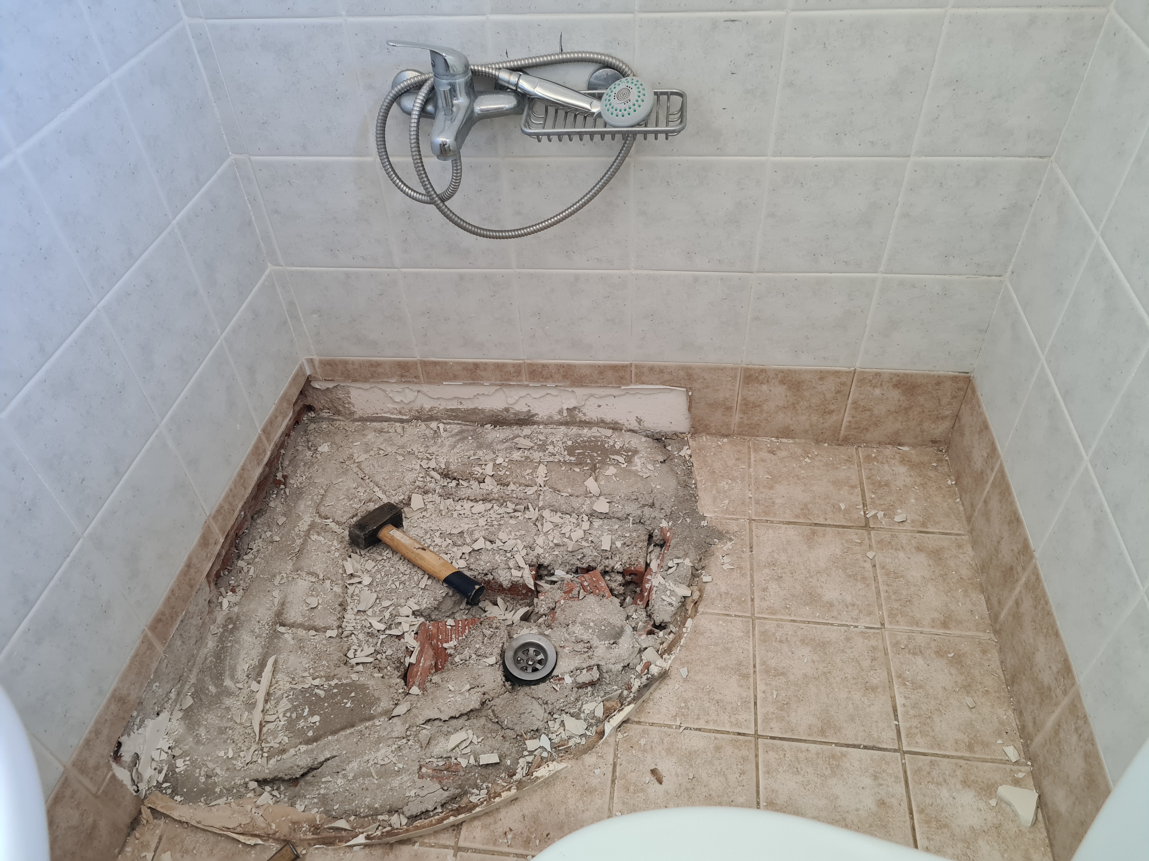 Die Duschtasse muss raus, schließlich haben wir noch 2 Duschen im Haus.