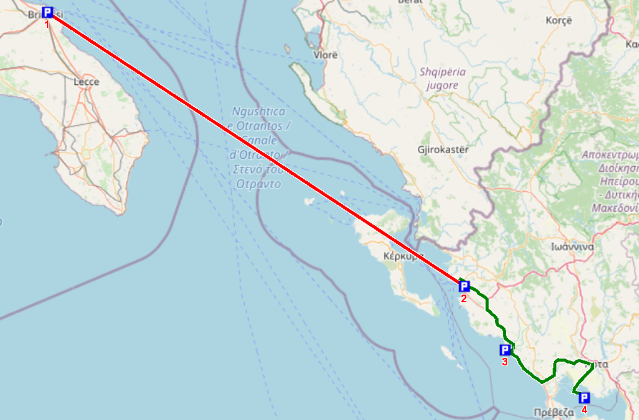 1 Fährhafen Brindisi N 40° 38′ 47,9″ O 17° 57′ 32,6″