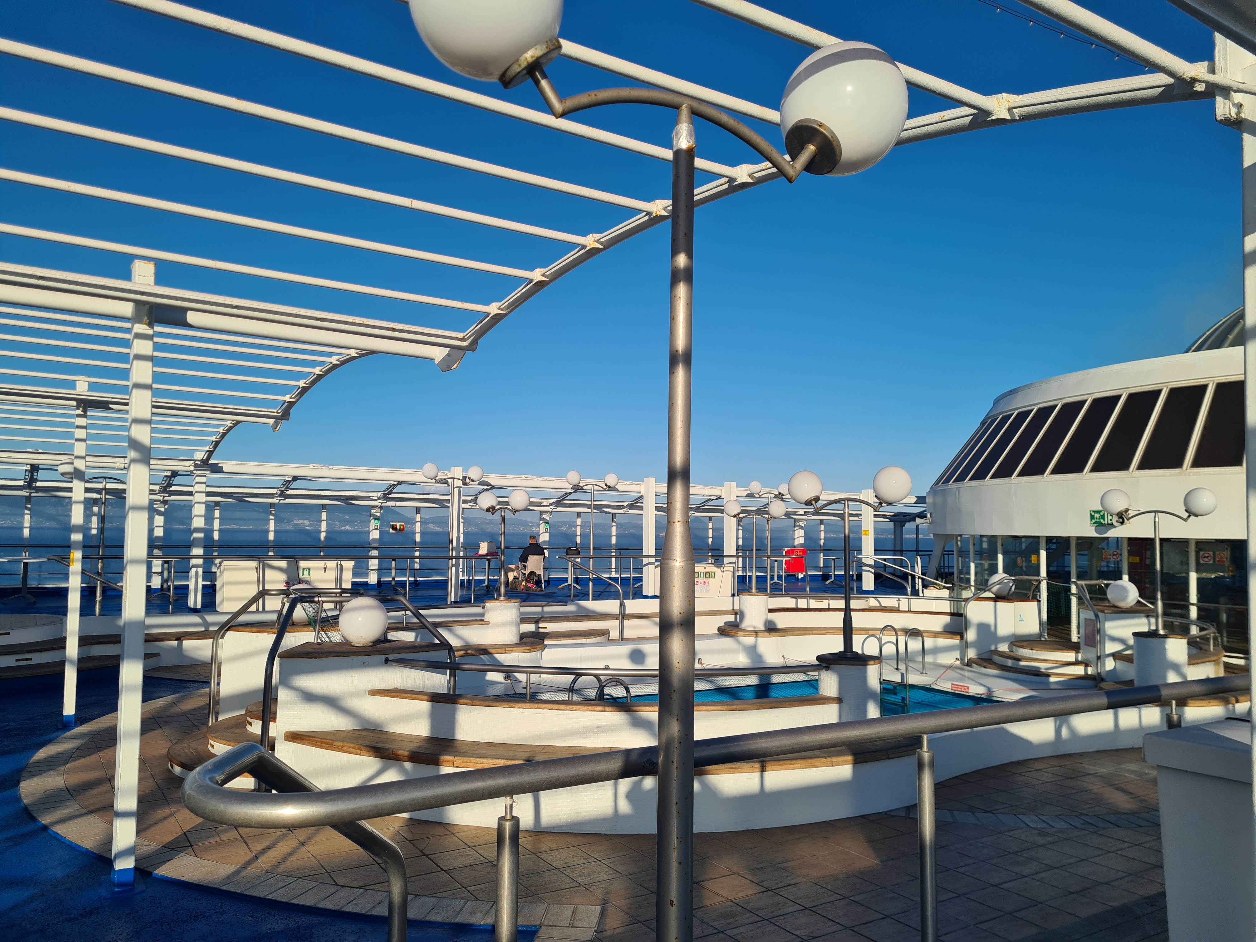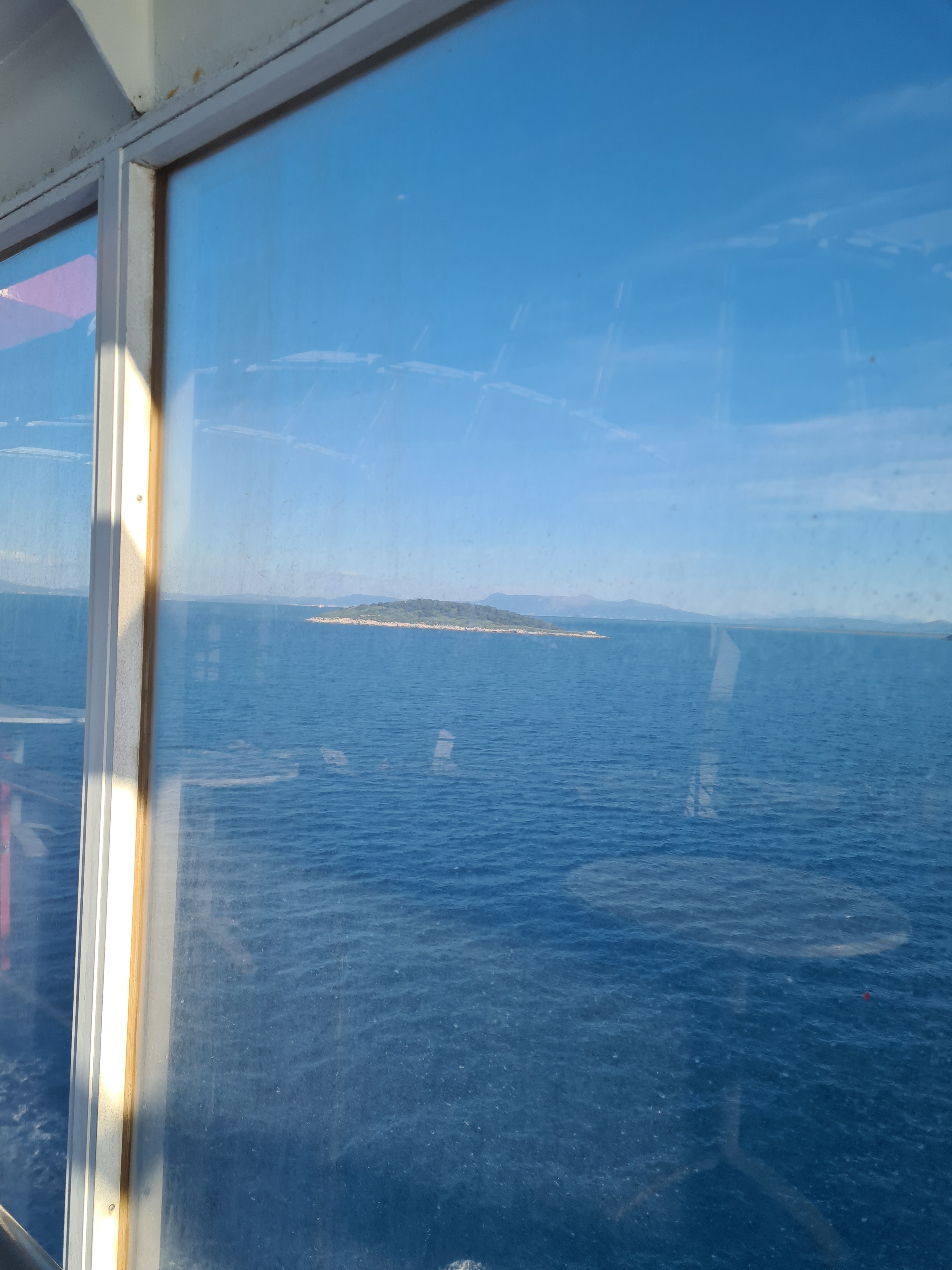 Um 7 Uhr werden wir geweckt und sind schon zwischen Igoumenitsa und Korfu. Am Anfang der Fahrt hat das Schiff geschlingert, aber im Schlaf merkt man das ja nicht, haben wir uns gedacht und uns aufs Ohr gelegt. Und so war es dann auch. Zumindest in unserer Kabine war keiner seekrank.