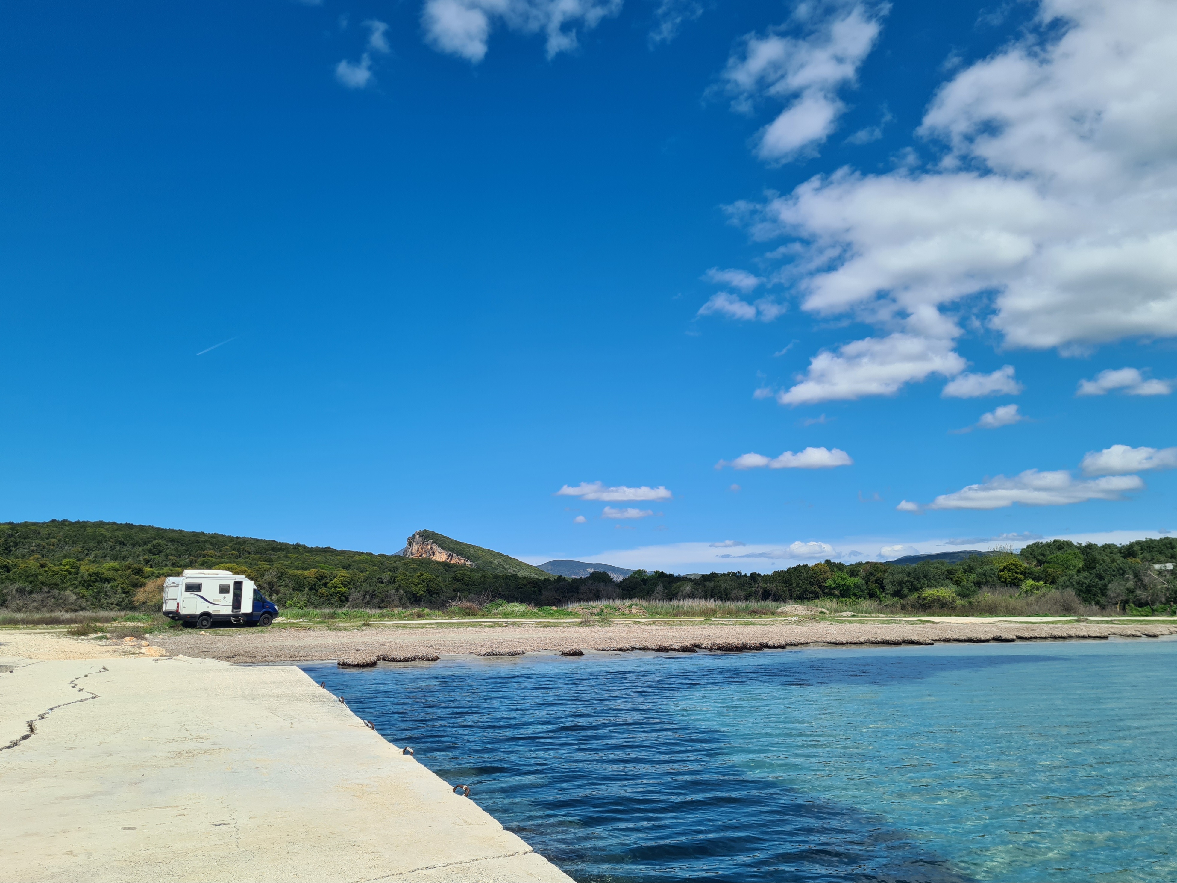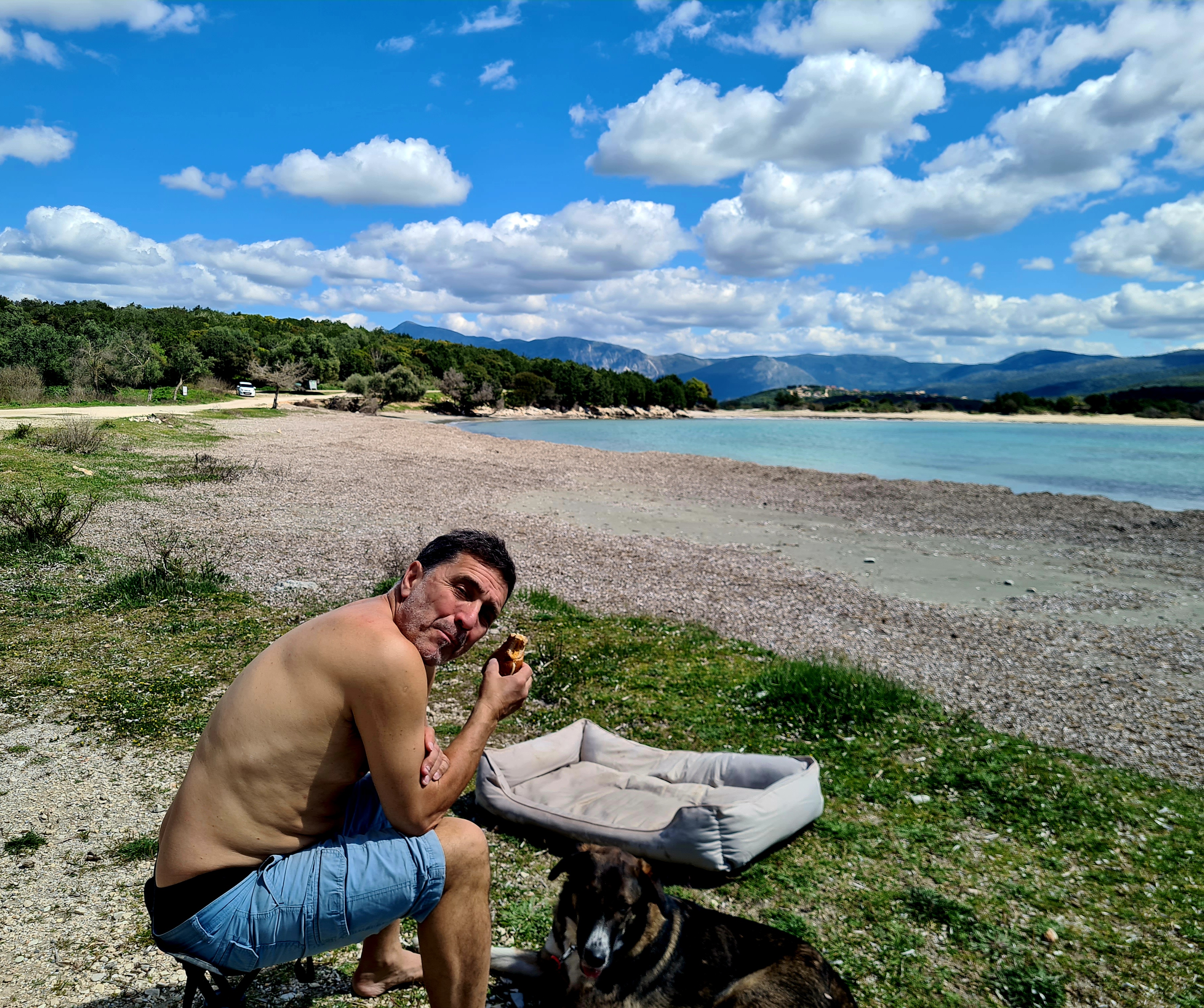 Nach einem „alten“ Ritual gehen wir nach der Überfahrt in die Bäckerei in Igoumenitsa und frühstücken am Drepano-Beach.