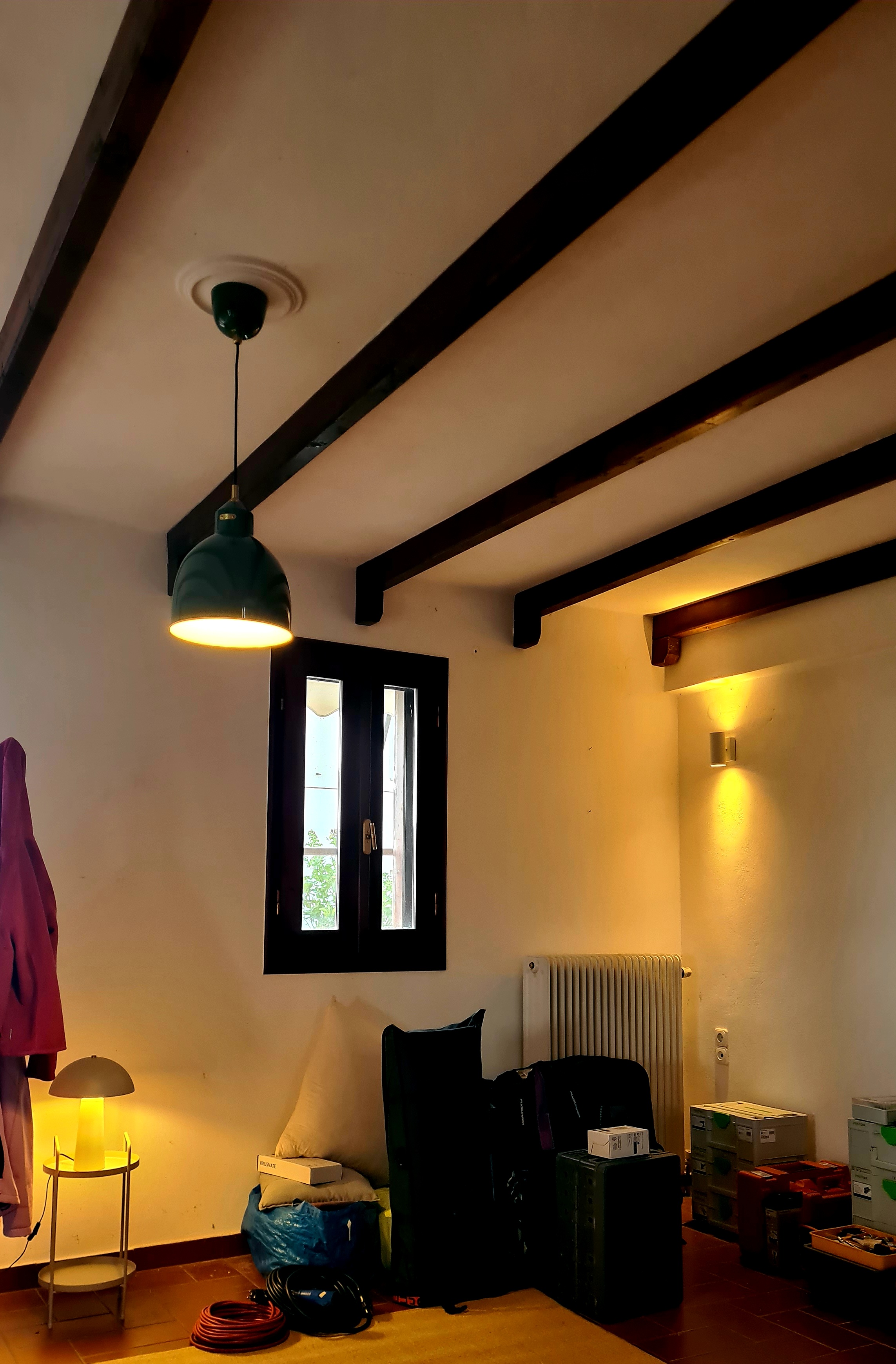 Heute wollen wir erst einmal die gefühlt 100 hässlichen Lampen im Haus austauschen und alle 1000 Dübellöcher zuschmieren. Die Lampen hier im Haus sind an Hässlichkeit kaum zu toppen.
