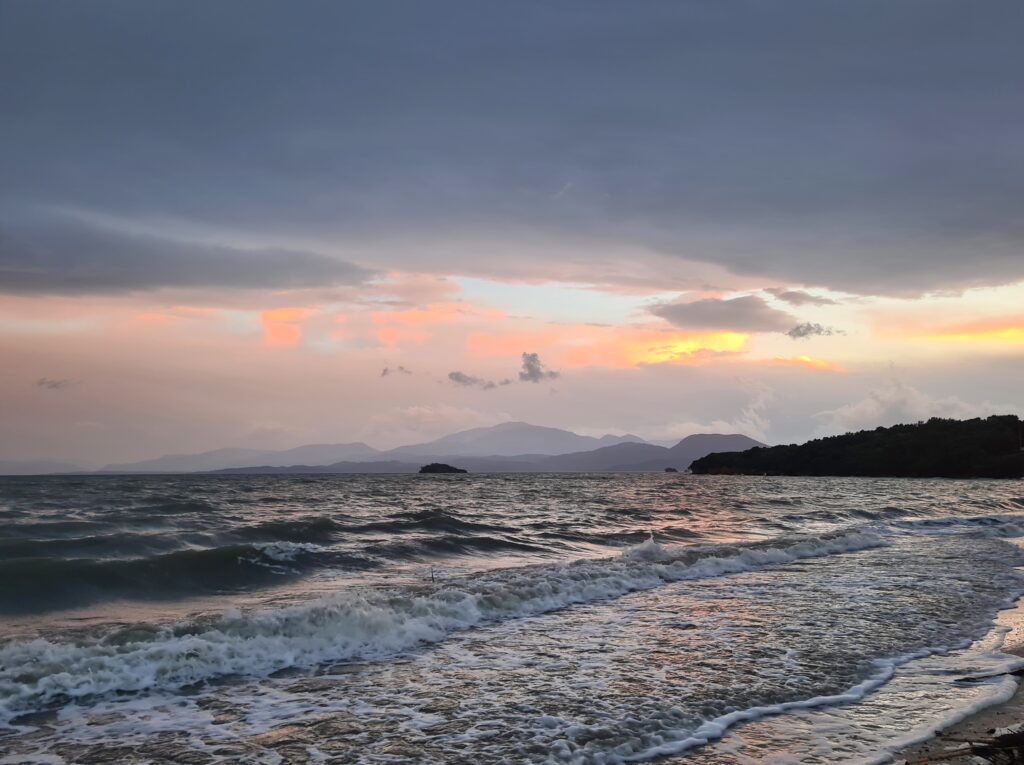 Weil in Griechenland irgendwie alles immer besonders langsam voran geht, kommen wir erst zum Abendessen wieder nach Koronisia und machen noch einen schönen Spaziergang.