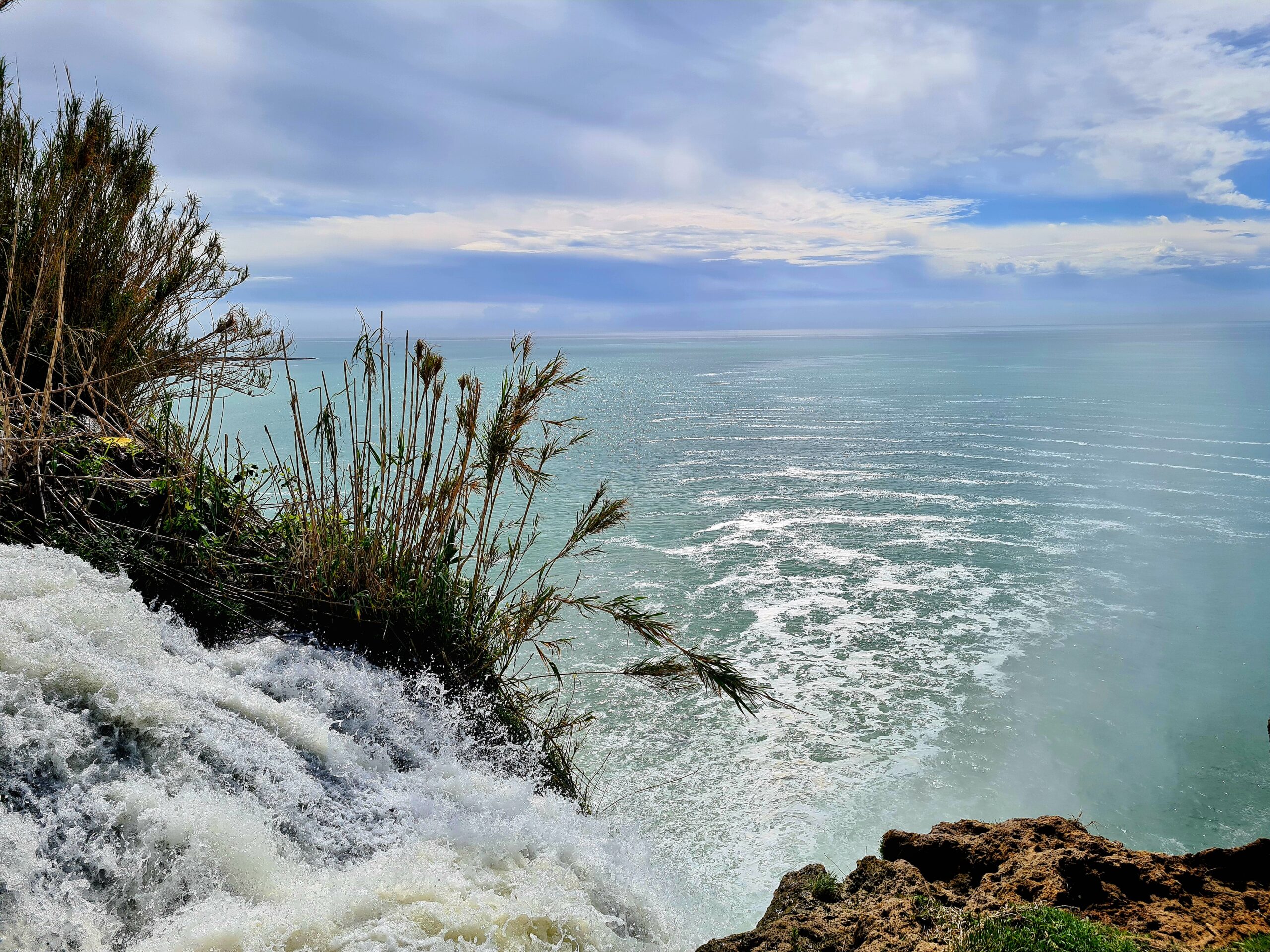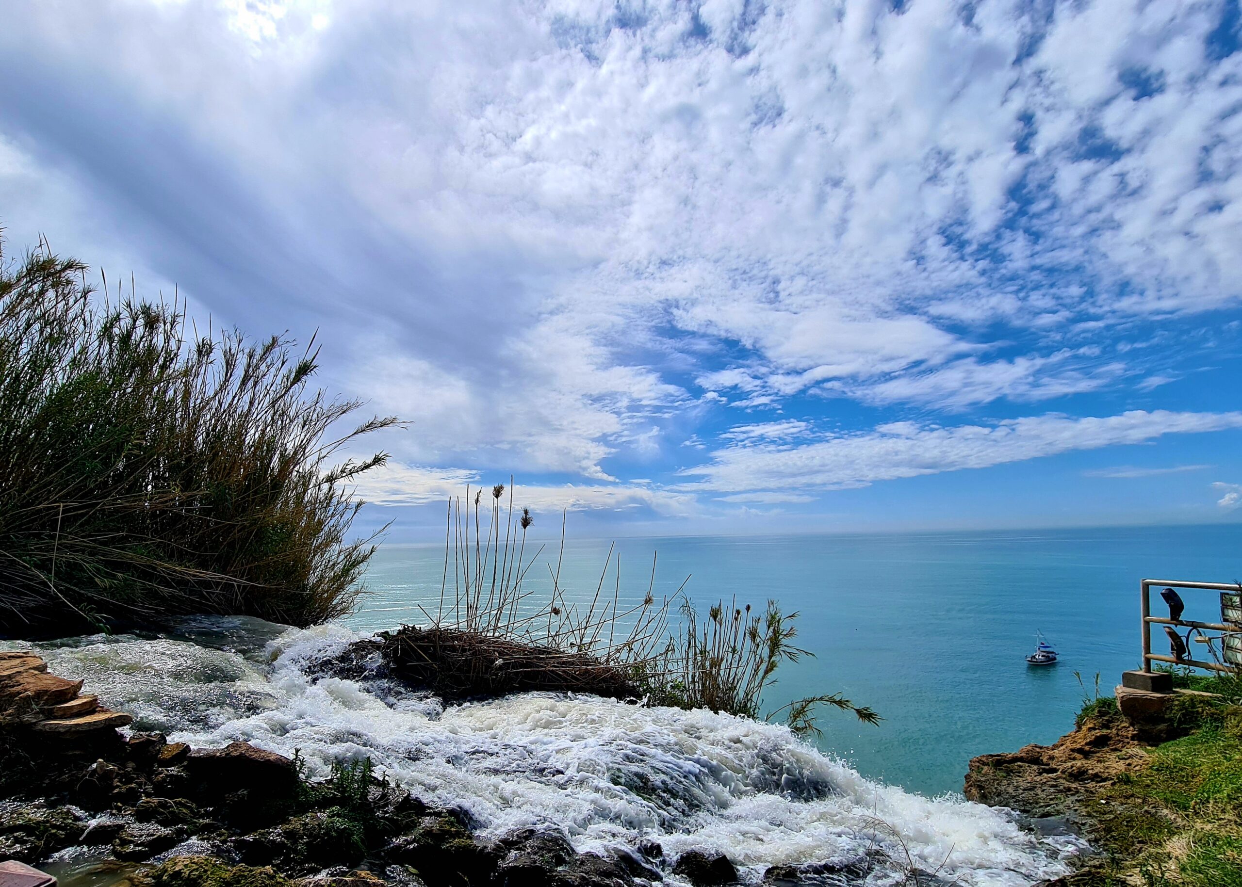 Man sieht, mit welcher Fließgeschwindigkeit der Fluss ins Meer mündet.