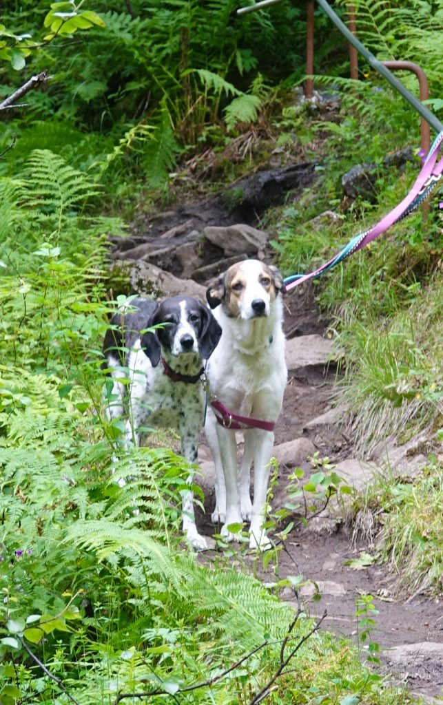 Unsere beiden Hundedamen sind manchmal wirklich verwundert, welche seltsamen Dinge wir uns ansehen. Dem lauten Wasserfall von Øvestebro konnten sie nämlich garnichts abgewinnen.