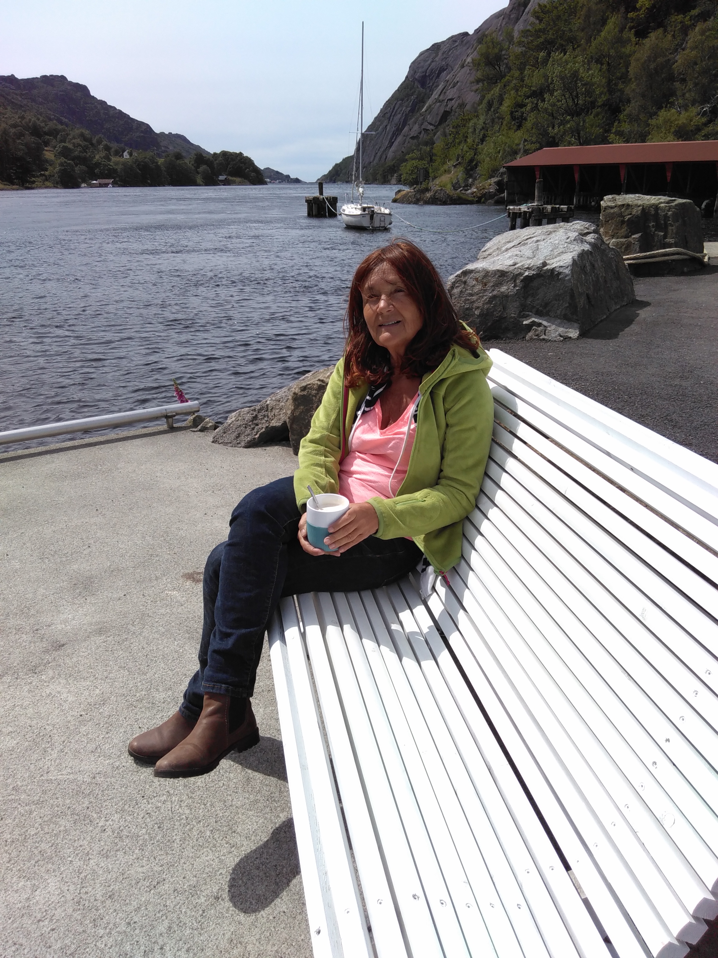 Da der Tag dann doch lang war, sind wir nicht mehr weit gefahren, nur noch bis zum Hafen in Jørpeland. Dort auf der Kaimauer steht man sehr schön und ruhig.