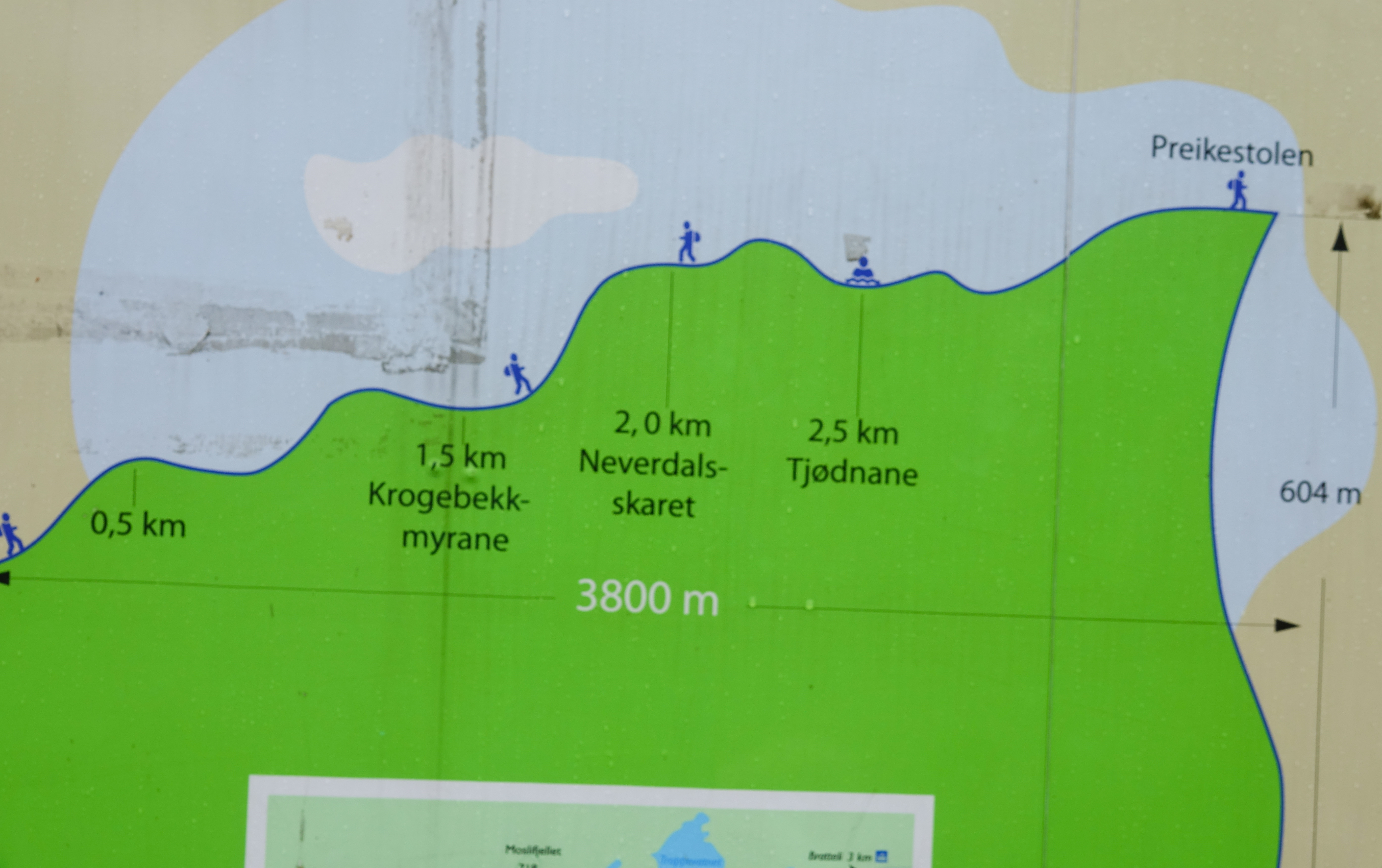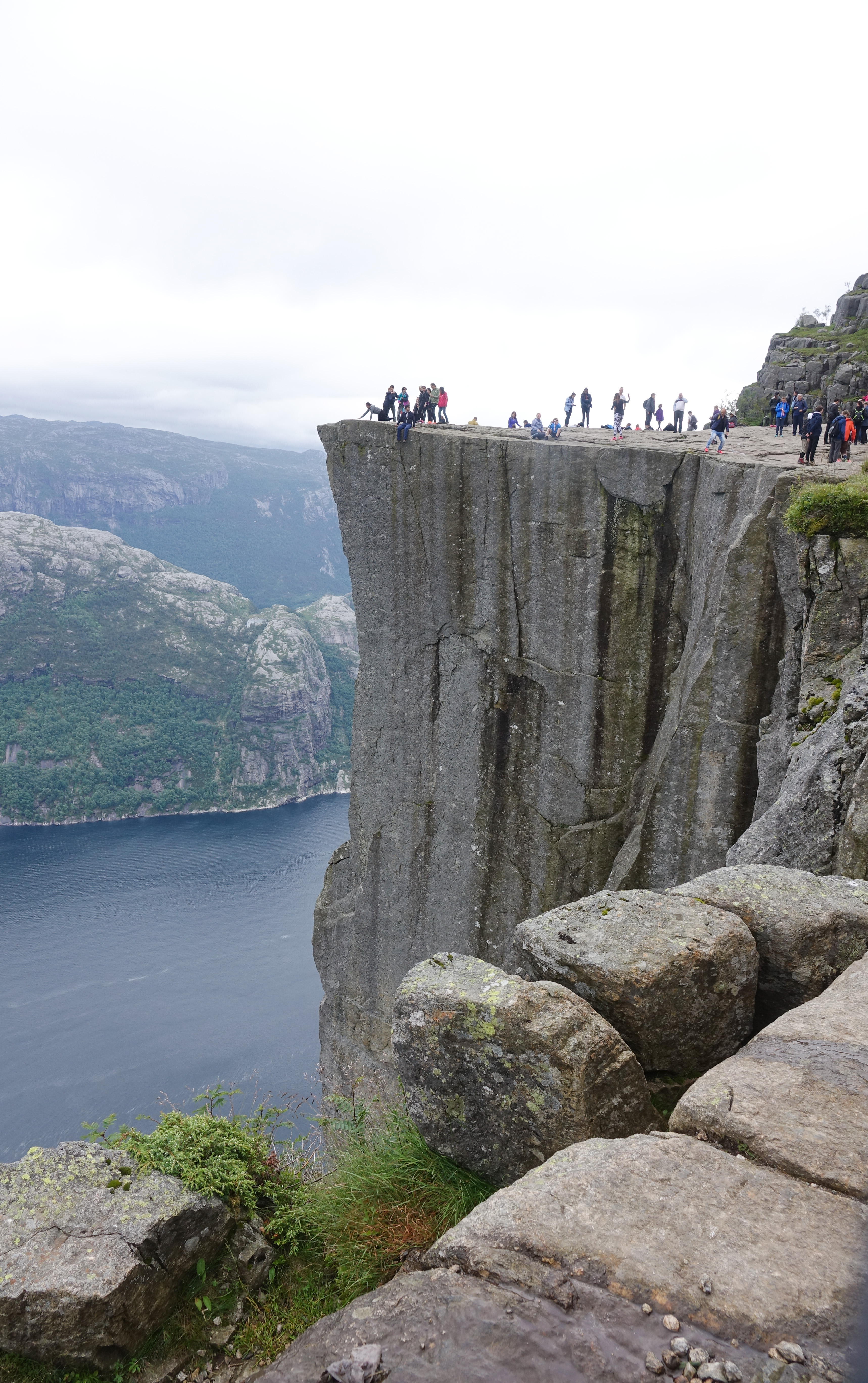Anstrengende Wanderung zum Preikestolen (Predigerstuhl oder Kanzel). Sie ist zwar nur ca. 4 km lang, aber hat halt einiges an Höhenmetern. Der Weg besteht zu einem großen Teil aus unregelmäßigen Felsstufen. Man braucht für die 4 km etwa 2 Stunden und muss natürlich auch wieder zurück. Aber es lohnt sich, denn nicht nur die Aussicht von oben, sondern auch der gesamte Weg durch Hochmoore und zerklüftete Fellsenlandschaft ist beeindruckend.