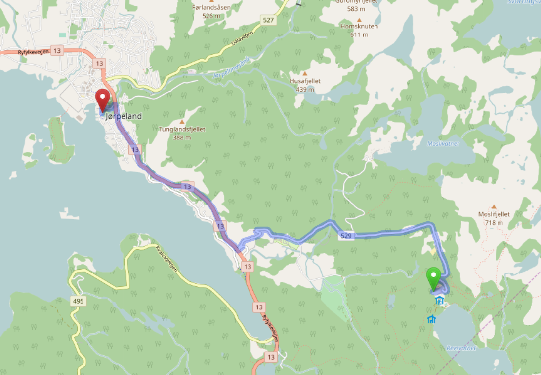 Da der Tag dann doch lang war, sind wir nicht mehr weit gefahren, nur noch bis zum Hafen in Jørpeland. Dort auf der Kaimauer steht man sehr schön und ruhig.