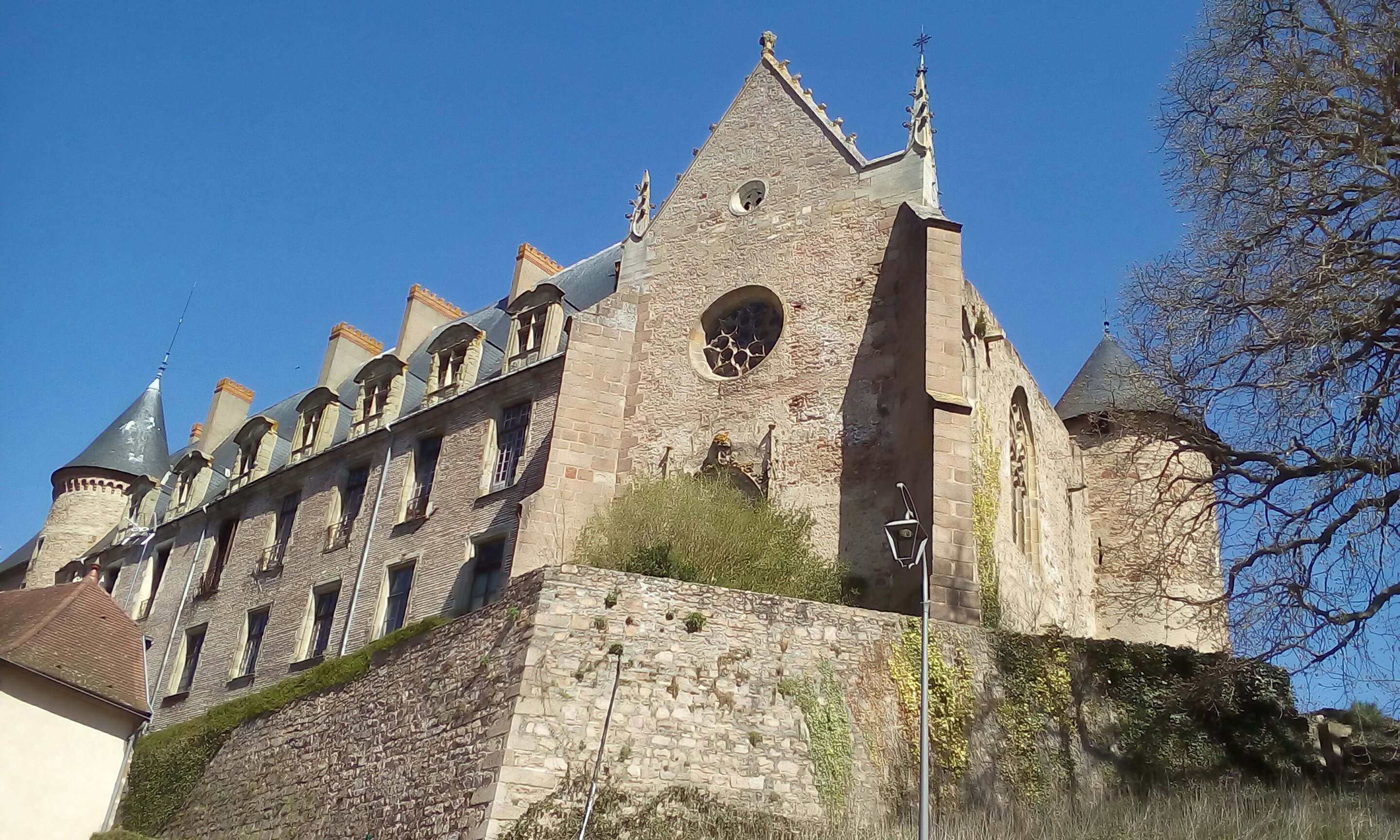 Auf dem Schlossparkplatz in Lapalisse legen wir eine Mittagspause ein. Ein schönes, aber leicht baufälliges Renaissanceschloss.