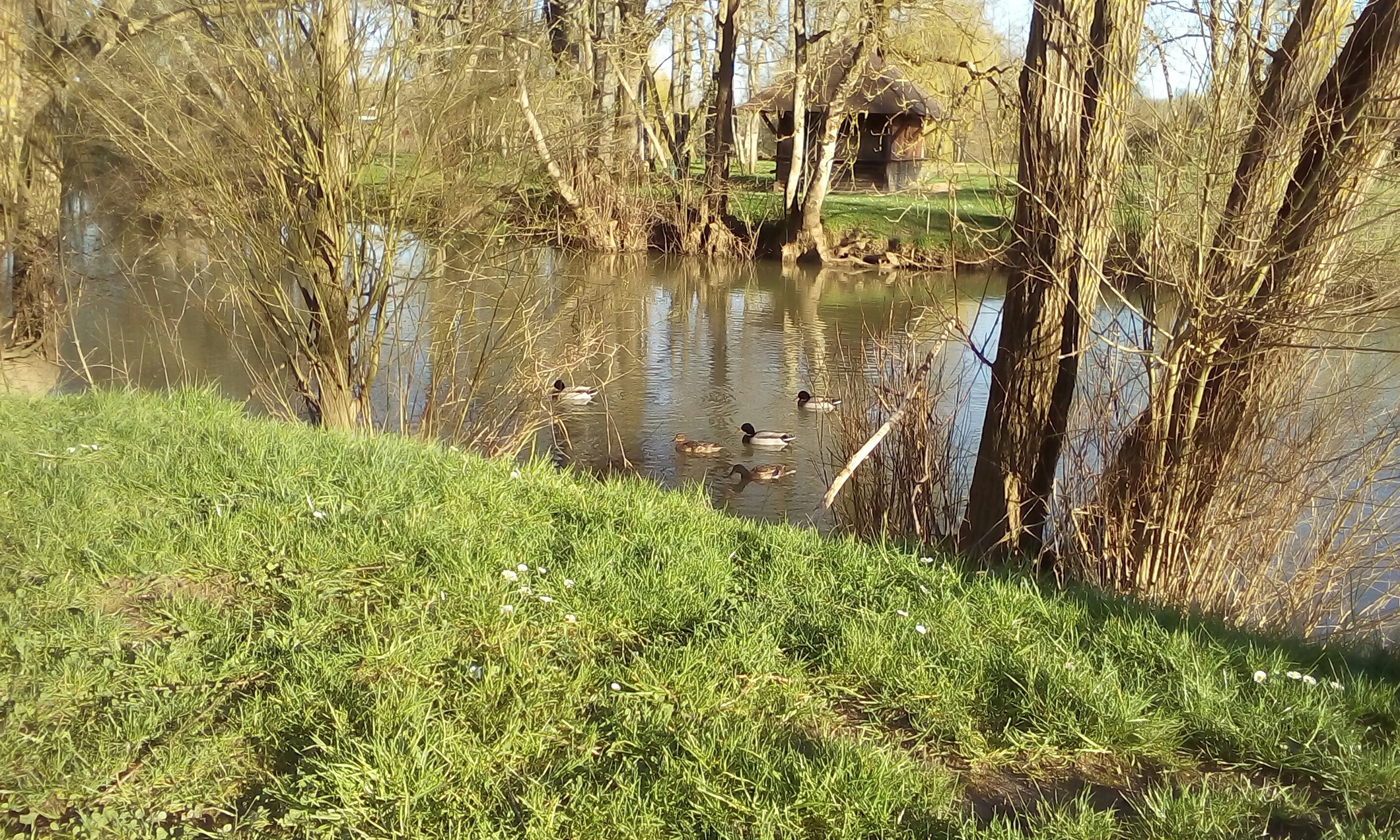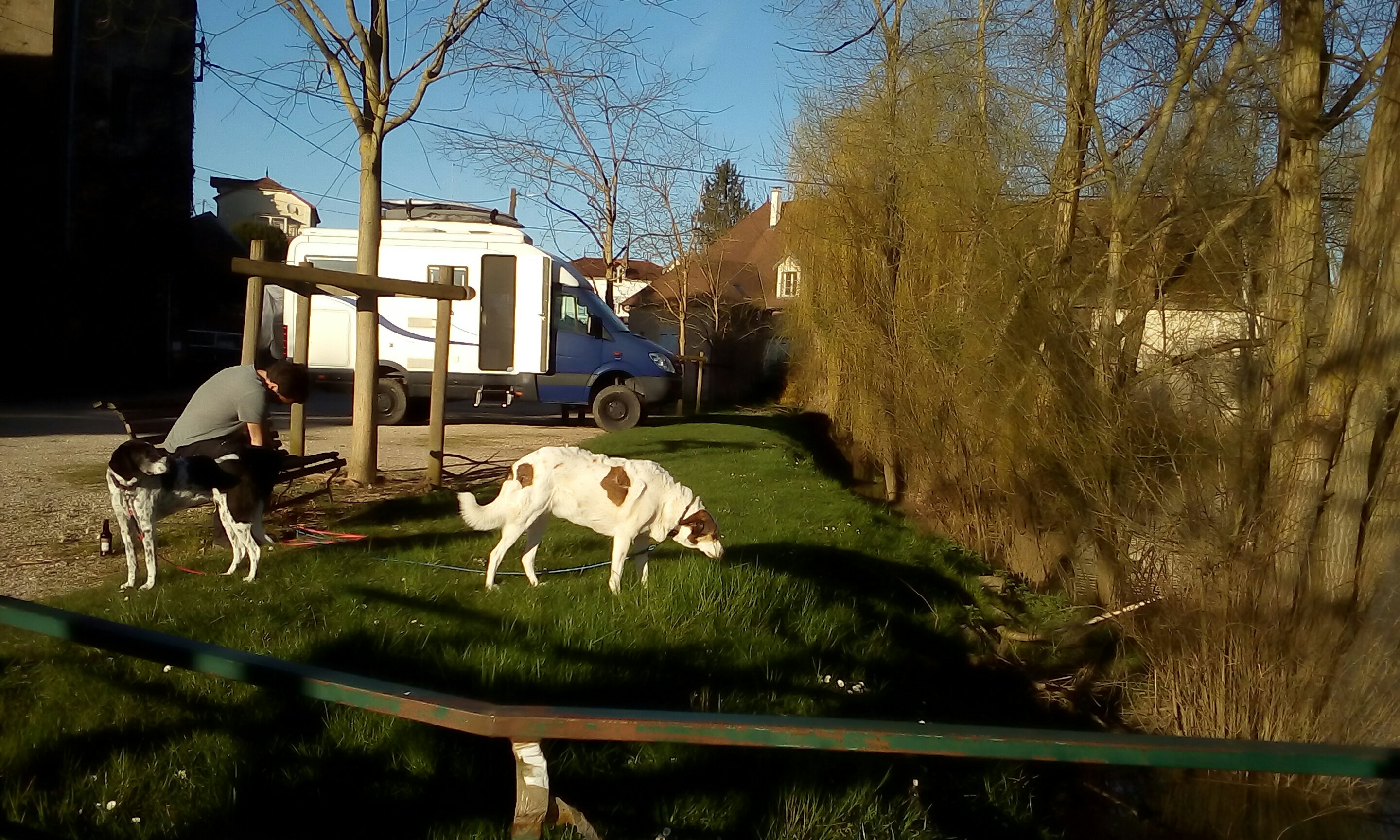 Wir übernachten in Pesmes an einem romantischen Ententeich. Alle Stellplätze in Dôle waren leider mit Schaustellern überbelegt. Das war ein Tipp von Charles, den wir letztes Jahr im Herbst kennengelernt haben.