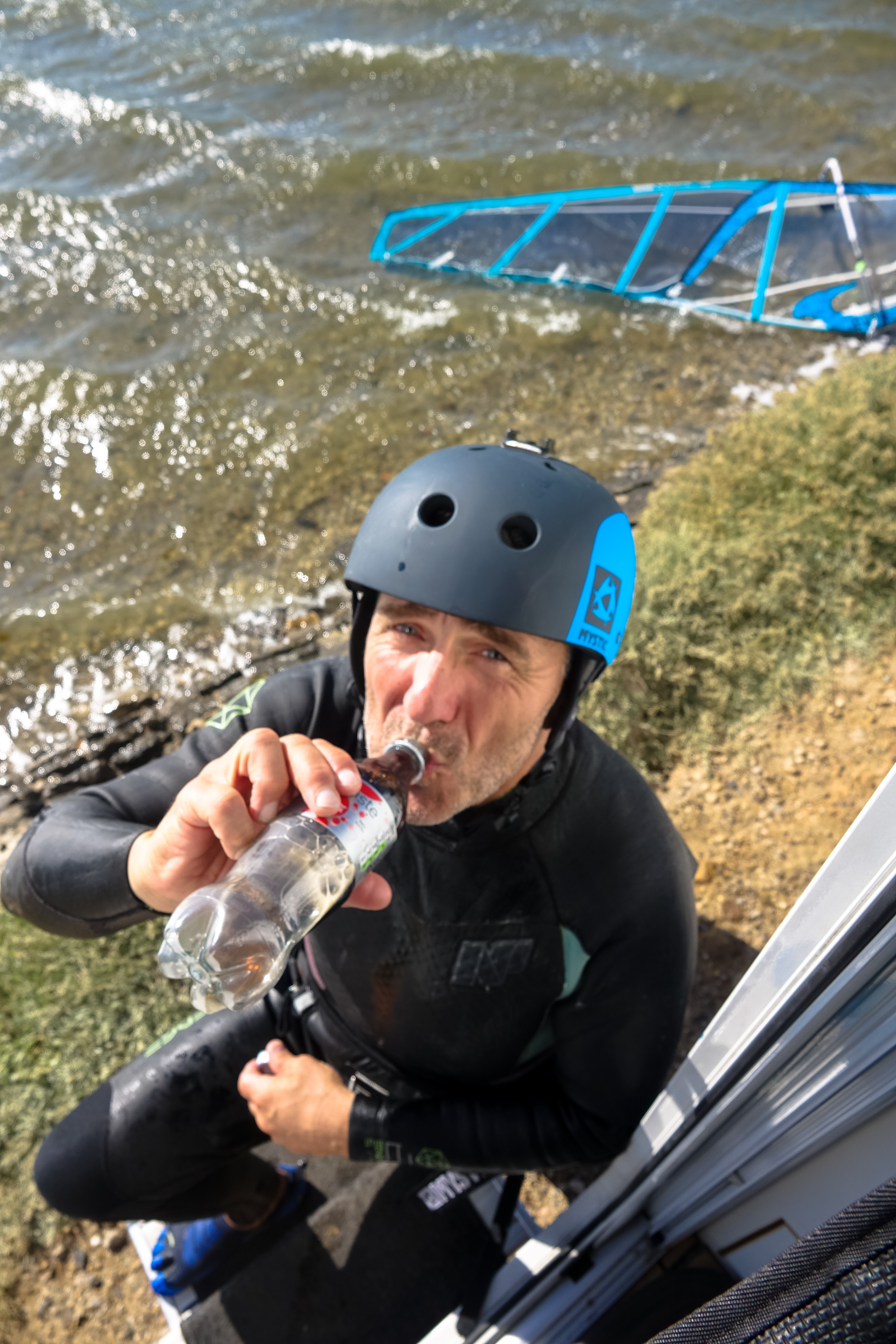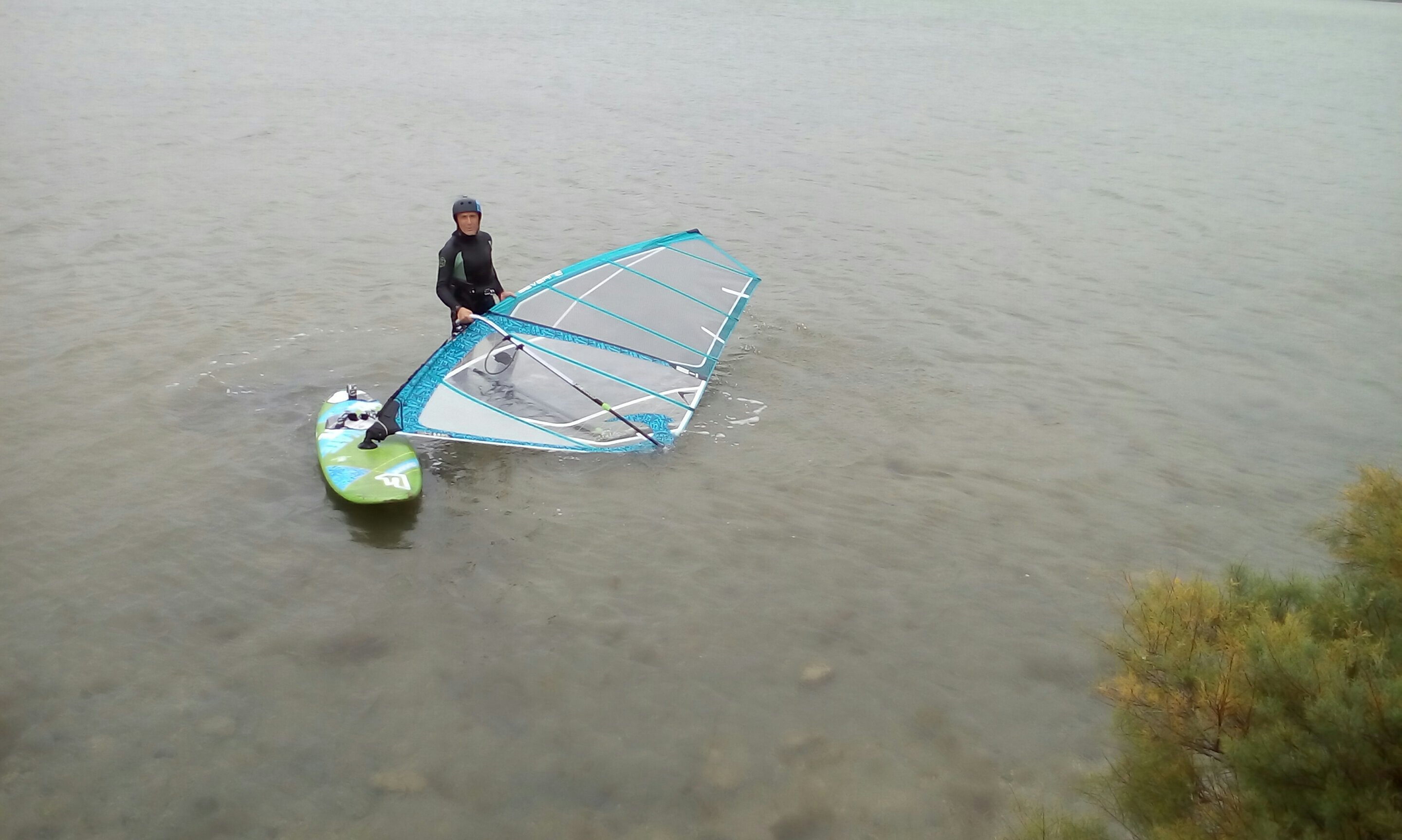 Schon beim Abladen der Bretter musste man höllisch aufpassen. Für 30 Knoten hatte Carmen ja ihr kleines 3.0 Severne zu Weihnachten bekommen, aber bei stellenweise 48 Knoten flitzt jetzt Uwe damit übers Wasser und Carmen hat schon Probleme die Wohnmobiltür wieder zu schließen, wenn sie ganz offen ist. Das fällt dann schon unter Krafttraining und geht, wenn man so leicht wie Carmen ist, nur mit vollem Körpereinsatz. Aber ihr könnt euch sicher denken, wir haben Spaß beim Kampf mit den Urgewalten.