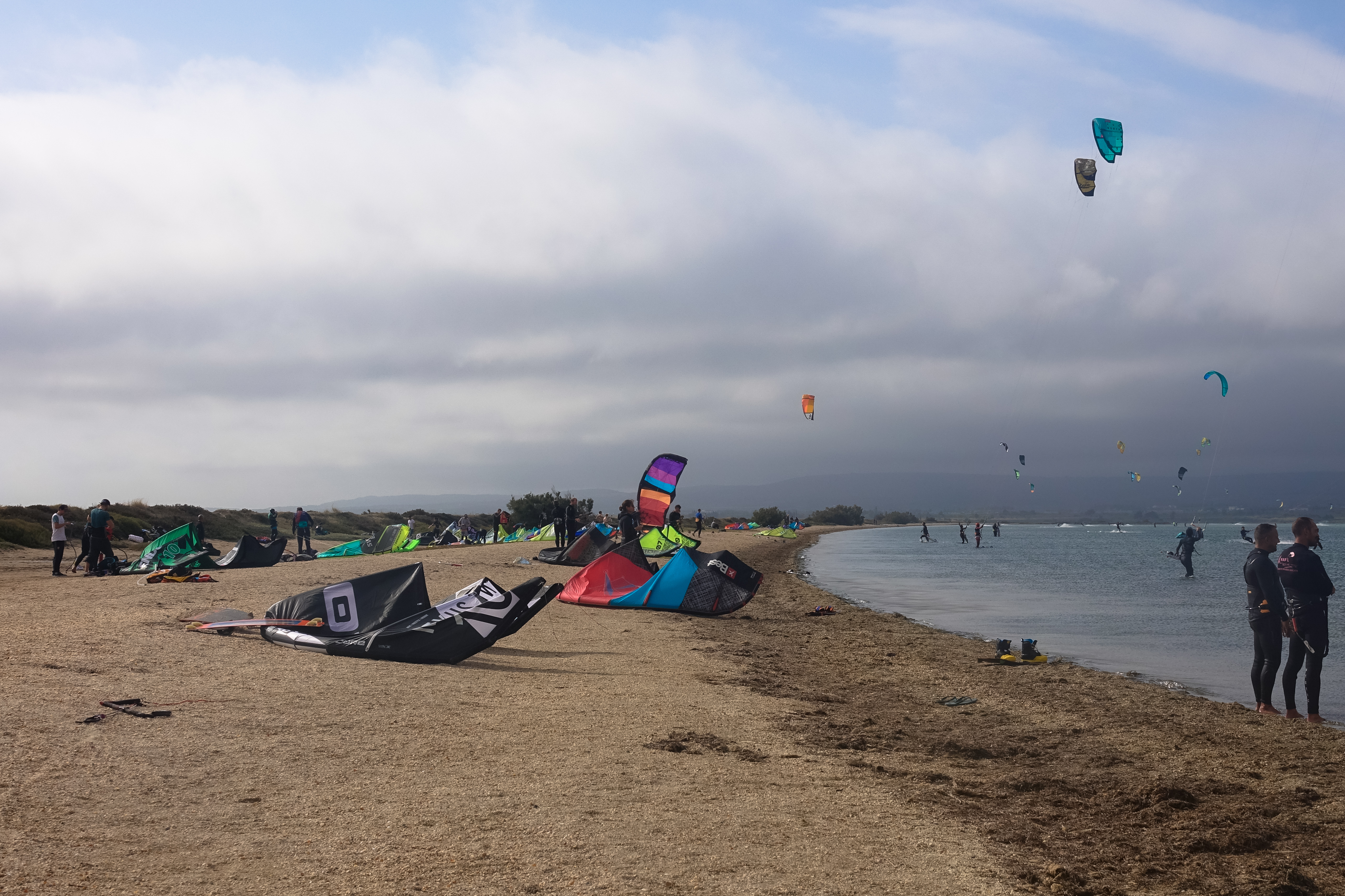 Wir wünschen uns ja immer Wind, wenn wir hierher fahren, aber dieses Mal ist es wirklich besonders wild. Heute bläst es wieder einmal mit mehr als 30 Knoten, das ist dann wirklich nicht ungefährlich, wenn man nicht genau weiß, was man macht. Daher sind wir heute morgen tatsächlich die Einzigen am Spot. Das hatten wir noch nie.