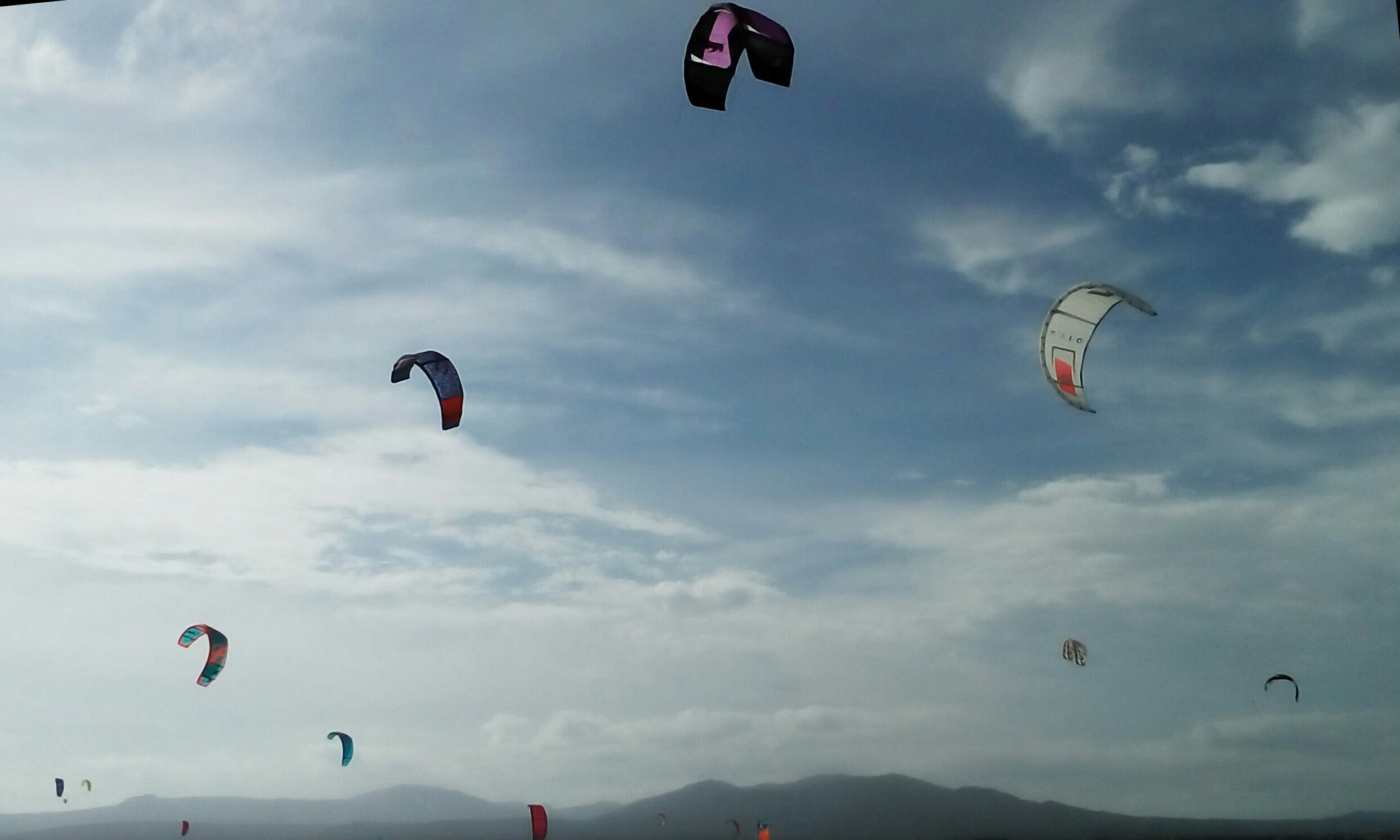 Aber heute kann sich der Wind nicht so wirklich entscheiden. Extreme On-Off-Bedingungen. Carmen fährt den großen Skate und 4.2 und Uwe kitet mit seinem kleinen Schirm. So sind wir dann doch alle zufrieden.