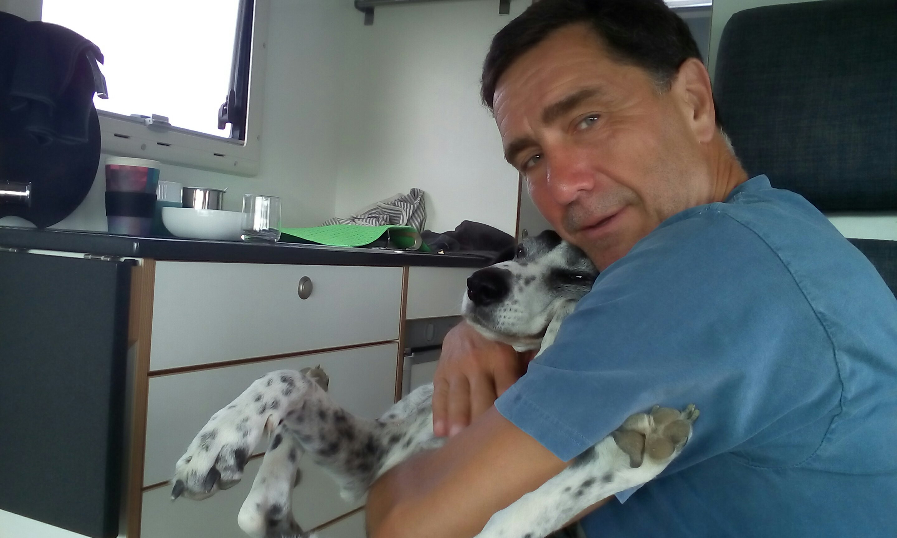 Und weil Uwe sich nicht entscheiden kann, ob er Surfen oder Kiten soll, macht er erst einmal Hundeknuddeln.