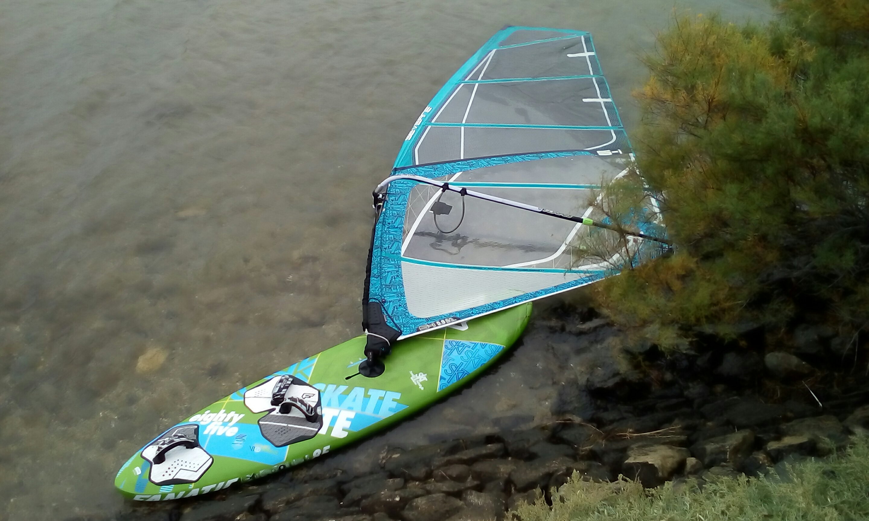 Carmen muss sich erst noch mit der Anluvtendenz des grünen Skate beim Anfahren vertraut machen, während Uwe schon locker Powerhalsen damit dreht. Die Würfel sind also gefallen: Die Gecko kann weg. 2 kleine Bretter reichen uns. Carmens Lieblingsboard ist nach wie vor der weiße Skate, der eigentlich Mischa gehört, aber mit dem Grünen kommt sie bei mehr Wind auch klar. Heute waren es immerhin 26 Knoten. Grundwind waren 20 Knoten und Carmen hatte ein 4.8 Segel. Ihr 90-Limit muss man noch Mal überprüfen. Also vielleicht doch 100 als Limit bei Carmen und 120 bei Uwe.