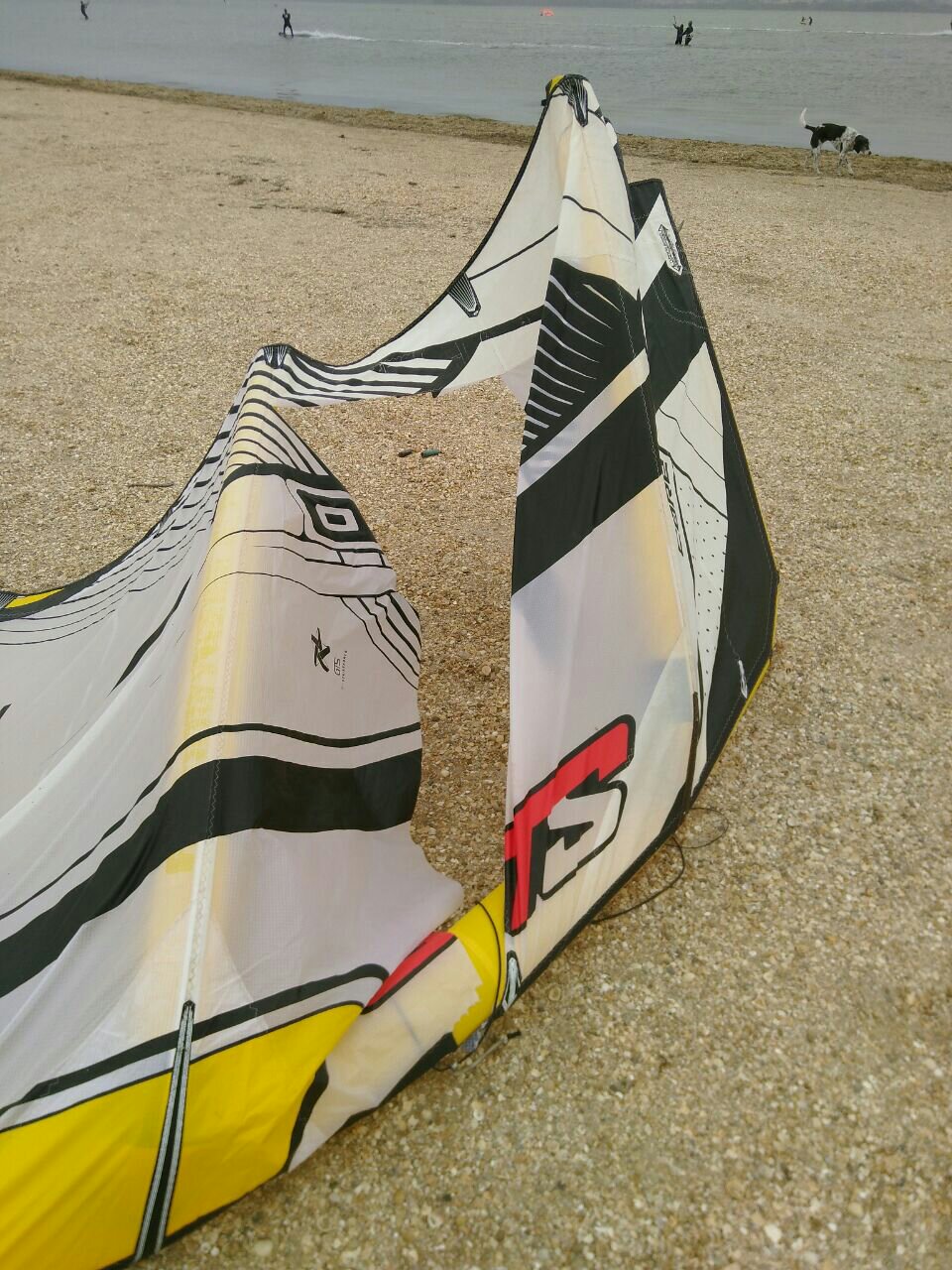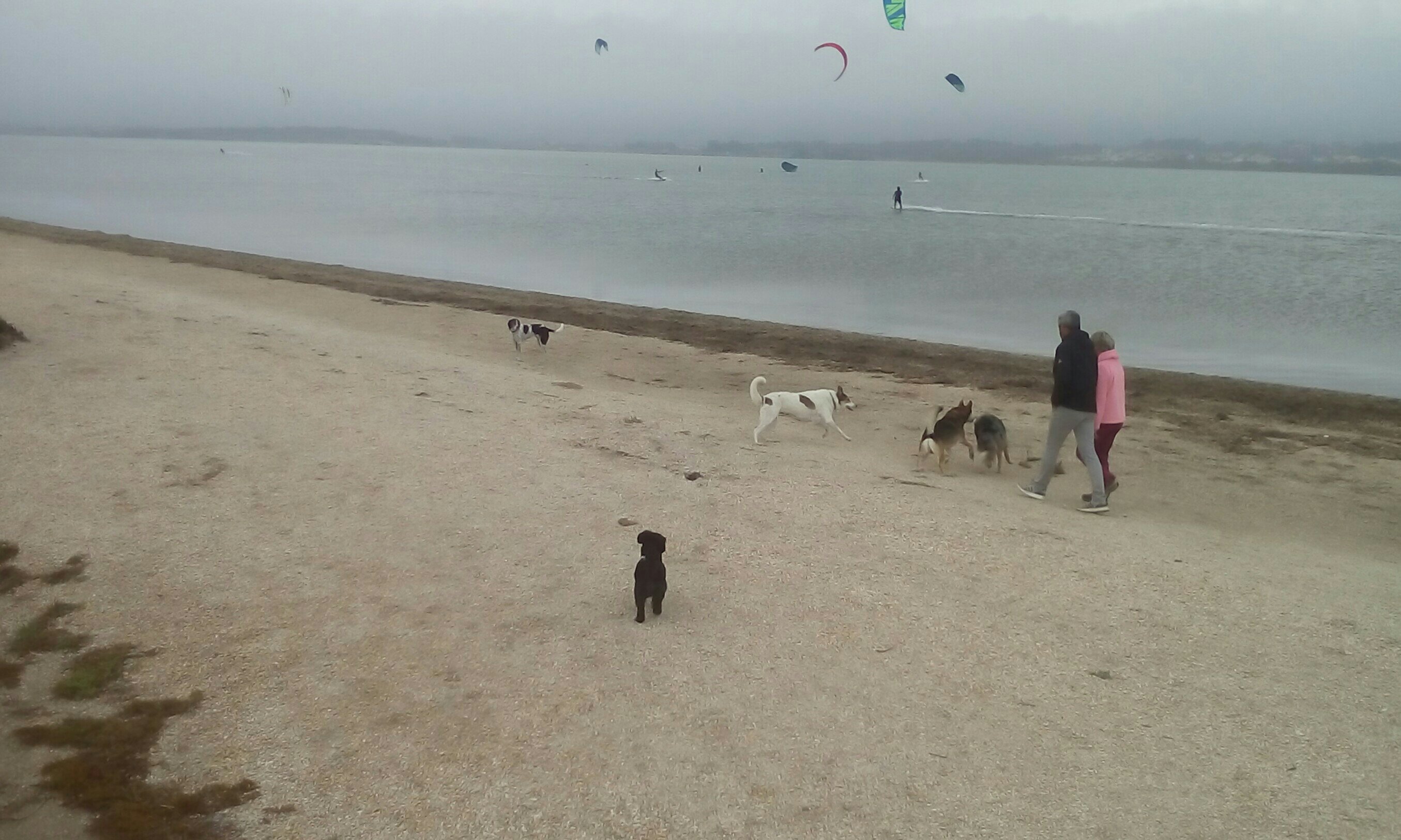 Heute sollte es ja eigentlich gewittrig sein, aber scheinbar hat sich die App geirrt. Es ist einfach nur deprimierend grau. Zum Glück geht ein leichter Kitewind und die Hunde haben ihren Spaß, treffen Kumpels und können hin und her rennen. Auch Uwe hat zunächst Spaß, macht dann aber seinen geliebten 15er Kite kaputt.