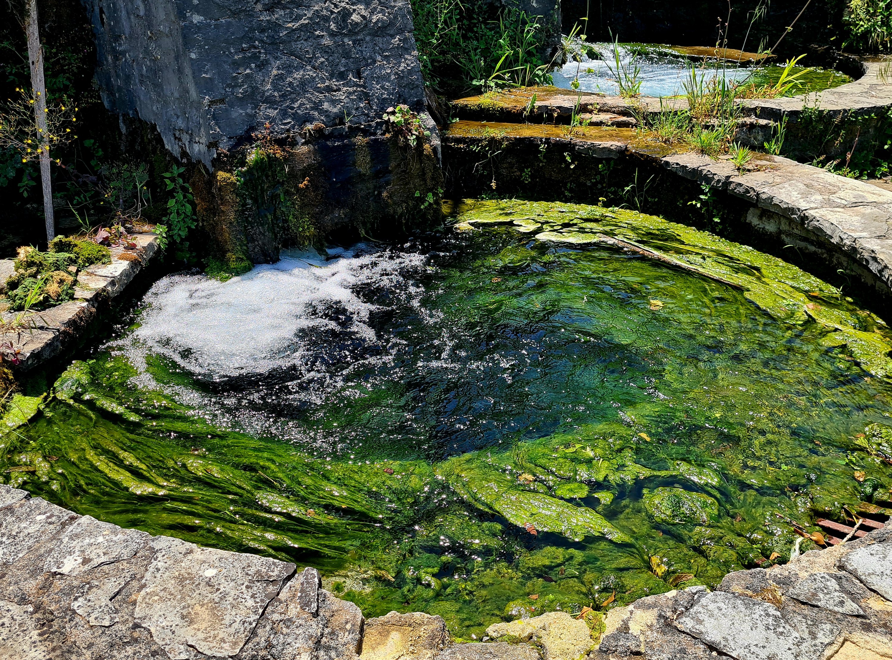 Direkt neben der Quelle gibt es eine uralte Wäscherei. Leider gab es keine Erklärung auf Englisch und unser Griechisch-Wortschatz beschränkt sich auf das notwendige: Begrüßungen, Bedanken und notdürftiges Verstehen von Speisekarten.