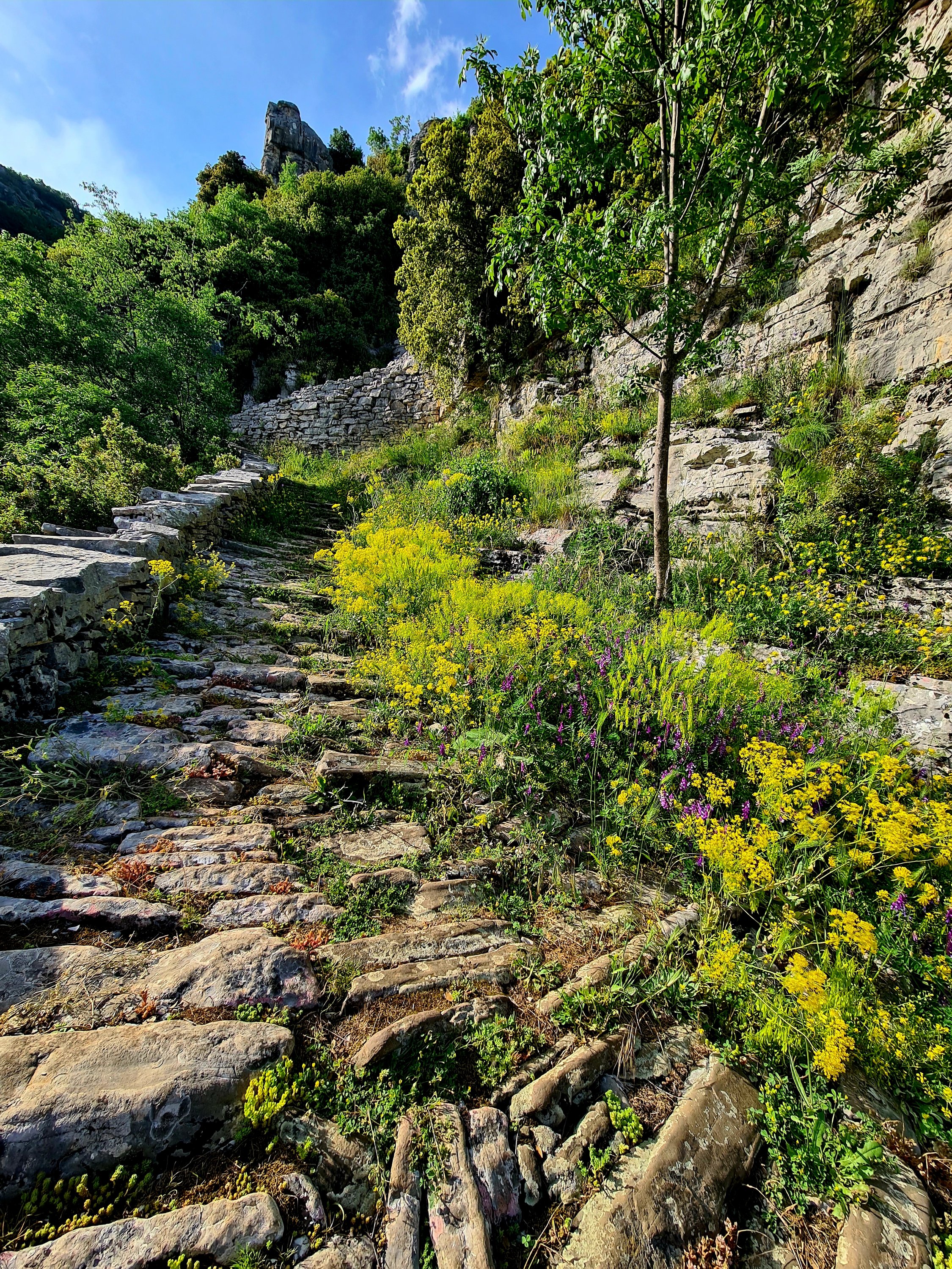 Nach den Brückenbesichtigungen geht es zu unserem heutigen Tagesziel: den Vradetotreppen. Die Vradetotreppe verbindet den Ort Kapesovo mit Vradeto und war bis in die 70er Jahre die einzige Verbindung zwischen den beiden Orten.