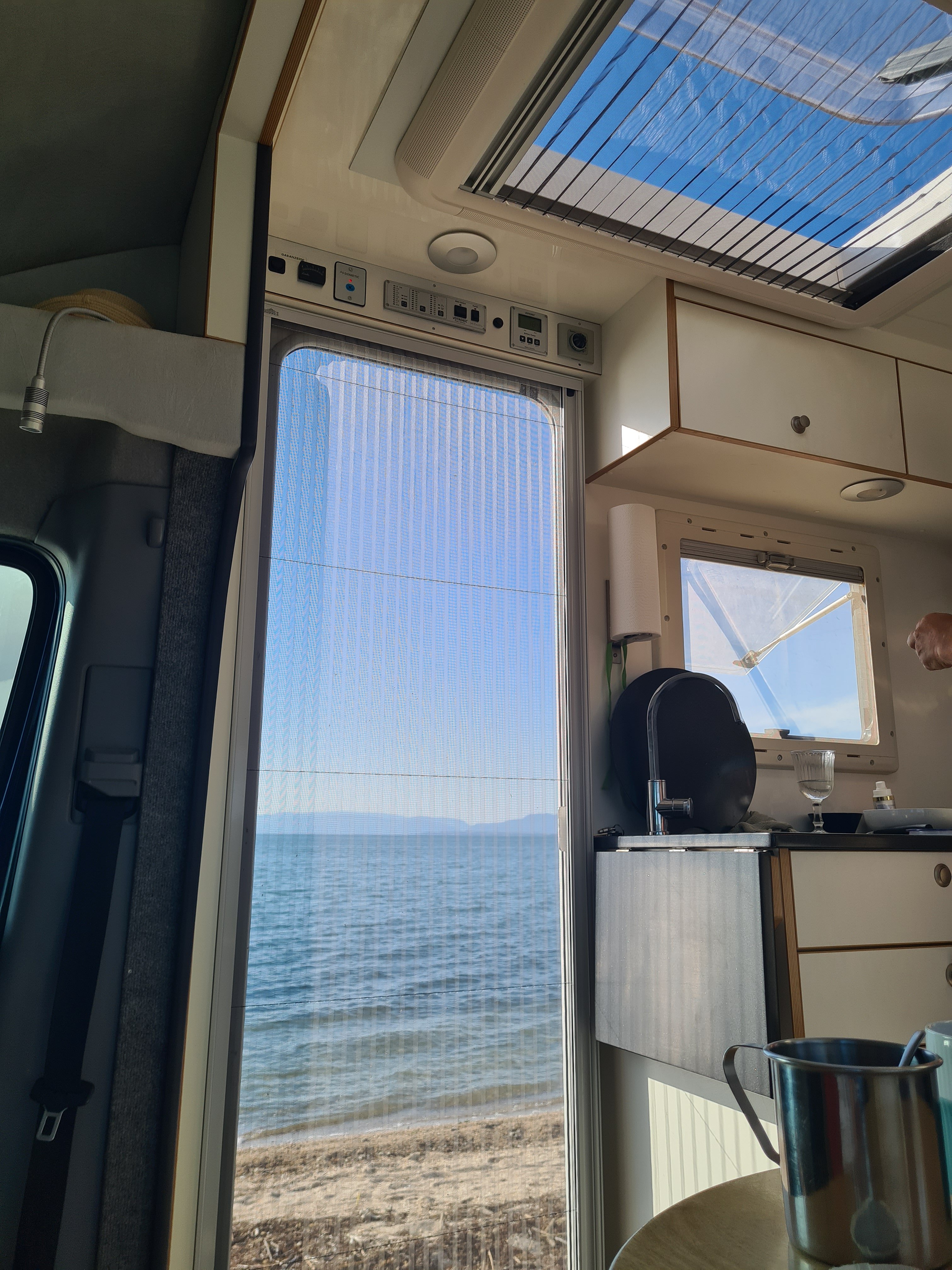 Beim Check unserer Wetter-App beschließen wir nach dem Frühstück in die Berge aufzubrechen. Wenn wir unserem Bauchgefühl und den Wetterdaten vertrauen können, bleibt es in den Bergen sonnig und hier am Meer windstill.