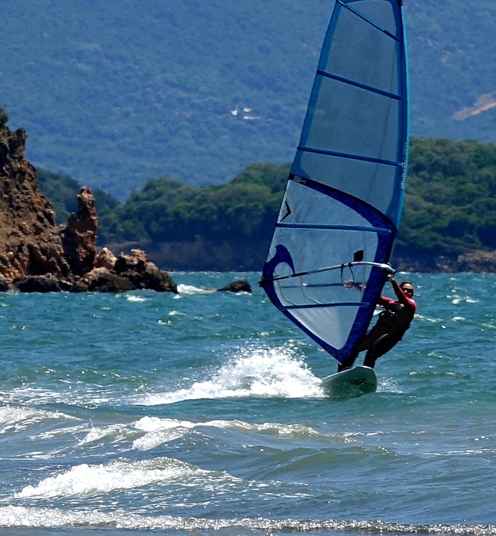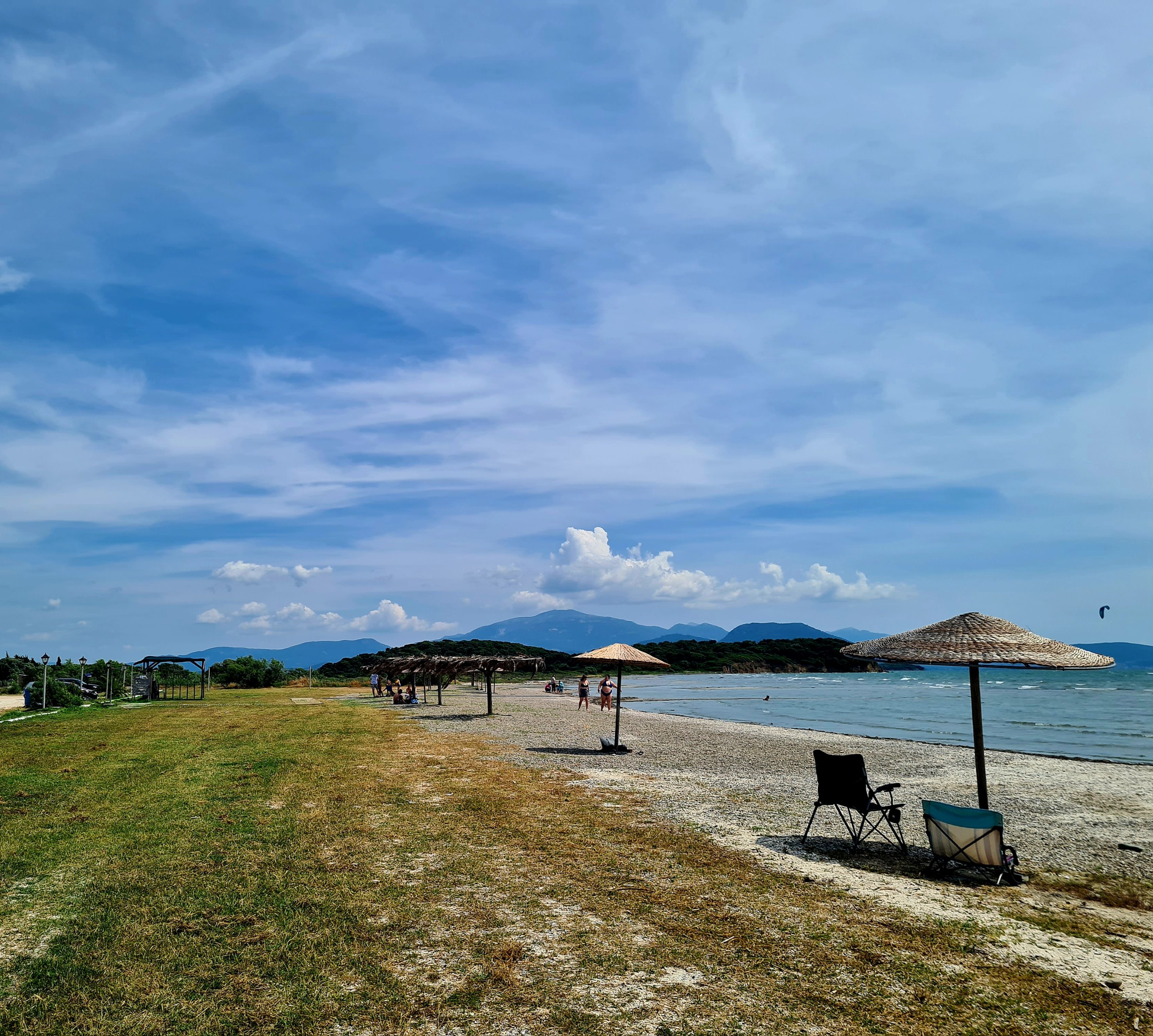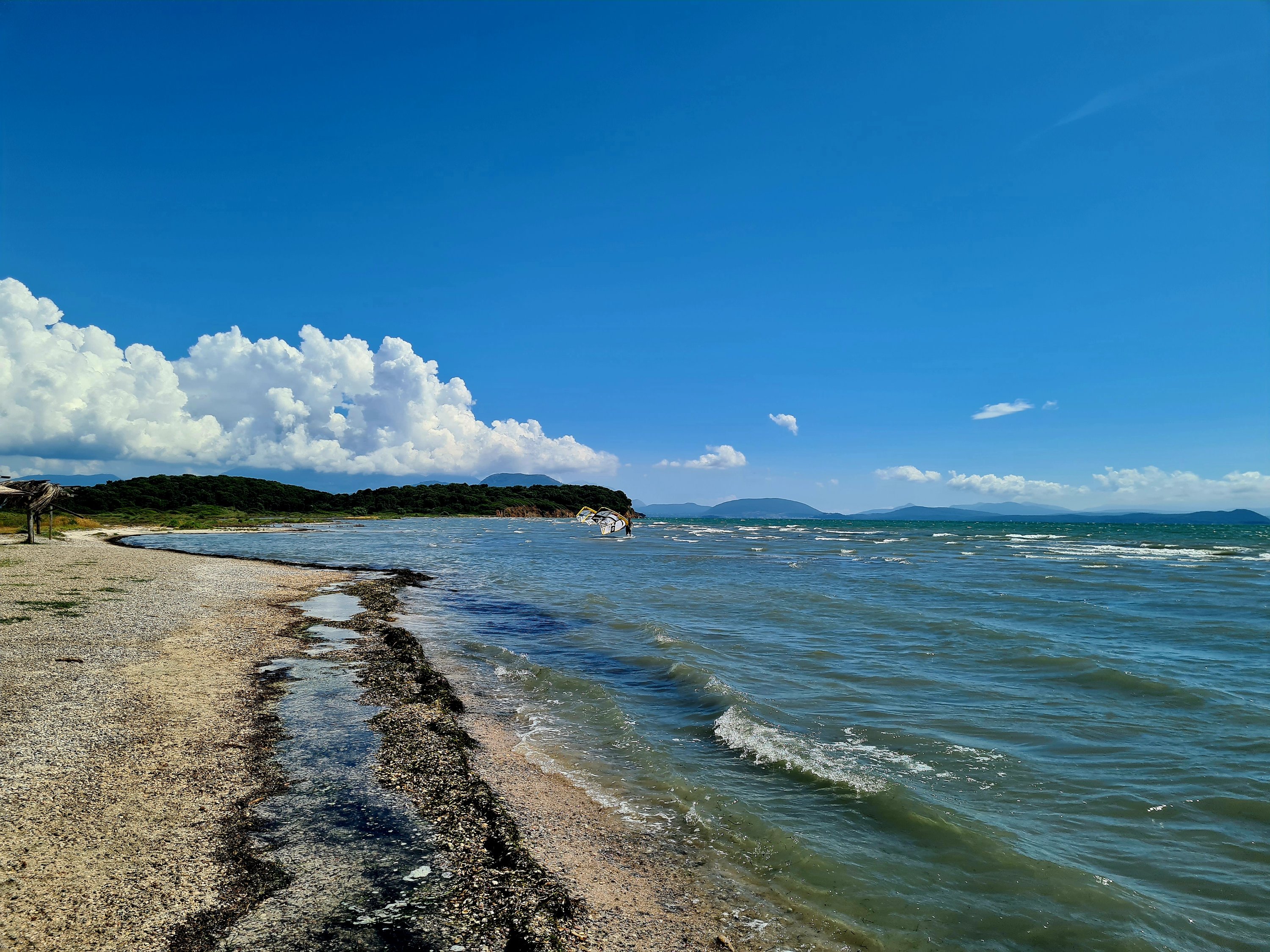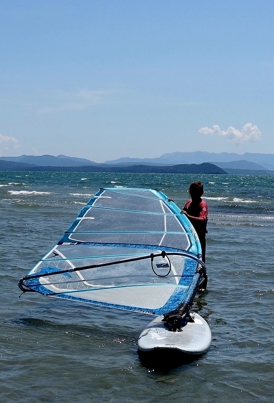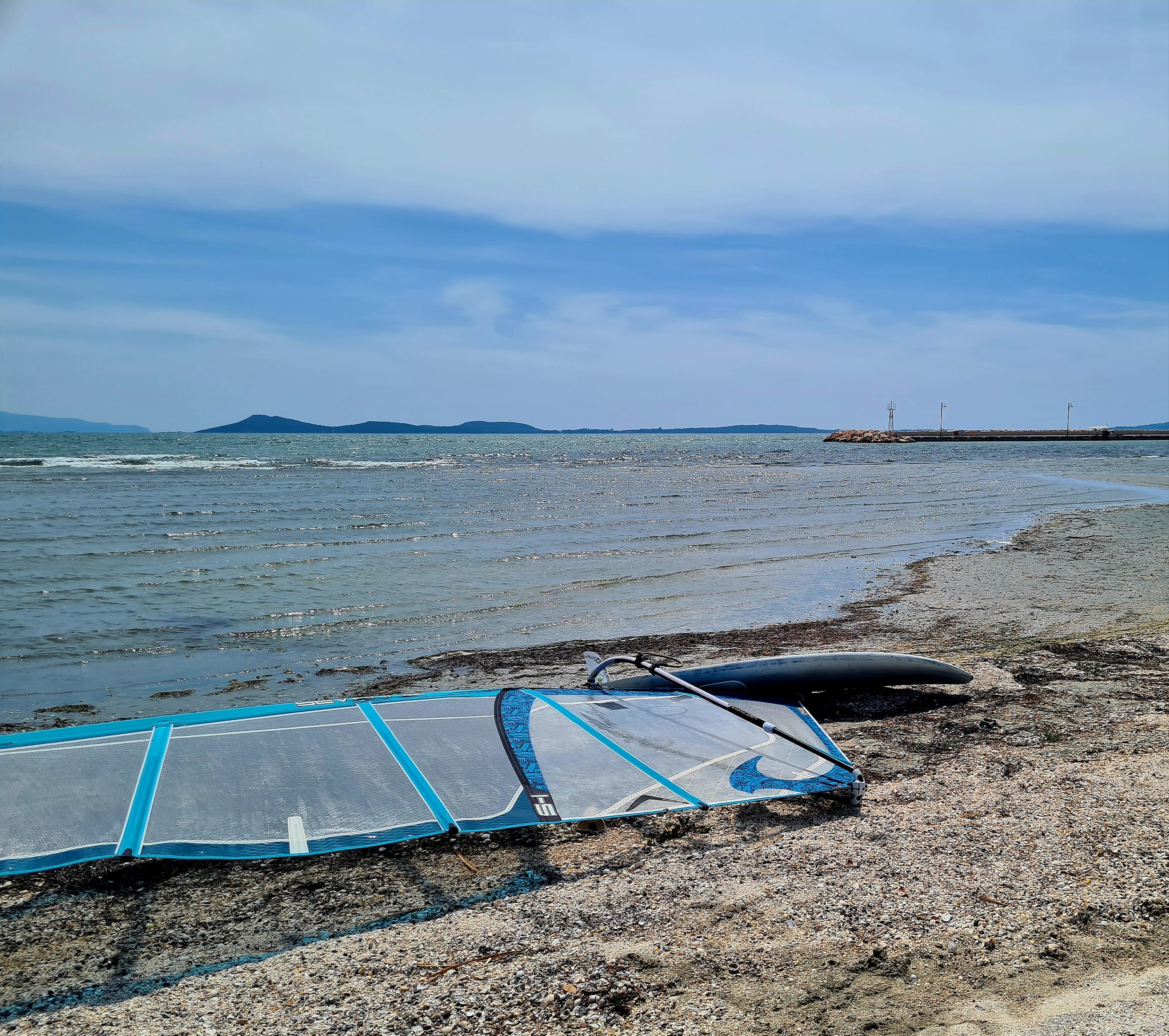 Hier in Koronisia schleicht sich immer die gleiche Routine ein: Morgens bis 9 Uhr schlafen, nach dem Frühstück mit Blick auf das Meer lesen, ein Bad zur Abkühlung nehmen und hoffen, dass sich am Mittag die Thermik durchsetzt. Wir informieren uns ja normalerweise über Windapps, aber hier in Koronisia ist keine Messstation und die kleine lokale Thermik wird von den umliegenden Messpunkten nicht erfasst. Hier zählt daher Erfahrung und Bauchgefühl.