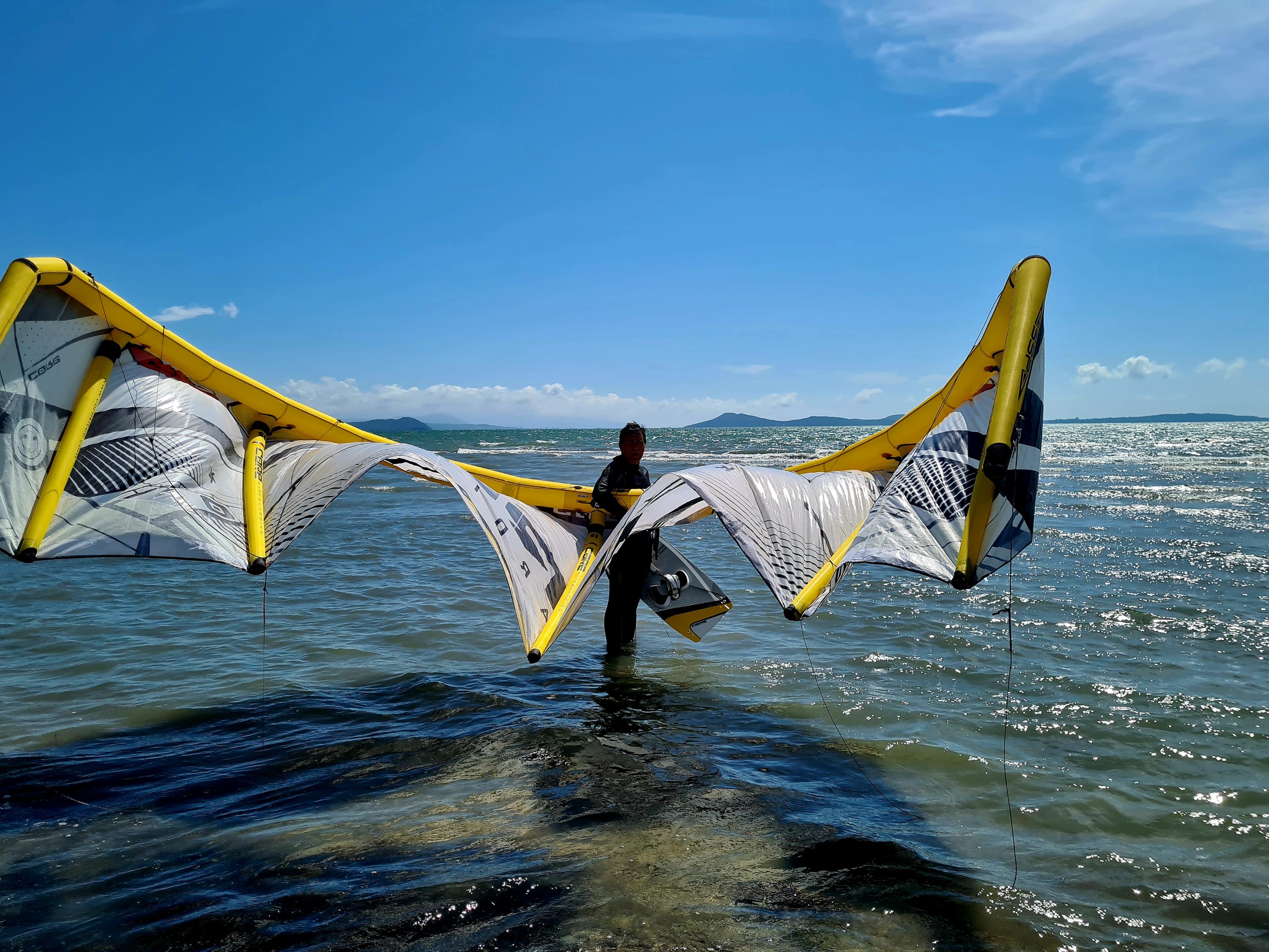 Um 5 Uhr sind wir zurück in Koronisia und Uwe muss natürlich als erstes wieder den Kite aufpumpen.
