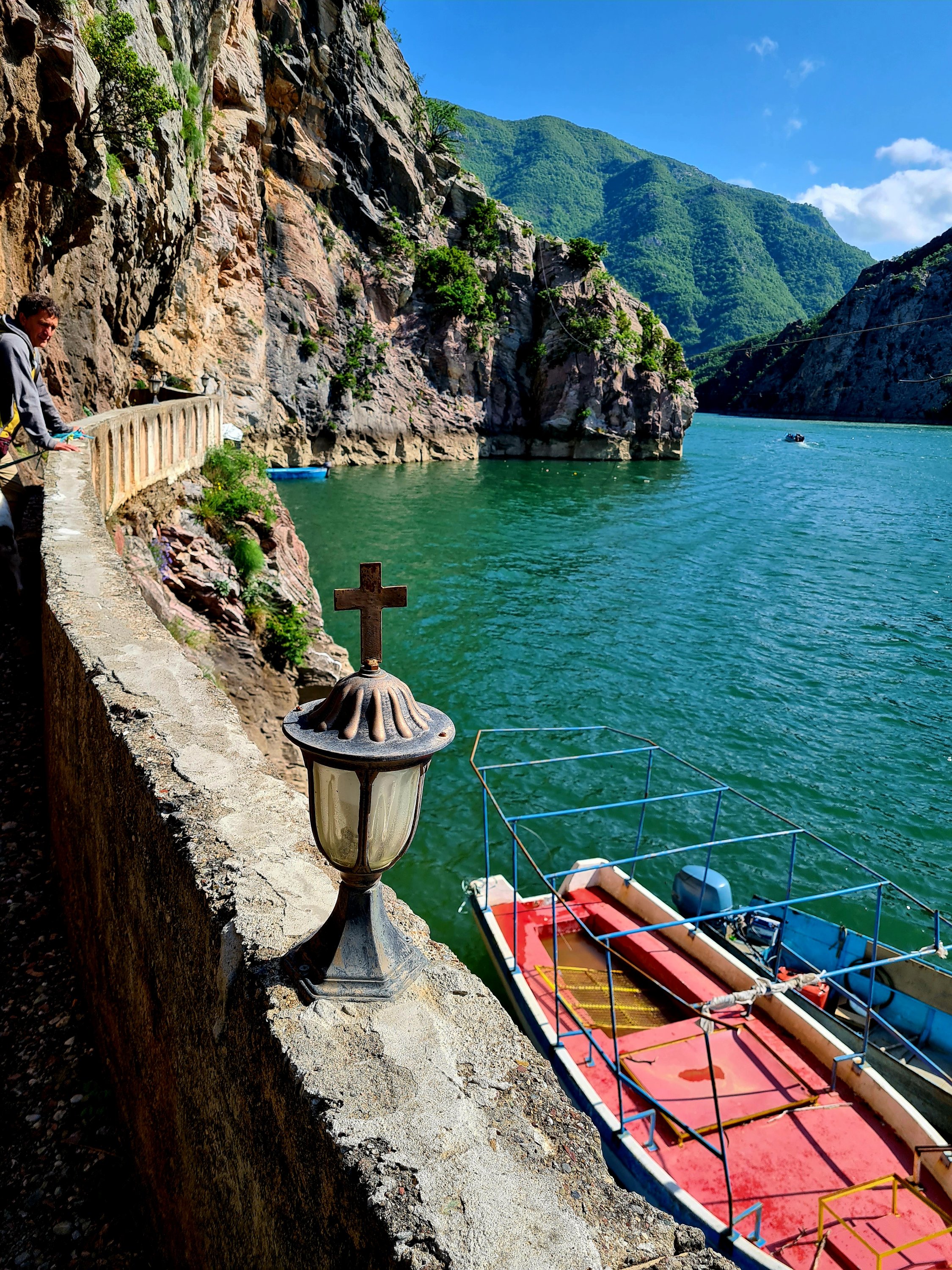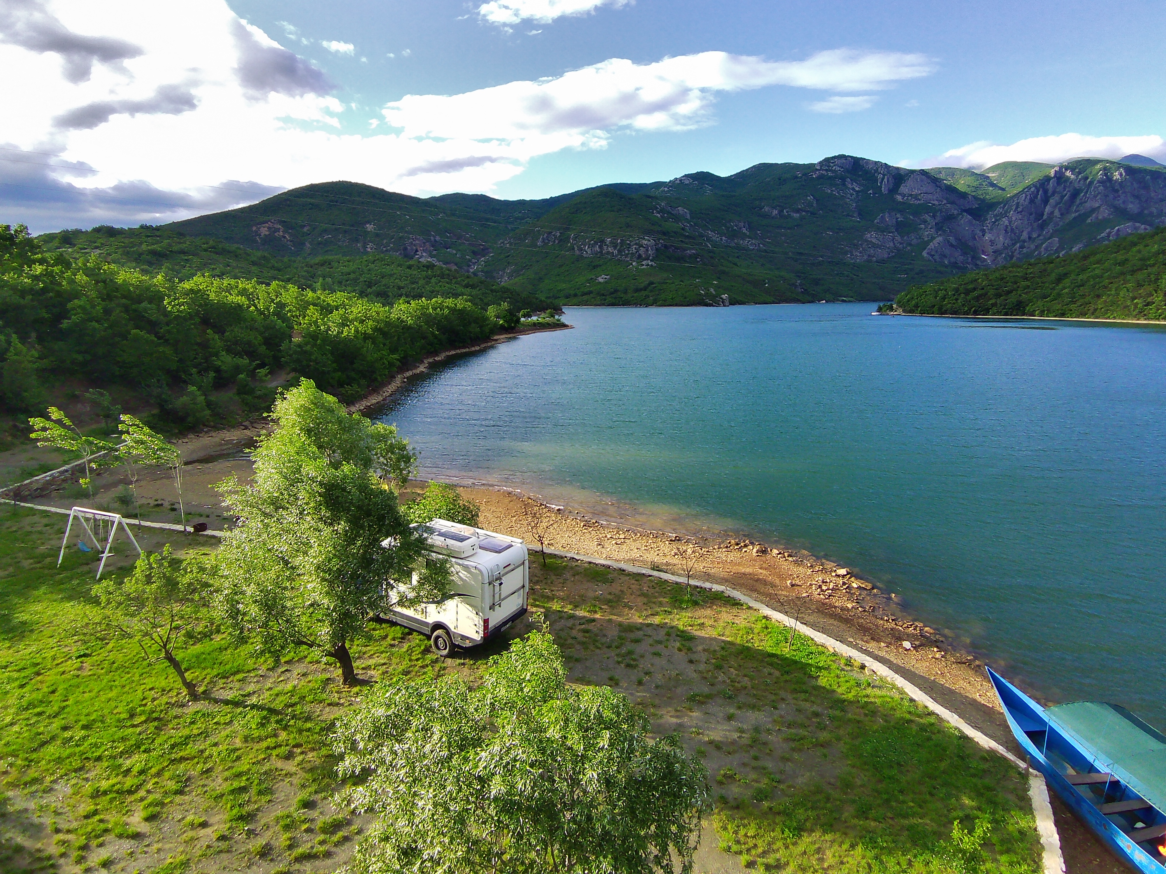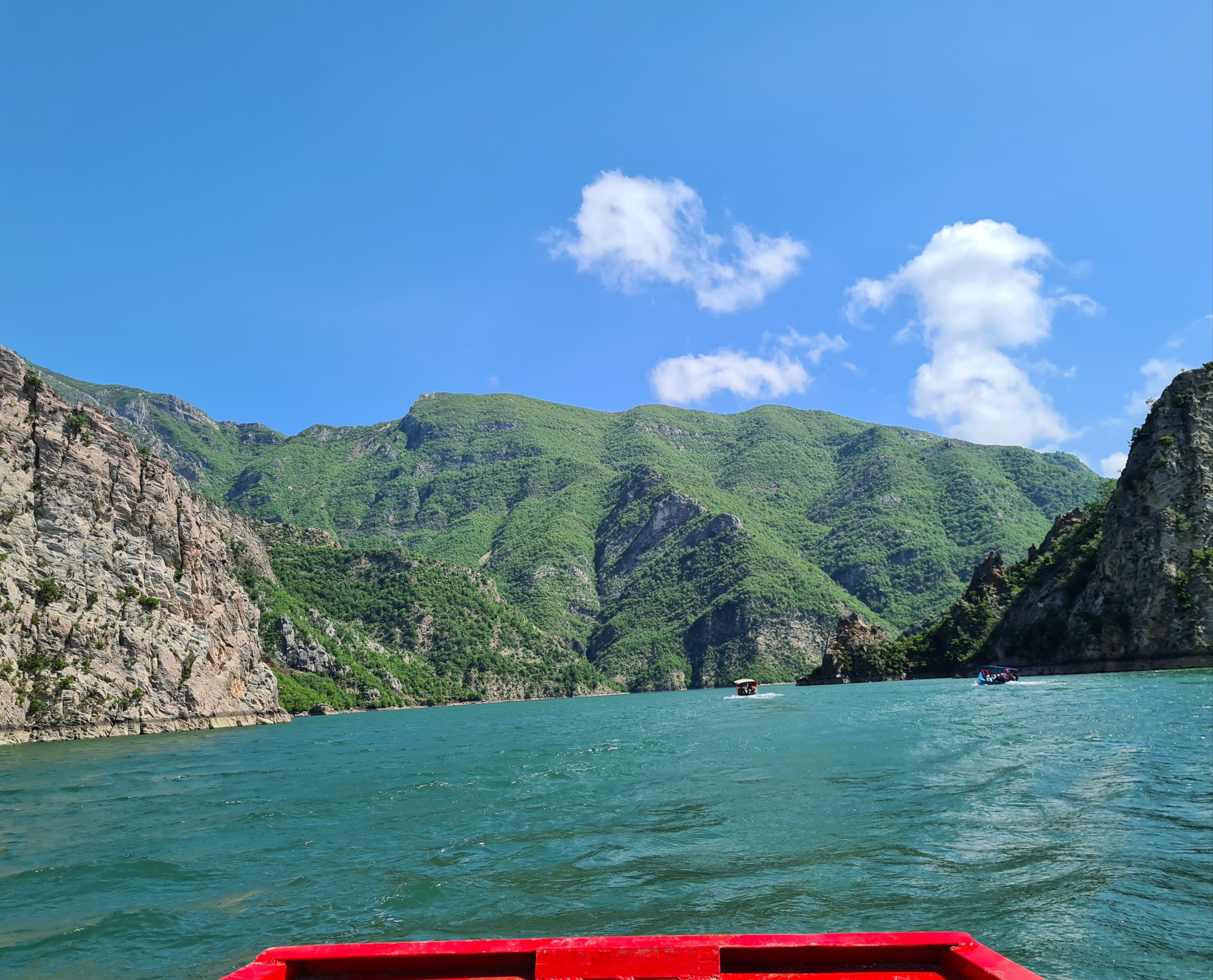 Die meisten Wohnmobilfahrer fahren mit der Fähre von Koman nach Fierze. Diese Route hat mitlerweile Kultstatus, aber wegen des schlechten Wetters im Valbona-Tal haben wir uns gegen diese Route entschieden. Wir hatten zuerst noch überlegt, Hin- und Rückfahrt als Fußgänger mit dieser Fähre zu buchen. 5 Stunden auf dem Wasser unter beengten Verhältnissen erschien uns allerdings dann doch zu lang. Im Internet haben wir uns Ausflüge mit kleineren Booten angesehen und uns schließlich zu einem Ausflug auf den Shala, einem Zufluß zum Koman See, entschieden.