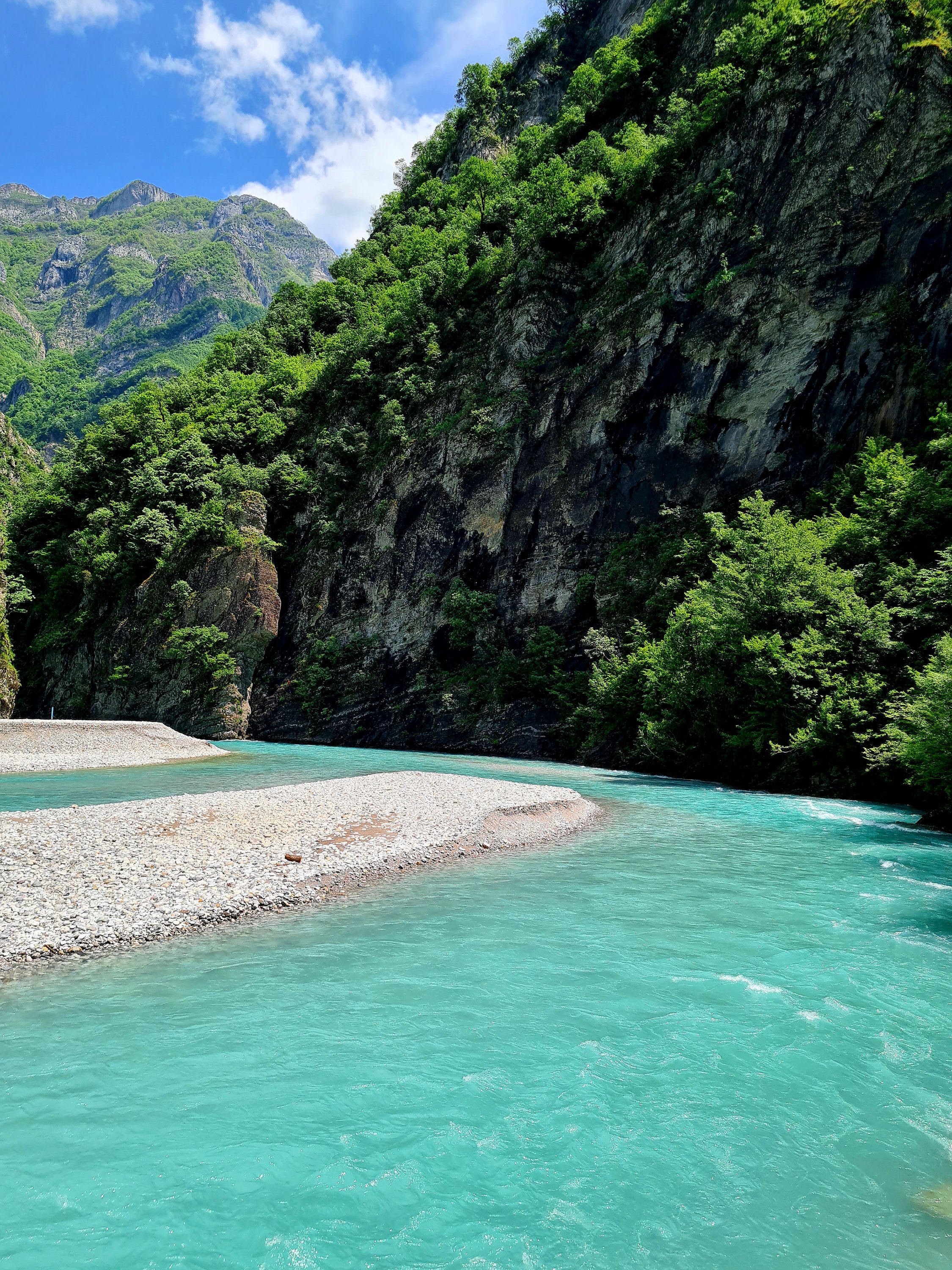 Zuerst ist das Tal des Drin noch sehr weit, ja die Berge sind hoch, aber in norwegischen Fjorden sieht es ähnlich aus.
