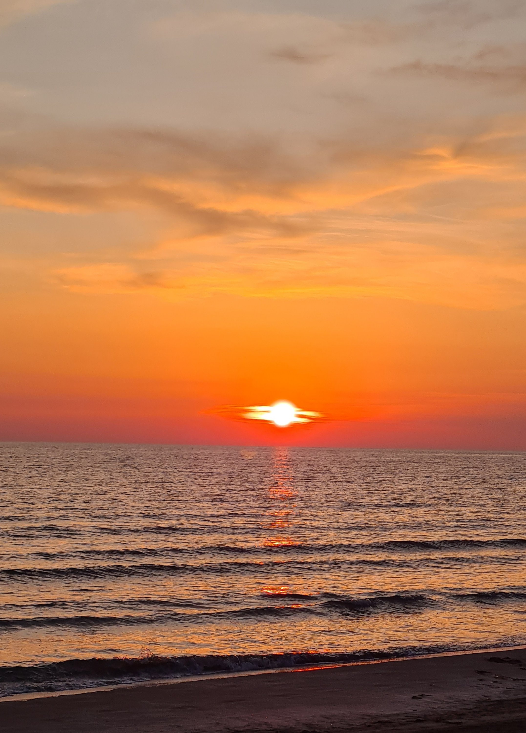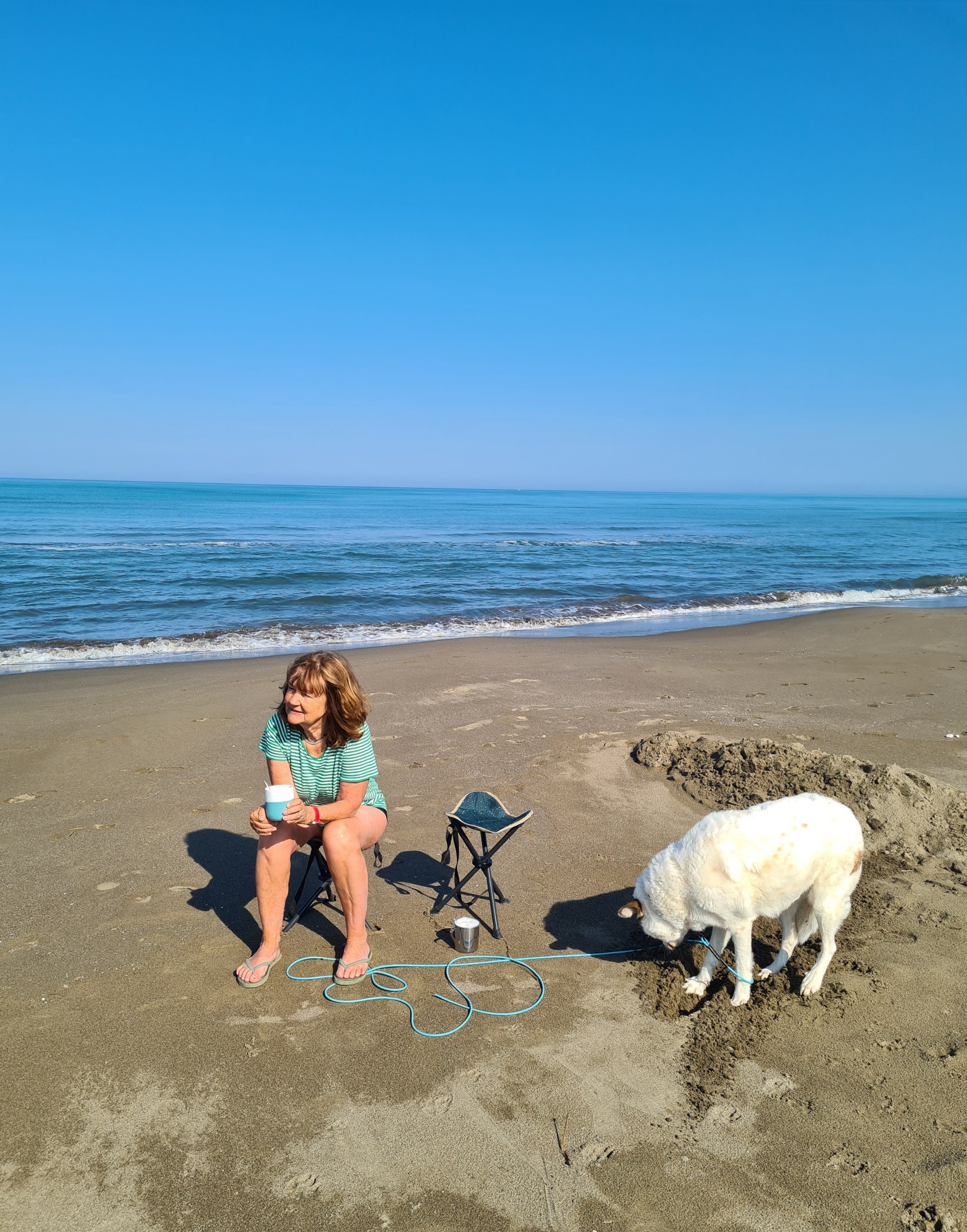 Nach einem sehr ereignisreichen Tag, außer Kultur musste Uwe noch 2 Autos retten, die sich im Sand eingebuddelt hatten, nimmt er noch ein Bad in der Adria.