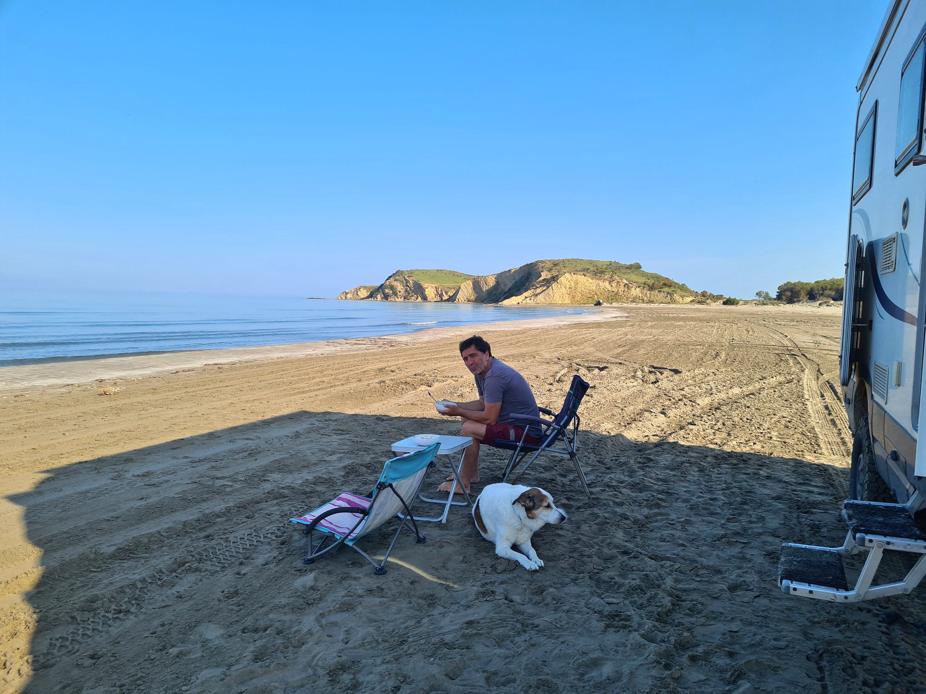 Nach dem Frühstück werden wir durch eine Bremseninvasion geplagt und entscheiden uns doch, unser schönes Sonnenplätzchen zumindest tagsüber zu verlassen und zu Ausgrabungen in Apollonia zu fahren.