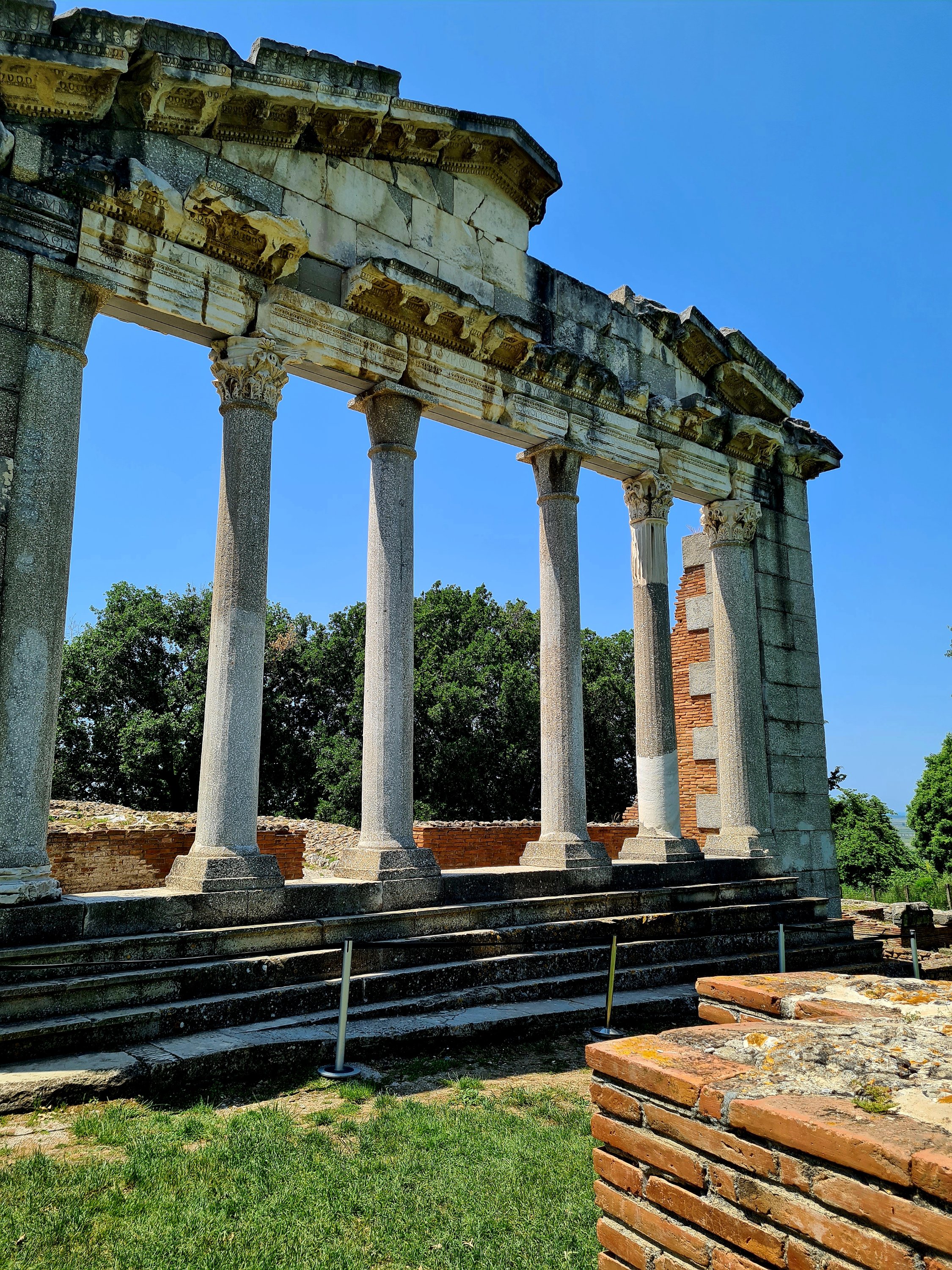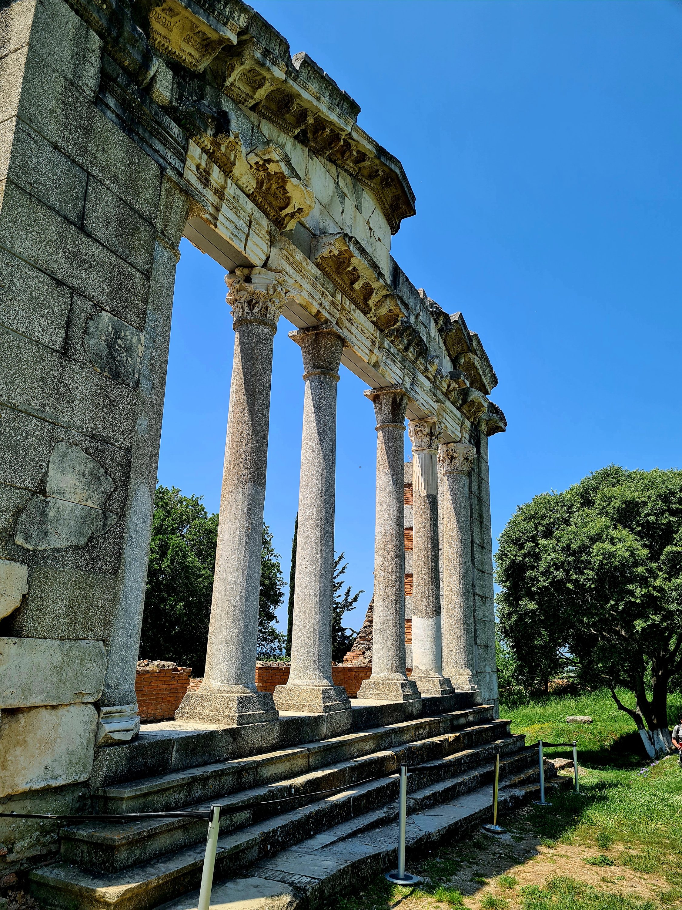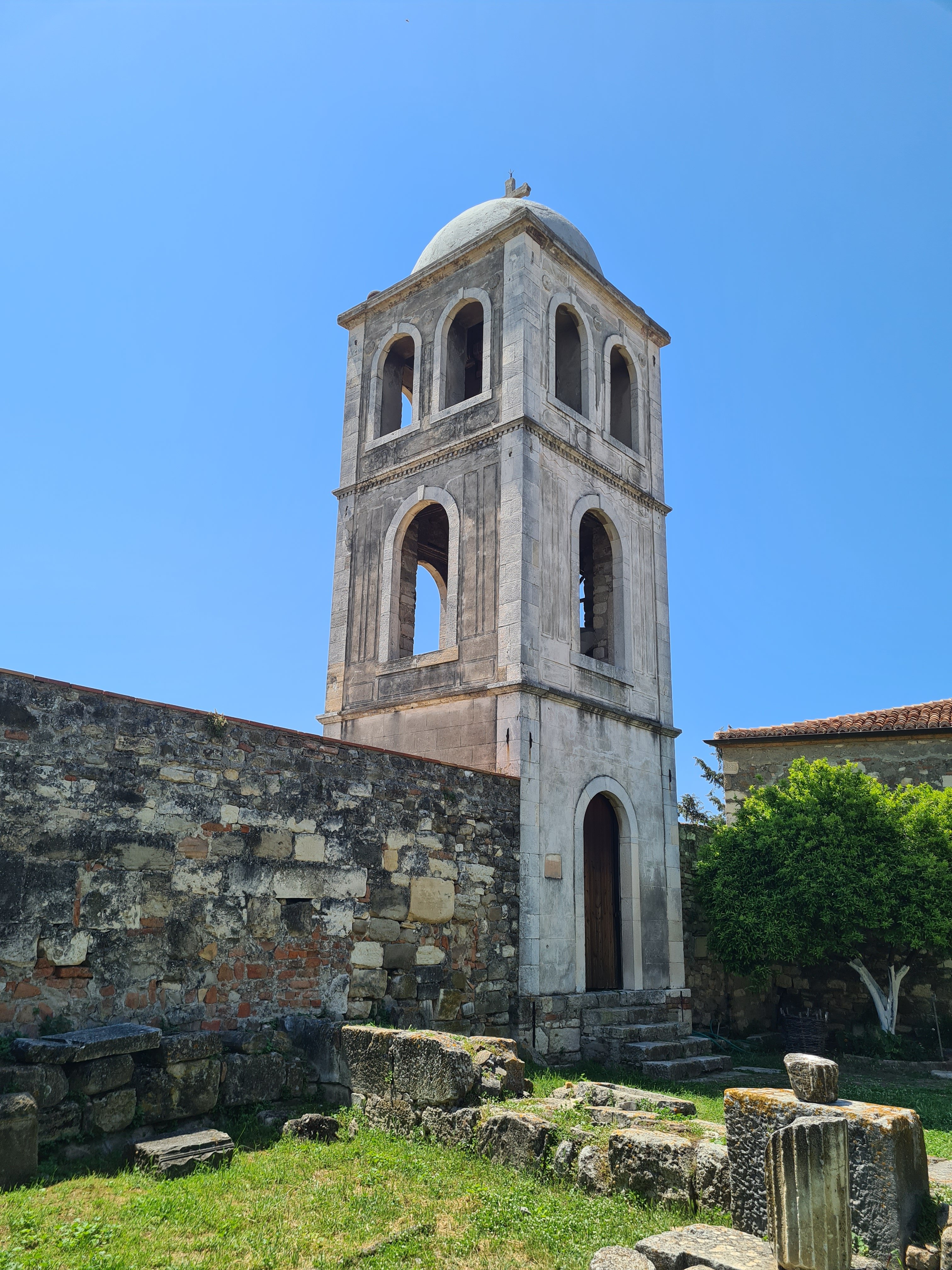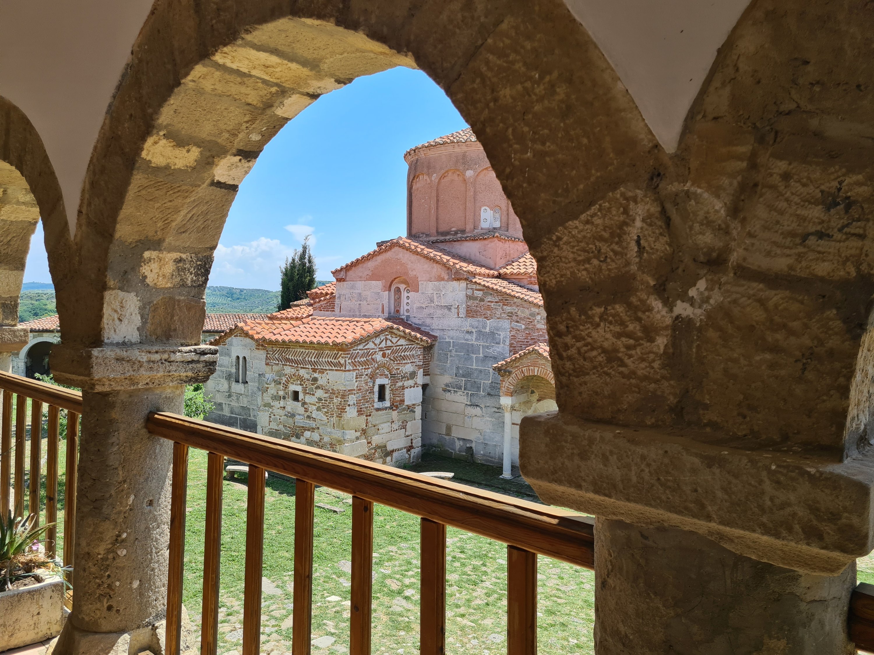 Im Inneren des Klosters gibt es ein total spannendes Museum mit Fundstücken aus der Stadt Apollonia. Viele Stücke wurden während des 2. Weltkriegs von Deutschen geraubt, später durch Enver Hoxa zerstört. Was jetzt noch im Museum zu sehen ist, sind wohl eher die Gegenstände, denen niemand Beachtung schenkte. Uns beeindruckt es sehr. Systematische Grabungen fanden erstmals in den 1930er Jahren statt. Vieles entdeckte man erst 1990 und man kann deutlich erkennen, dass das Areal, in dem sich Bauwerke befinden, noch sehr viel größer sein muss.