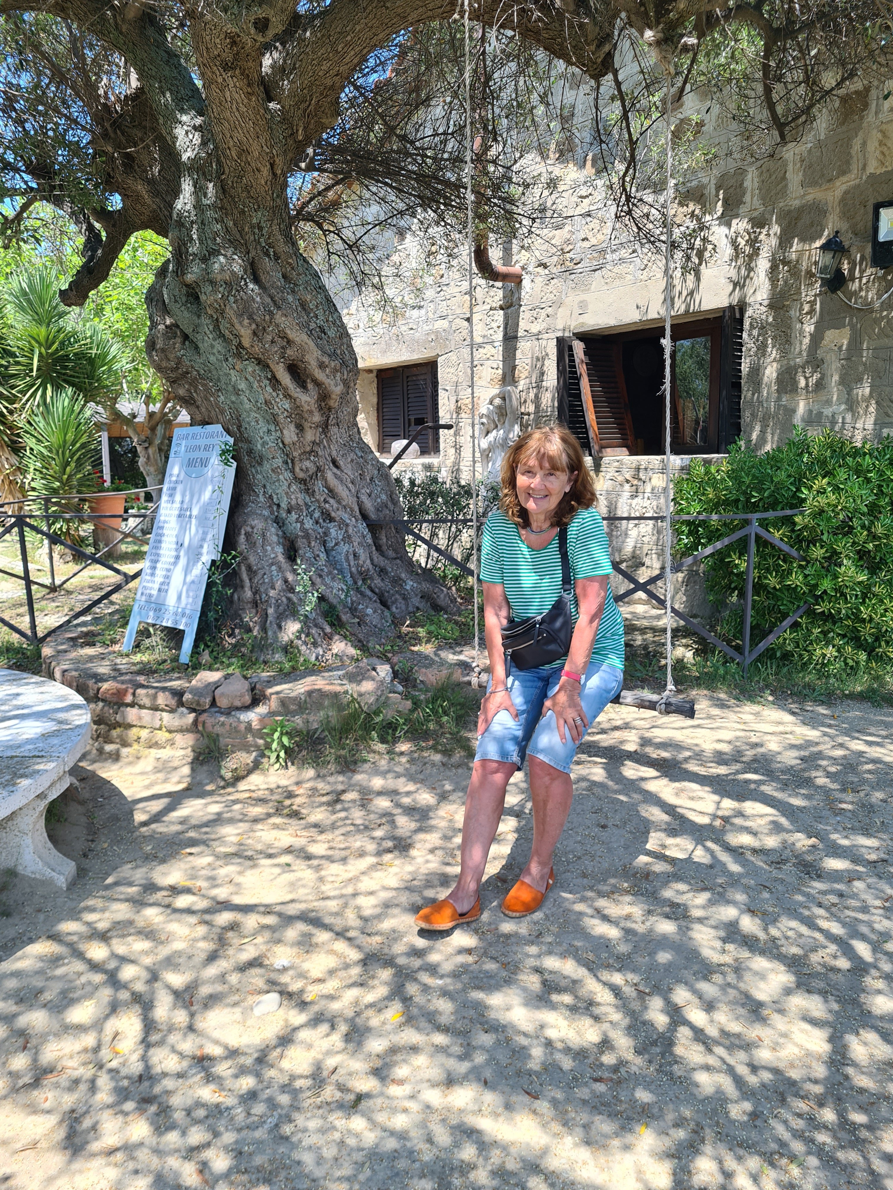 Im Schatten alter Olivenbäume trinken wir den ersten Frappé dieser Reise.