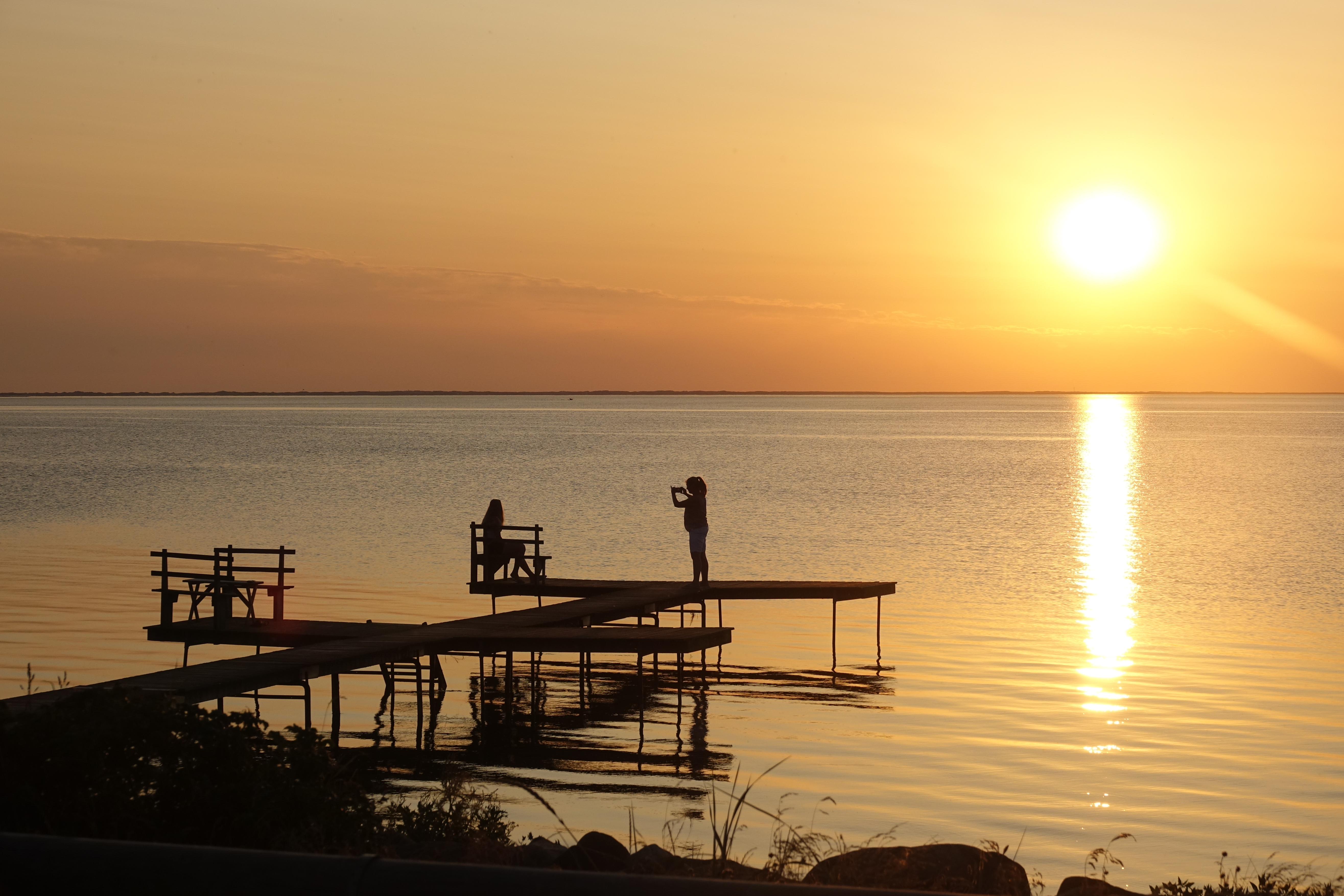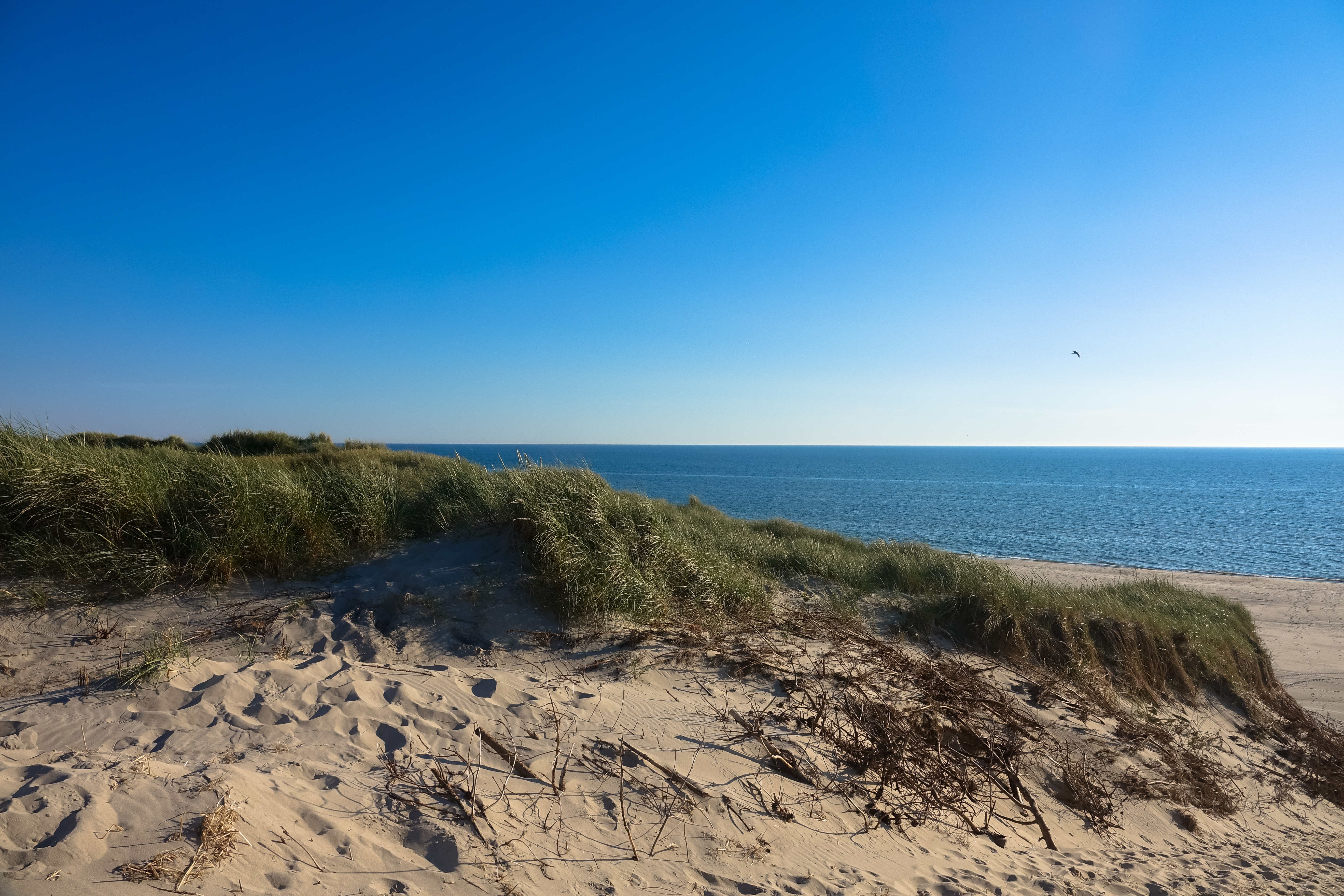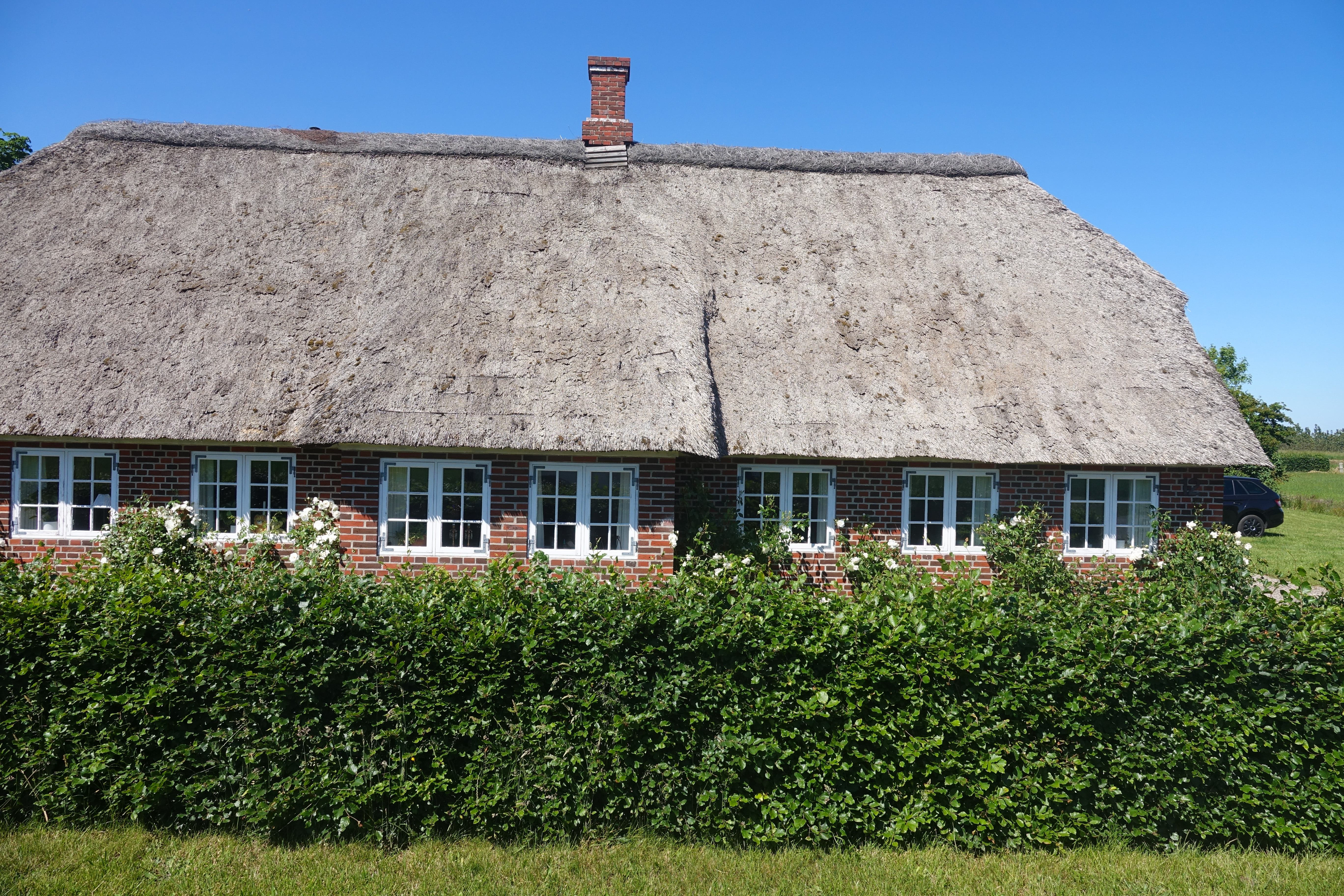 Wir haben in der Marina Handbjerg sehr ruhig geschlafen und sogar die Hunde werden hier verwöhnt, beide bekommen morgens vom Hafenmeister eine Tüte mit Leckerchen. Beim Frühstück können wir durch die Frontscheibe bei einer Segelregatta zusehen, aber für uns ist der Wind zu schwach, gerade einmal 12 Knoten, reicht nicht. Also wollen wir den weiteren Küstenverlauf nördlich von Ejsingholm erkunden und uns in Spøttrup eine mittelalterliche Wasserburg ansehen. Es regnet nicht, trotzdem ist der Himmel bewölkt, also ideales Wanderwetter. Die Dänen sind wirklich zu beneiden, es gibt hier endlos viele Strände, immer gemütlich hergerichtet mit Badesteg und Picknickplätzchen.