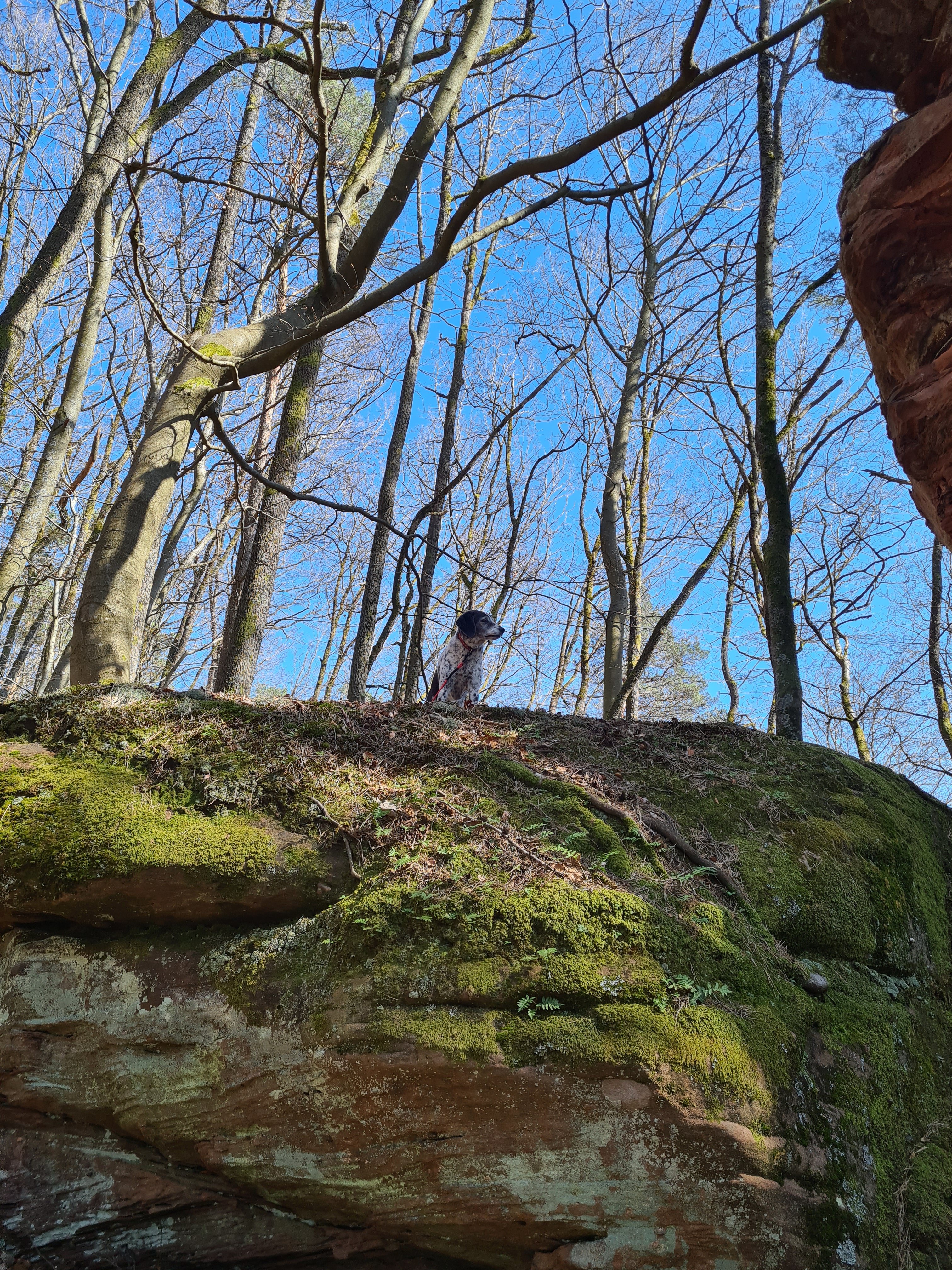 Am Anfang läuft Mali noch fleißig durch den verschneiten Winterwald. Wir müssen über viele umgestürzte Bäume klettern, die der Schneelast nicht Stand gehalten haben.