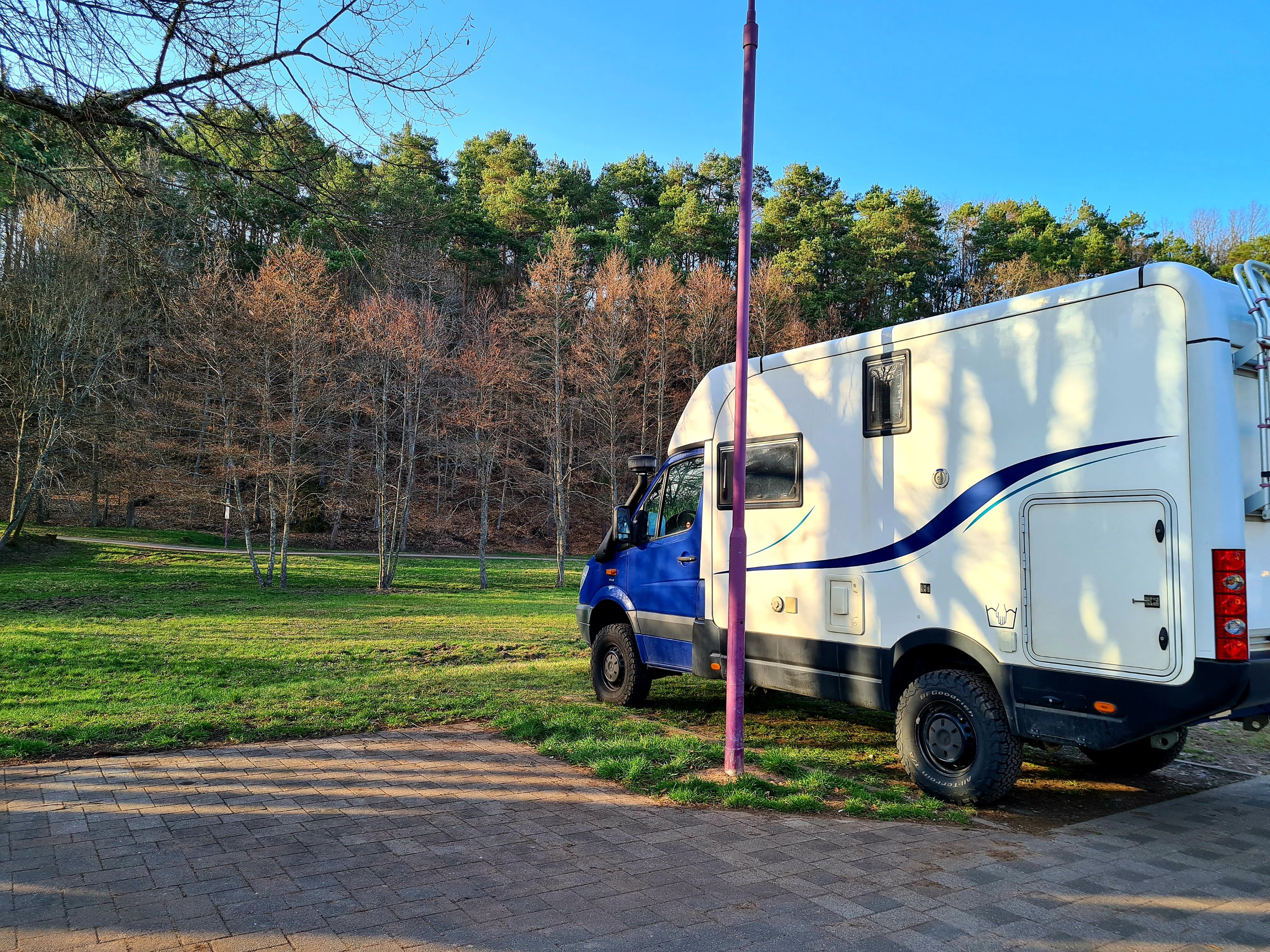 Die Pizzeria hatte leider geschlossen, daher machen sich die Kölner auf die Heimreise und wir versuchen zu unserem nächsten Wanderparkplatz bei Boos zu kommen. Eigentlich ist der nur 35 km entfernt, aber es sind so viele Strecken wegen Schneebruch gesperrt, dass wir irgendwann aufgeben und die Nacht auf dem offiziellen Stellplatz in Kelberg verbringen. Auch ganz nett! Zwar nicht ganz so romantisch, wie mitten im Wald zu stehen, aber wenn so viele Straßen wegen Schneebruch gesperrt sind, ist es möglicherweise gar nicht ratsam mitten im Wald zu übernachten, zumal wir auch wieder nur über zahlreiche Umwege nach Boos gekommen wären.