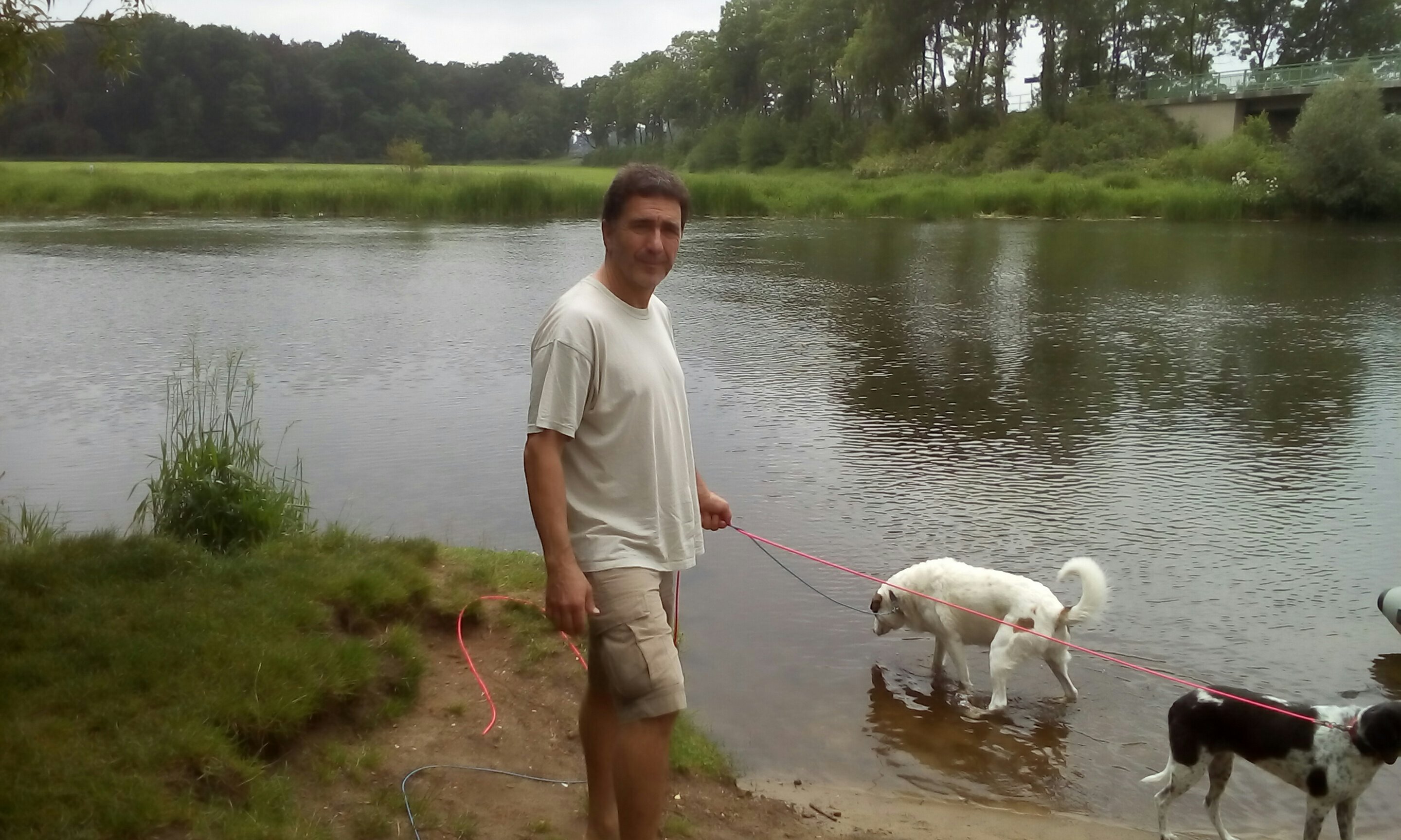 Die Hunde treffen hier Artgenossen zum Spielen und wir lassen uns erklären, dass man in der Aller sogar Gold finden kann und werden sogar Zeuge davon. Gut, es war nur ein winziger Krümel, aber Kleinvieh macht auch Mist. Vermutlich ist es eher der Verkäufer des Equipments, der hier eine Goldader entdeckt hat.