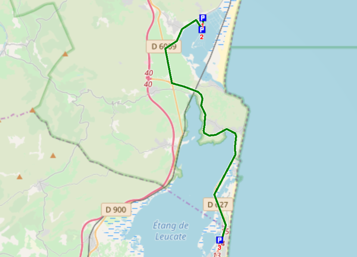 15. Von Fitou nach Le Vigne und über den Sandarm zum CCP La Palme 13€ Strecke 13 km. Kitewind für 19m², 42⁰58’45″/3⁰1’9″.