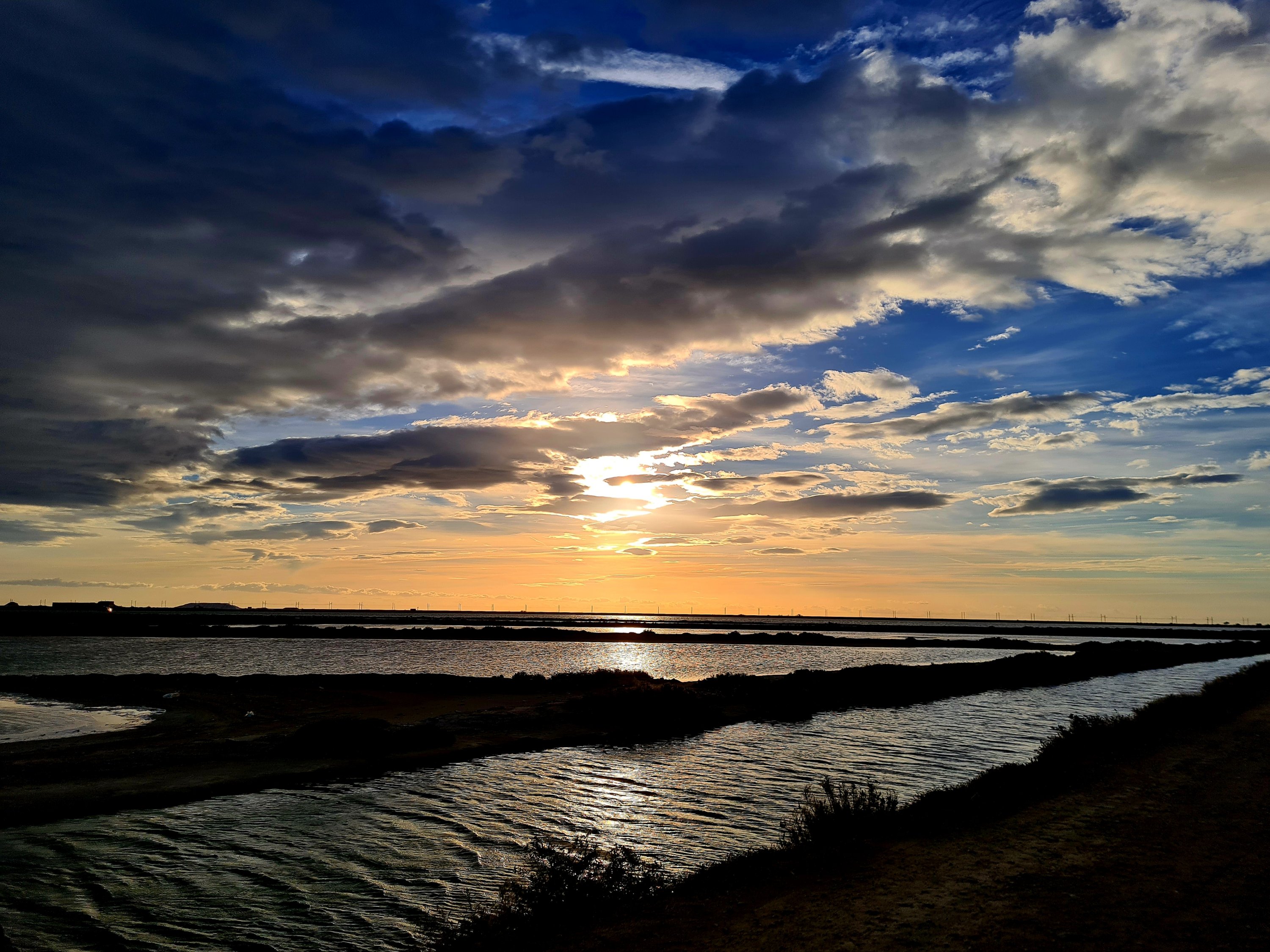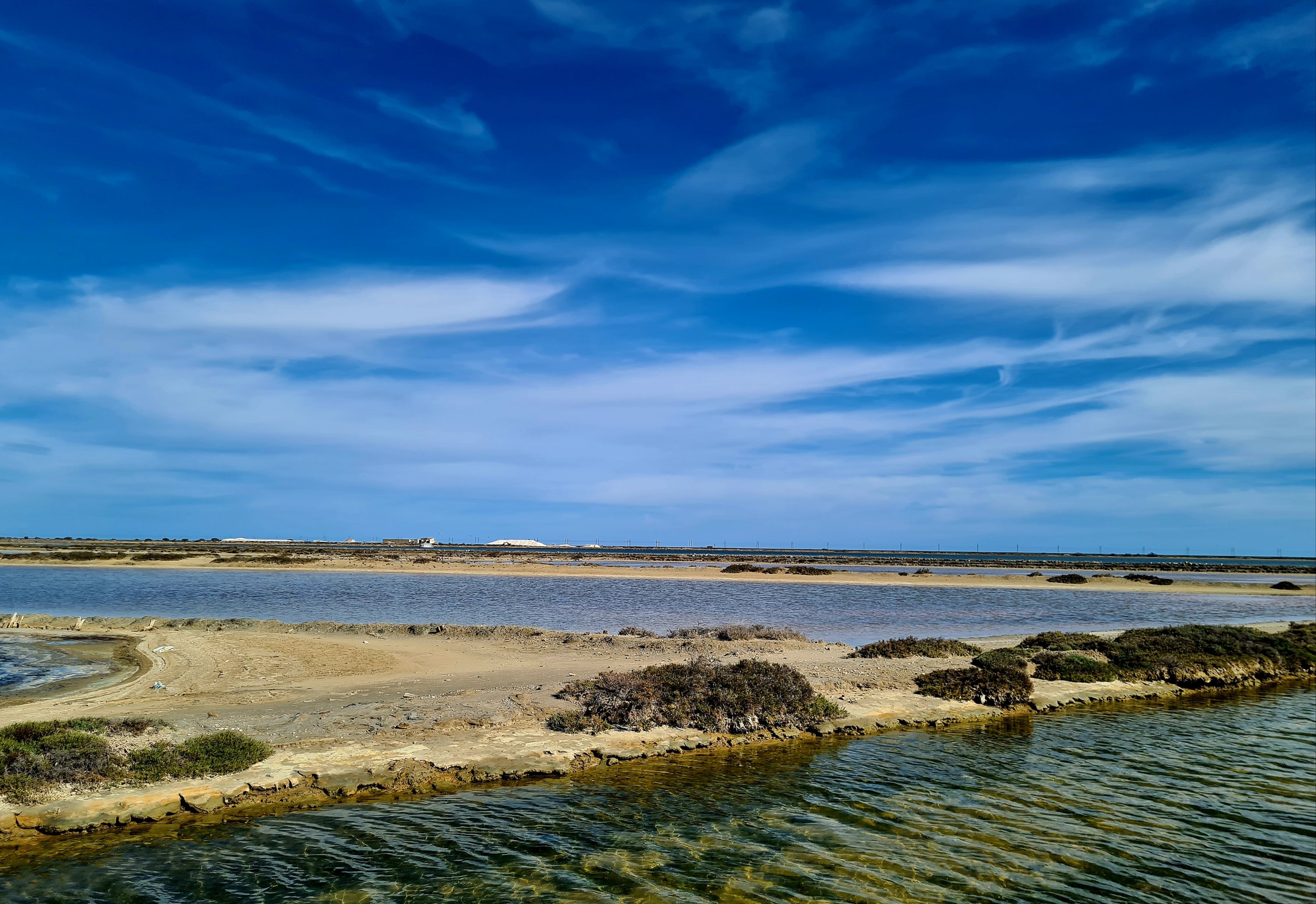 Schon vor dem Frühstück stehen wir in den Salinen. Es bläst ordentlich.