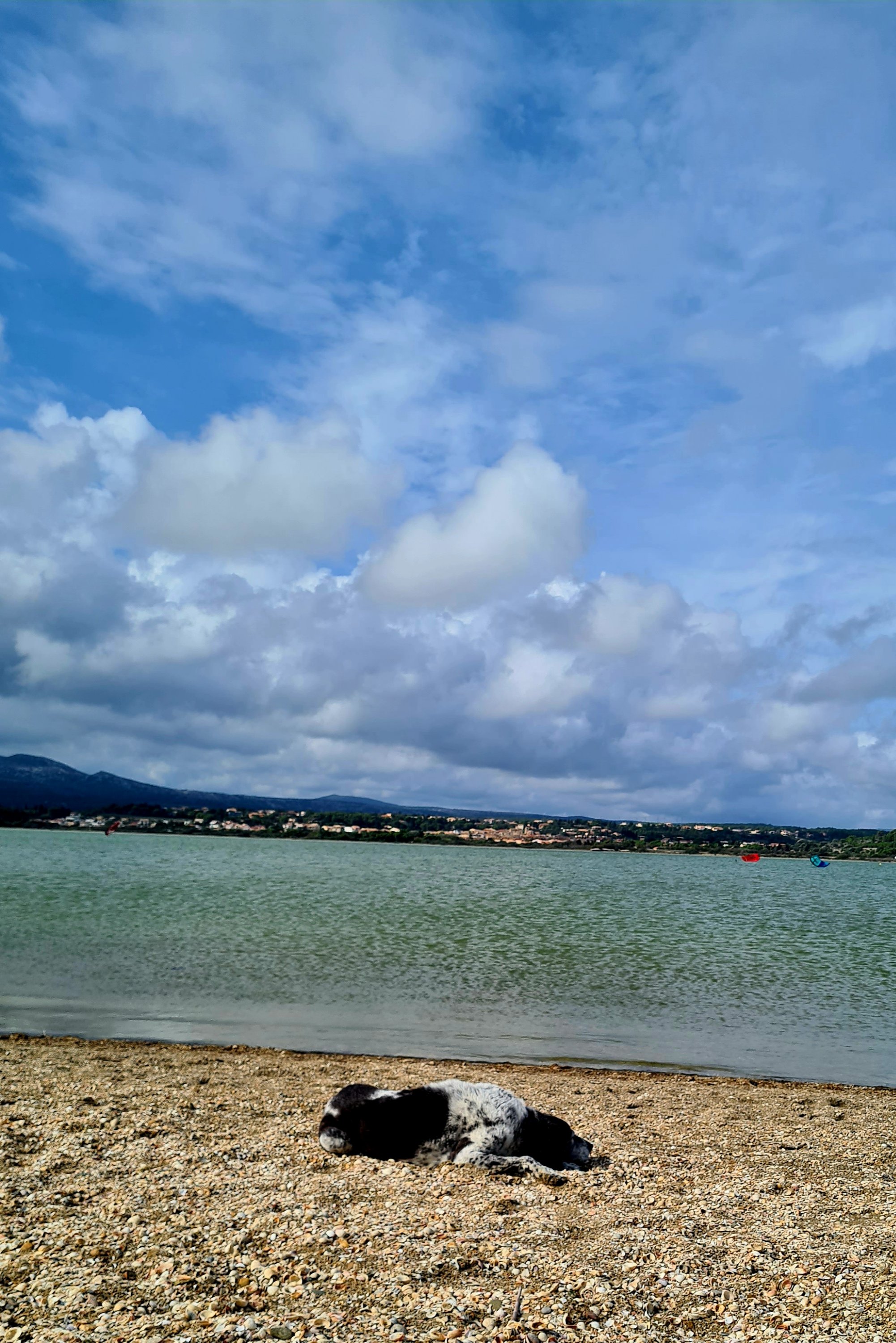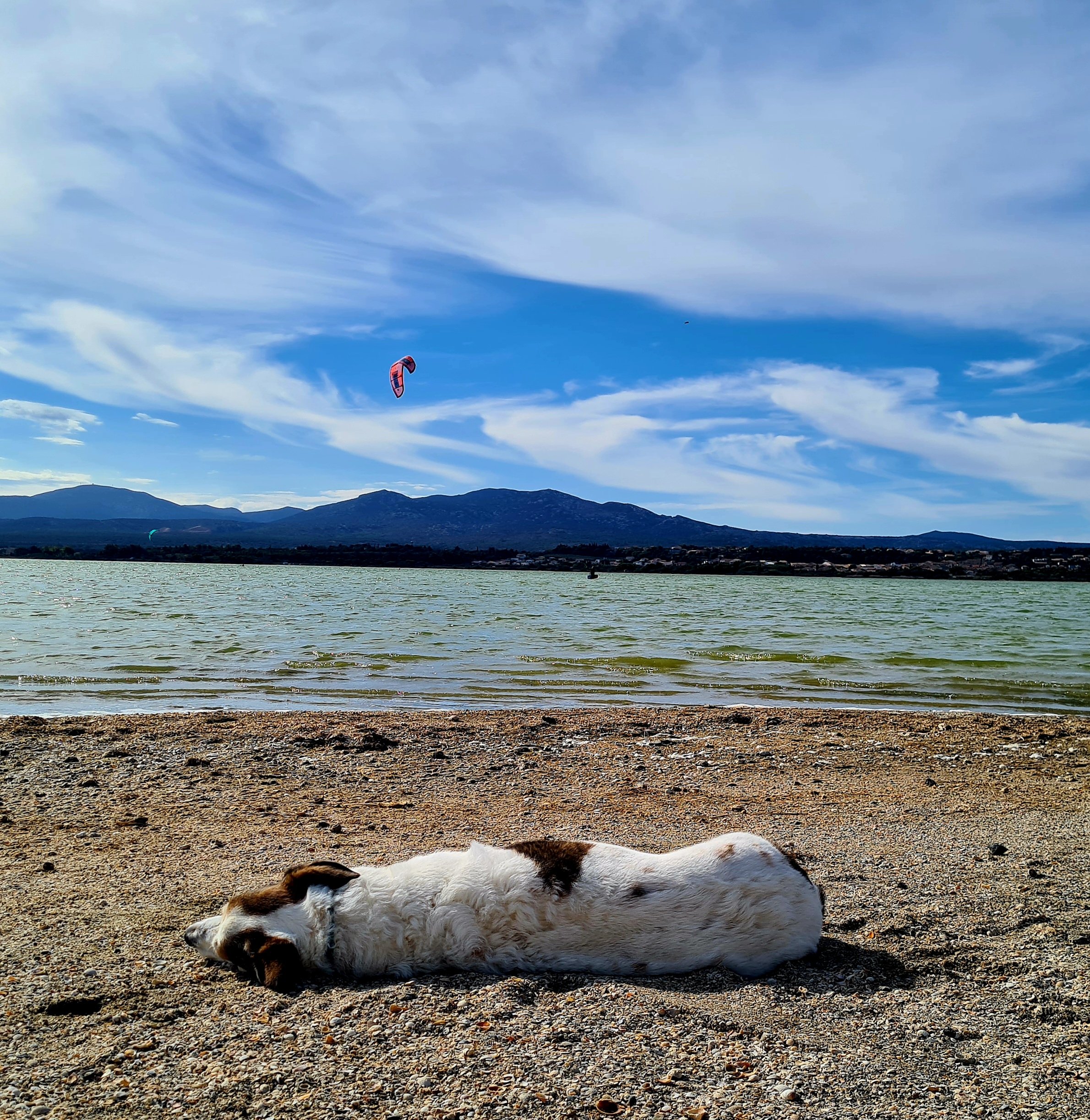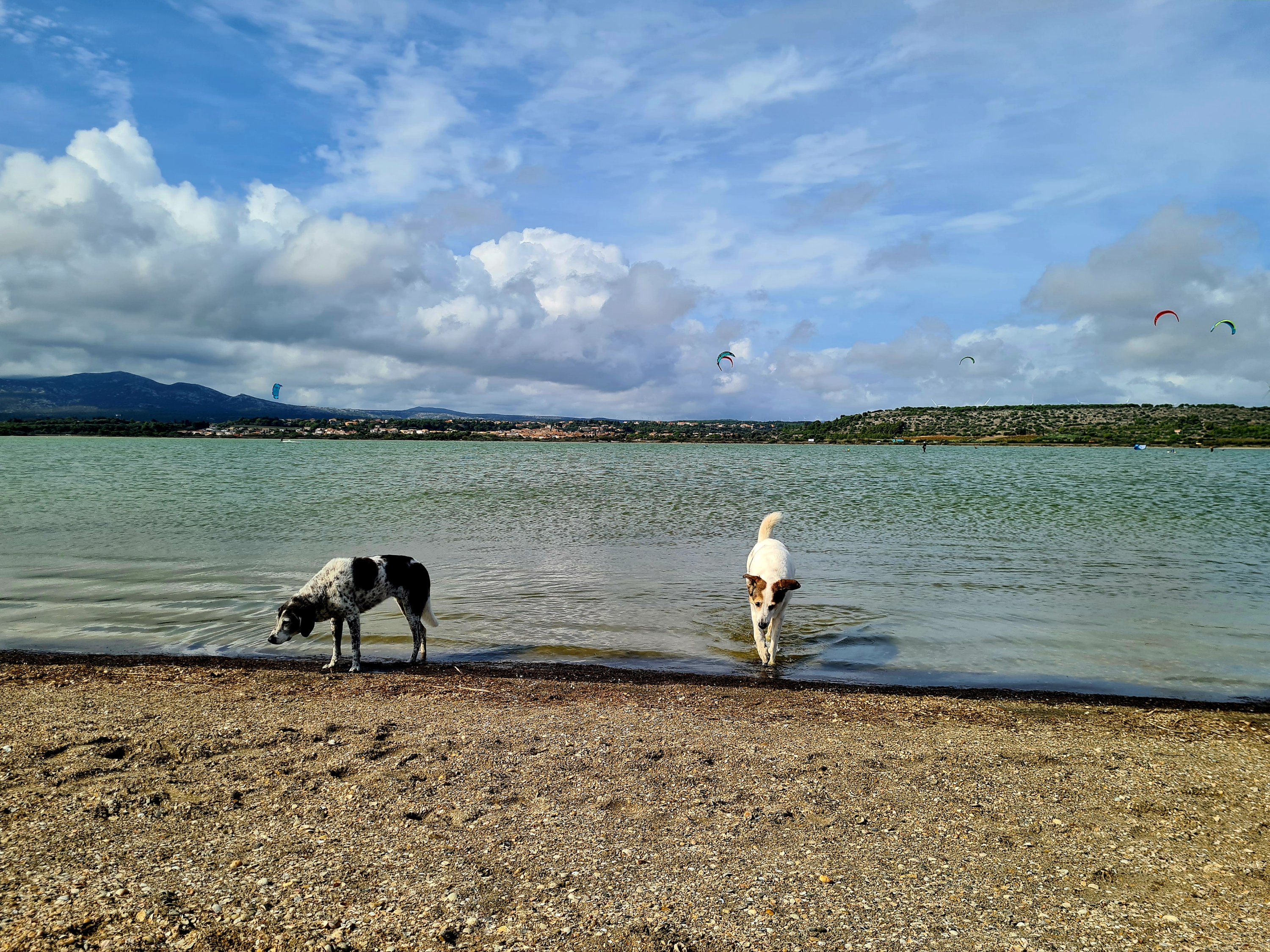 Wir gehen zu Lidl einkaufen, bringen mein Segel zum Segelmacher, entsorgen bei Super U und verbringen die Mittagspause am Strand von Port La Nouvelle und treffen dort die Frankfurter Kiter mit Hund Rudi wieder.
