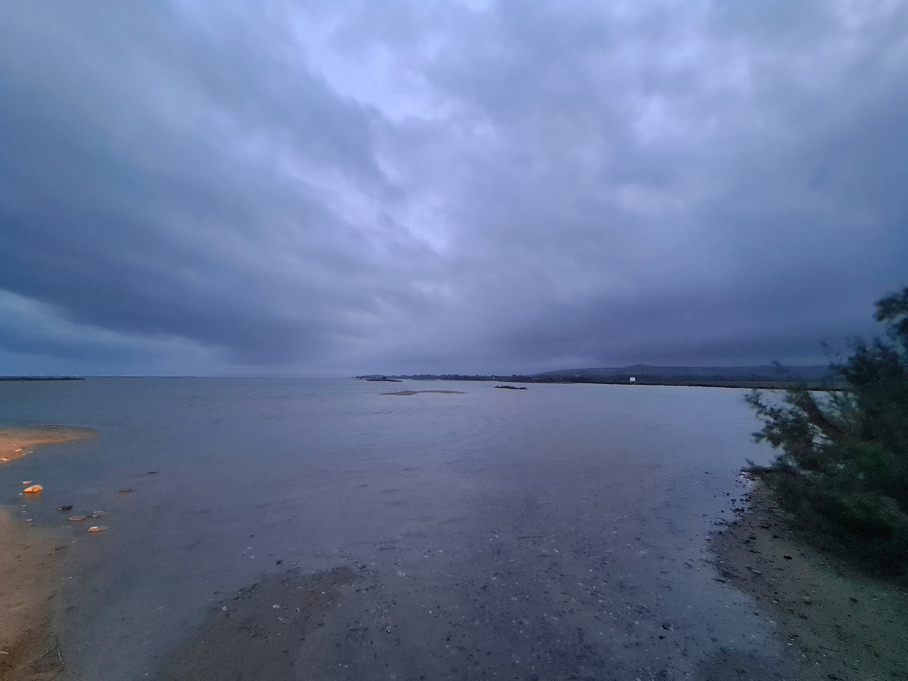 Bei unserer Fahrt zur Pizzeria entdecken wir, dass der Rouet-Strand bei Marin komplett unter Wasser steht. Und dann ist die Pizzeria auch noch geschlossen!