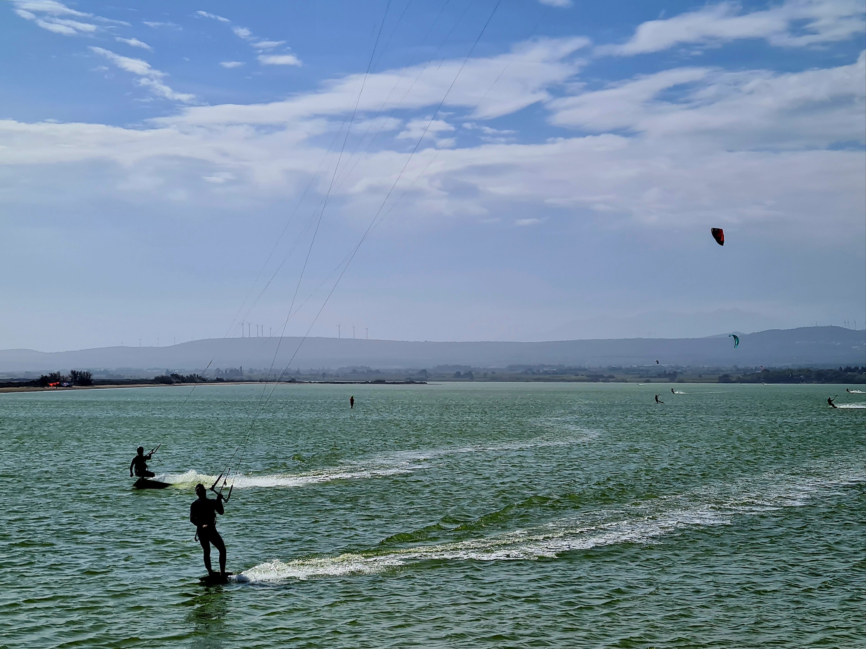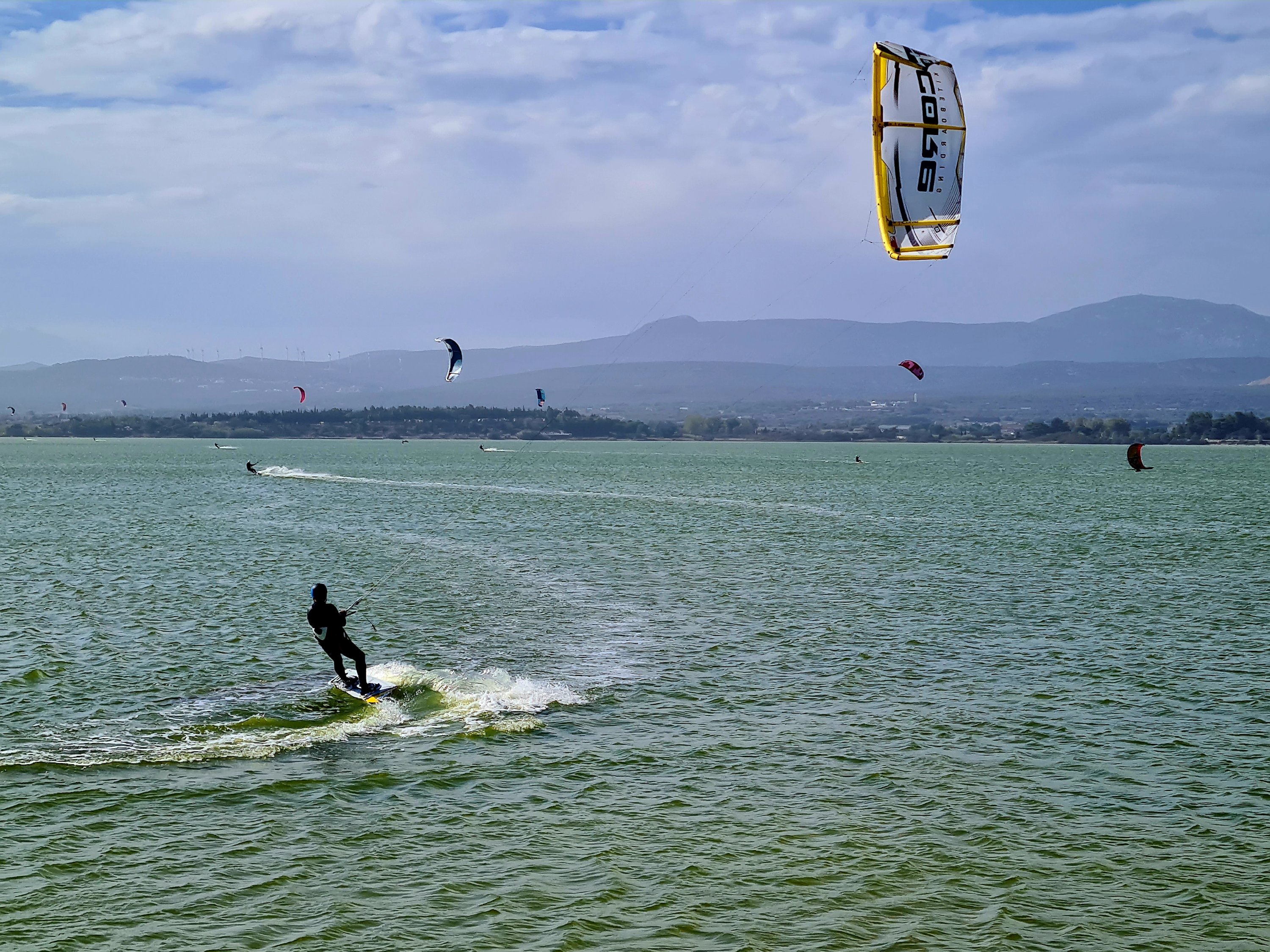 19. Von Schloss Fitou zum Sandarm zum Surfen und Kiten sind es 13 km. Abends zu Luigi eine Pizza abholen und zum CCP in La Palme sind es dann noch einmal 13 km hin und zurück.