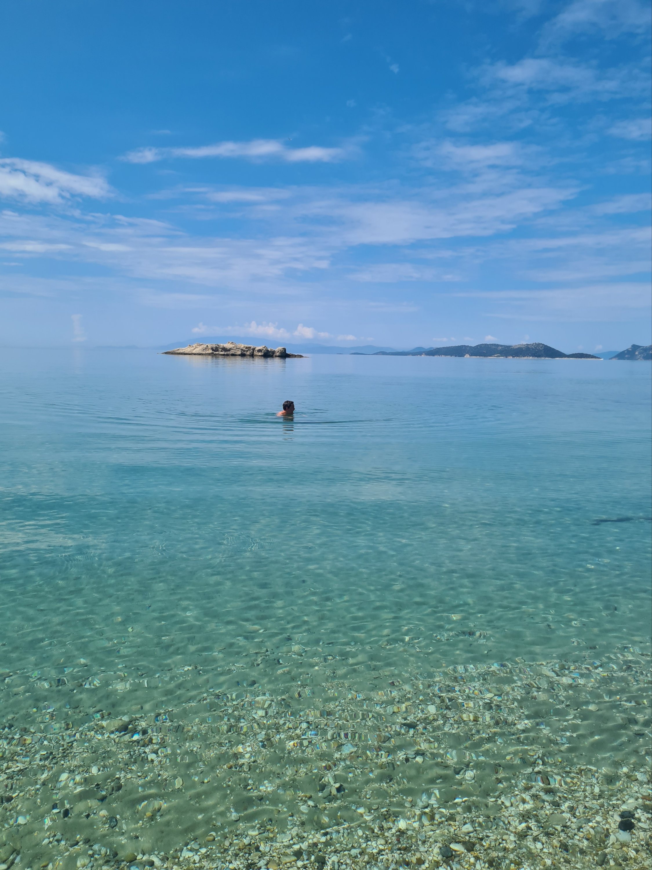 Nach einer Frühstücks-Schwimmrunde geht es weiter nach Astakos, weil der Bäcker gestern schon zu hatte.