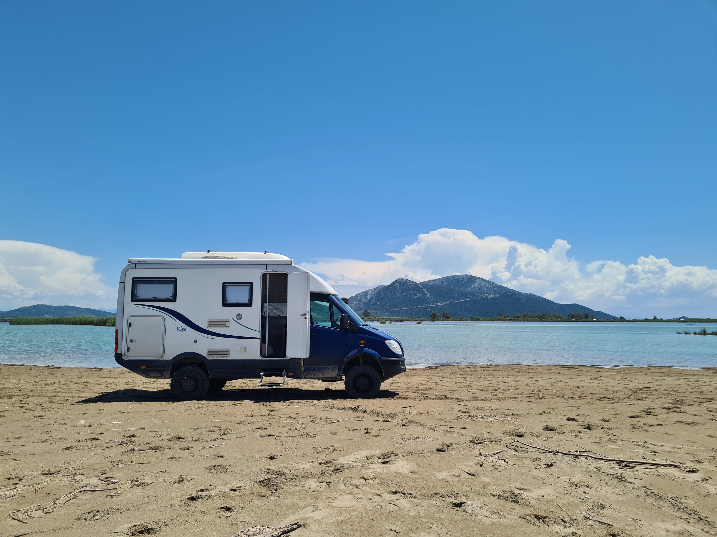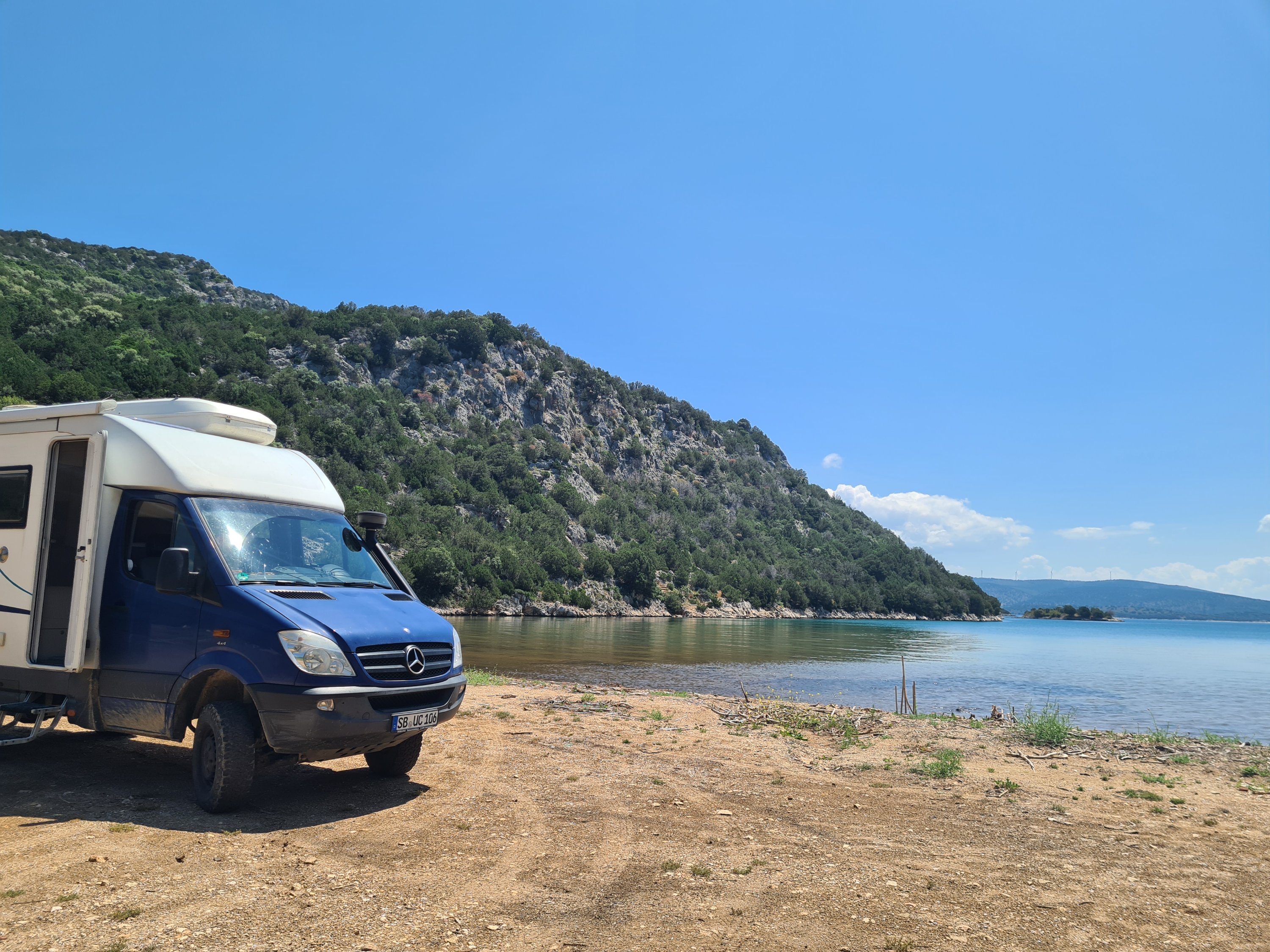 In 3 Wochen müssen wir wieder zu Hause sein. Griechenland ist das 6. Reiseland auf unserer Tour. Auf dem Heimweg kommen wir noch durch Italien und die Schweiz, also werden wir auf unserem Roadtrip mindestens 8 Länder sehen, vielleicht sogar 9, wenn wir es noch bis Nordmazedonien schaffen. Heute geht es erst einmal – wen wunderts – weiter nach Süden. Unser Plan sind ungefähr 100 km. Eigentlich müssten wir einkaufen, aber es ist Sonntag. Das hatten wir komplett vergessen. Urlaub eben! Aber für Spaghetti mit Tomatensauce reicht es noch.