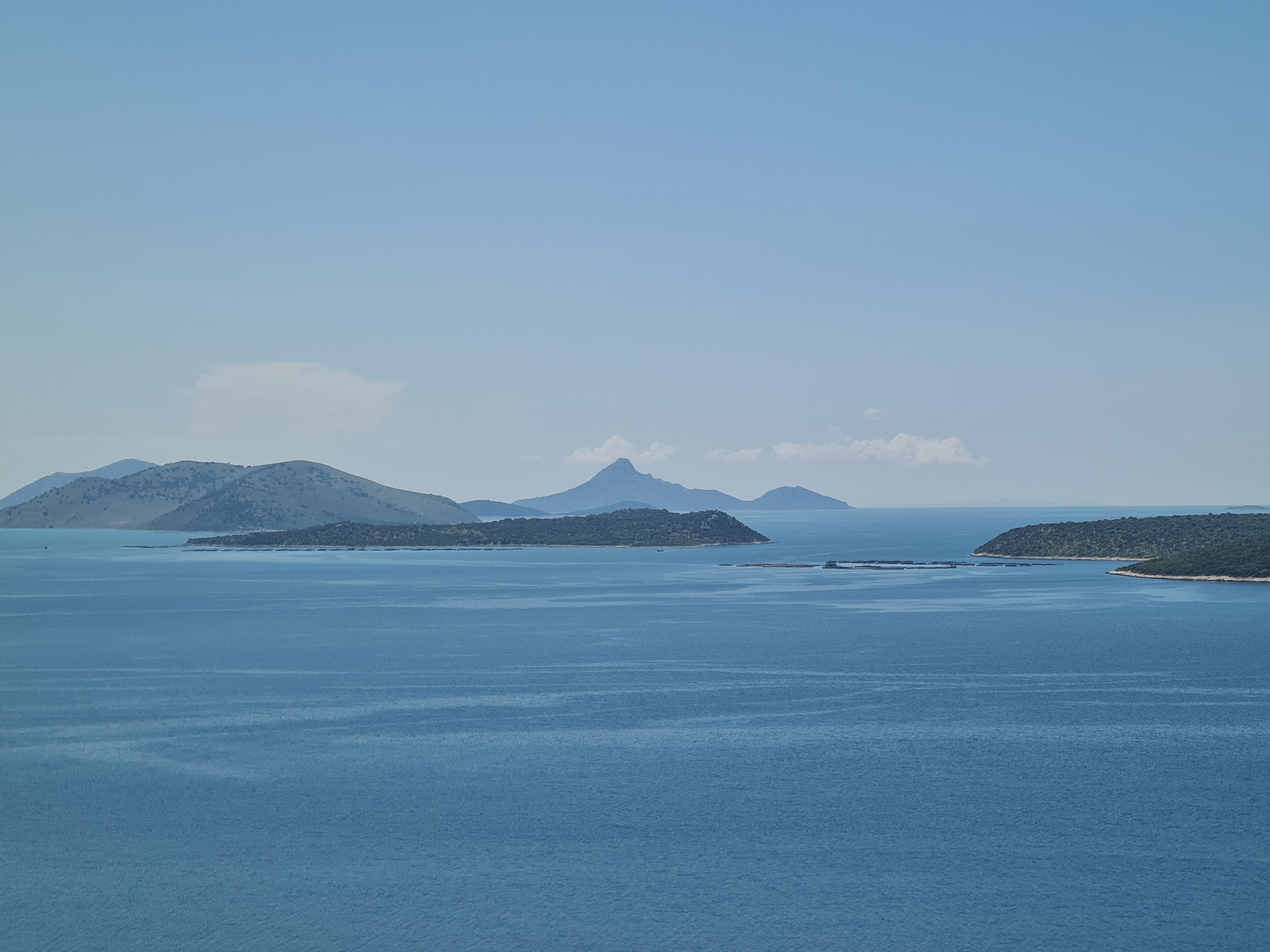 Wir sehen den Peloponnes von hier aus und haben uns vorgenommen, im nächsten Herbst noch einmal eine Umrundung zu starten.