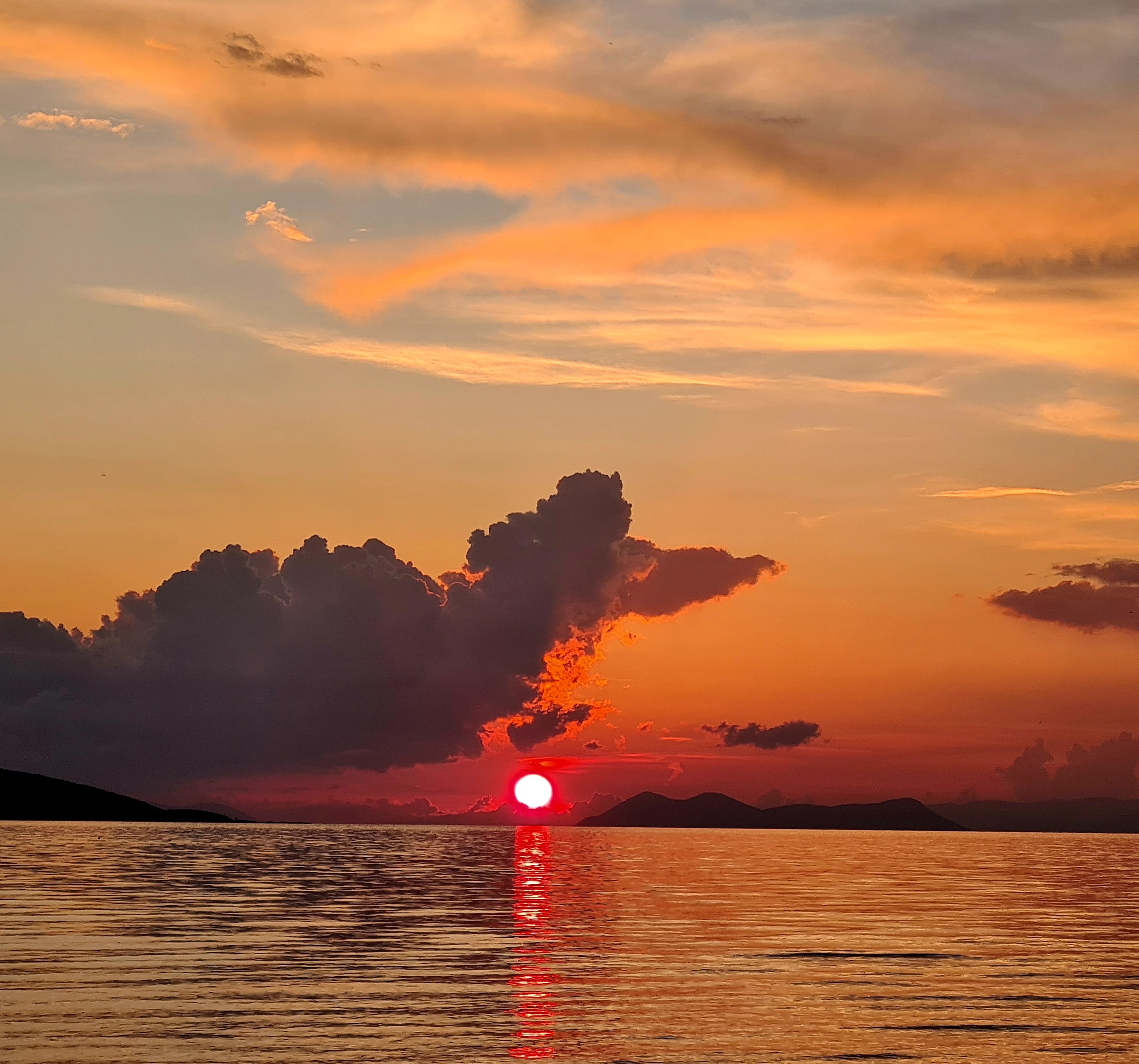 Abends hören wir es bereits wieder im Landesinneren grollen. Wirklich seltsam! Das haben wir in Griechenland noch nie erlebt.