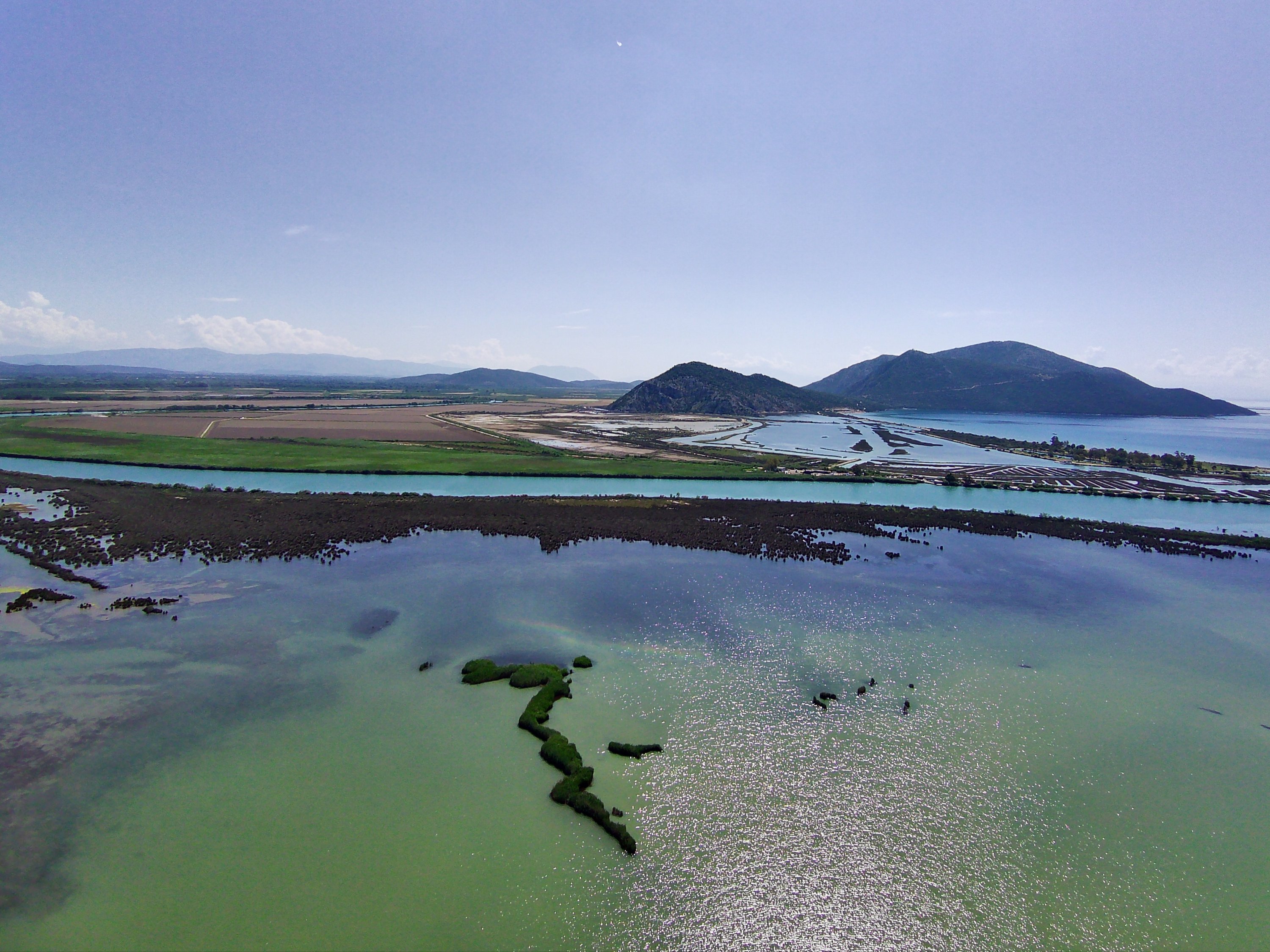 Die Flußmündung des Acheloos hat eine wunderschöne Lagunenlandschaft gezaubert, die man erst aus der Luft mit unserer Drohne Hedwig richtig überschauen kann.