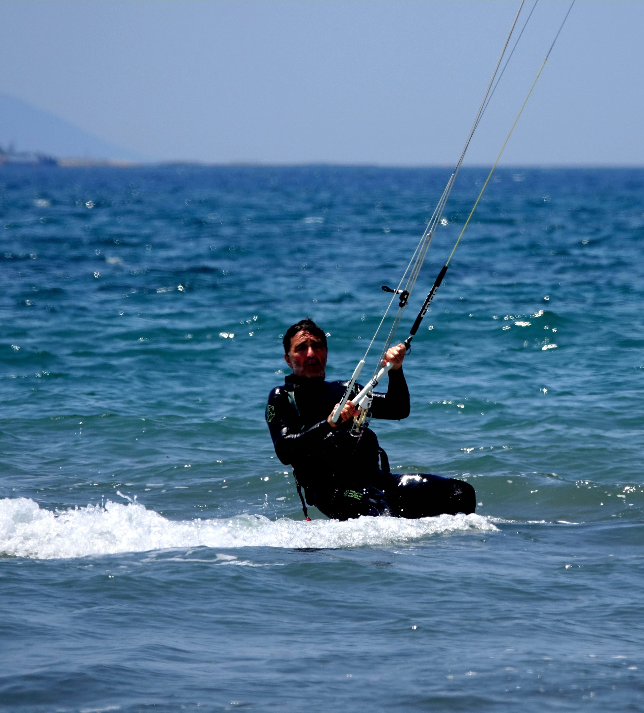 Wir lassen unserem Navi freien Lauf, als seine Vorschläge uns komisch vorkommen, kontrollieren wir mit Google Maps und dann hält uns ein älterer Grieche an und fragt: „Kite?“. Weil er unermüdlich auf Griechisch auf uns ein redet, fahren wir ihm hinterher. In Marokko würde man jetzt definitiv in einem Teppichladen landen, aber er bringt uns tatsächlich nur auf den richtigen Weg und erwartet keinen Obolus. So sind sie, die Griechen!