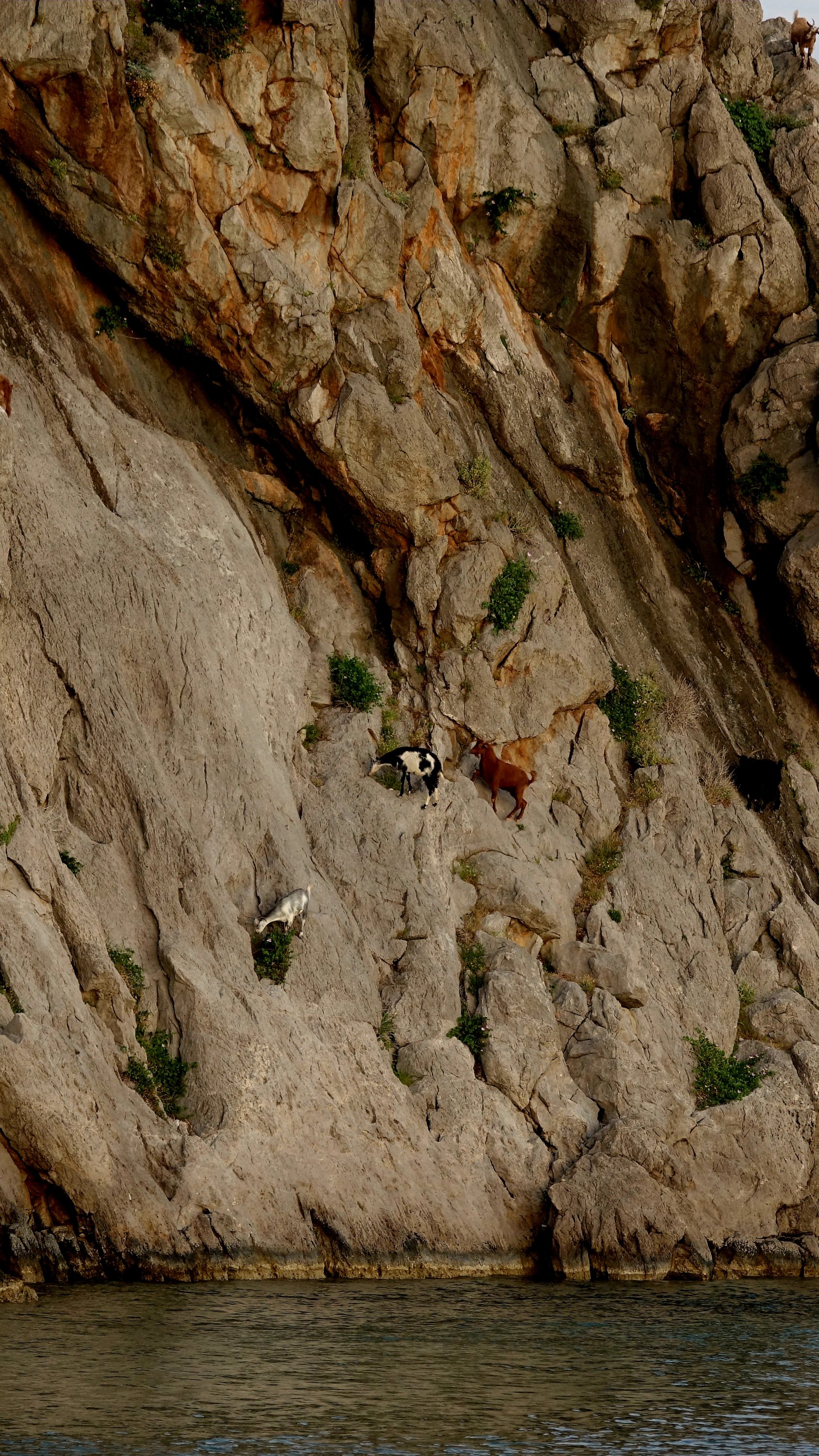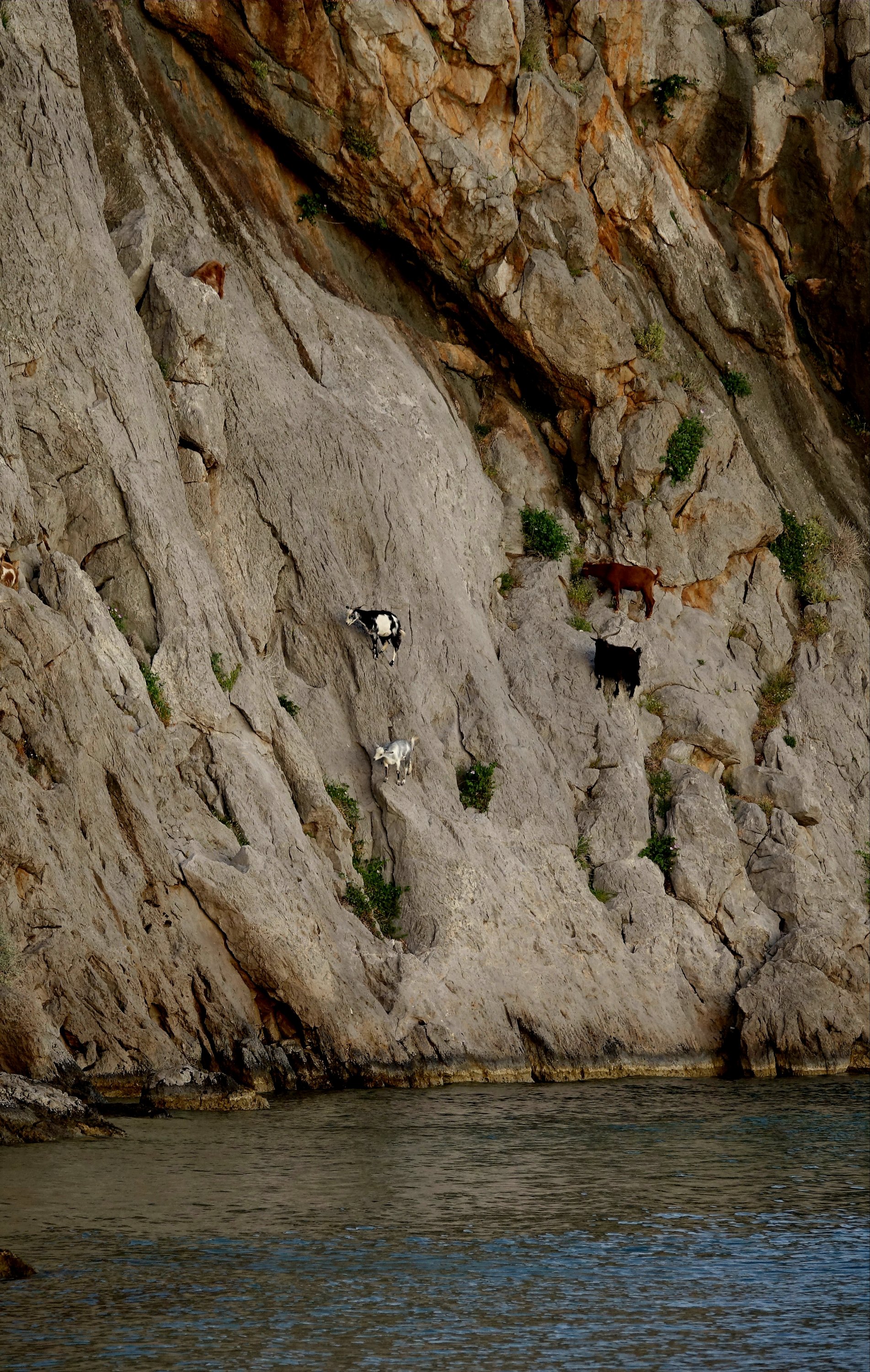 Beim Abendessen halten wir plötzlich die Luft an. Über uns, in der fast senkrechten Wand, klettern Ziegen.