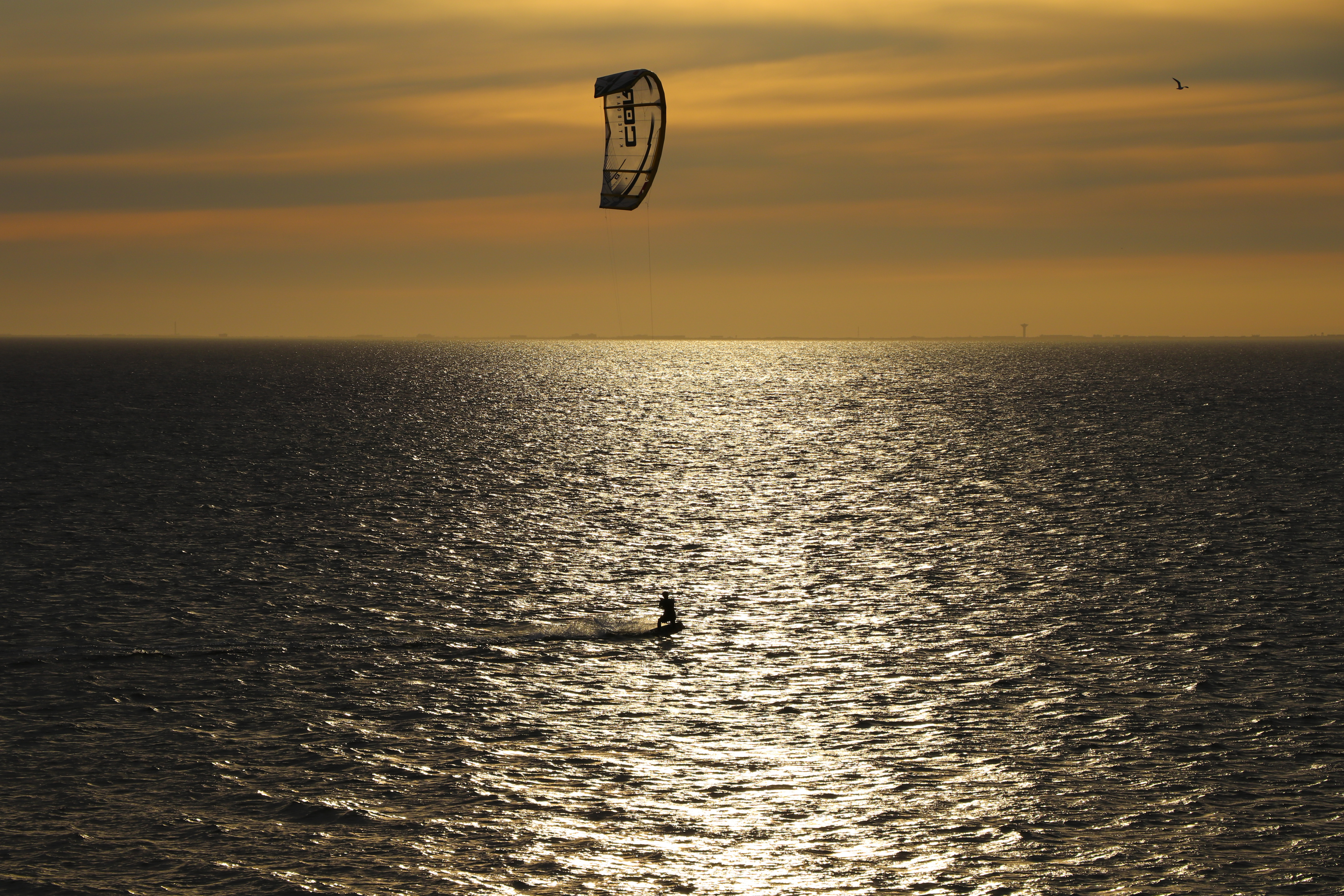 Während die leckeren selbstgesuchten Herzmuscheln schon auf dem Herd brutzeln, gibt es nochmal eine Abend-Kite-Session. Aber an der Haltung muss Uwe noch arbeiten.