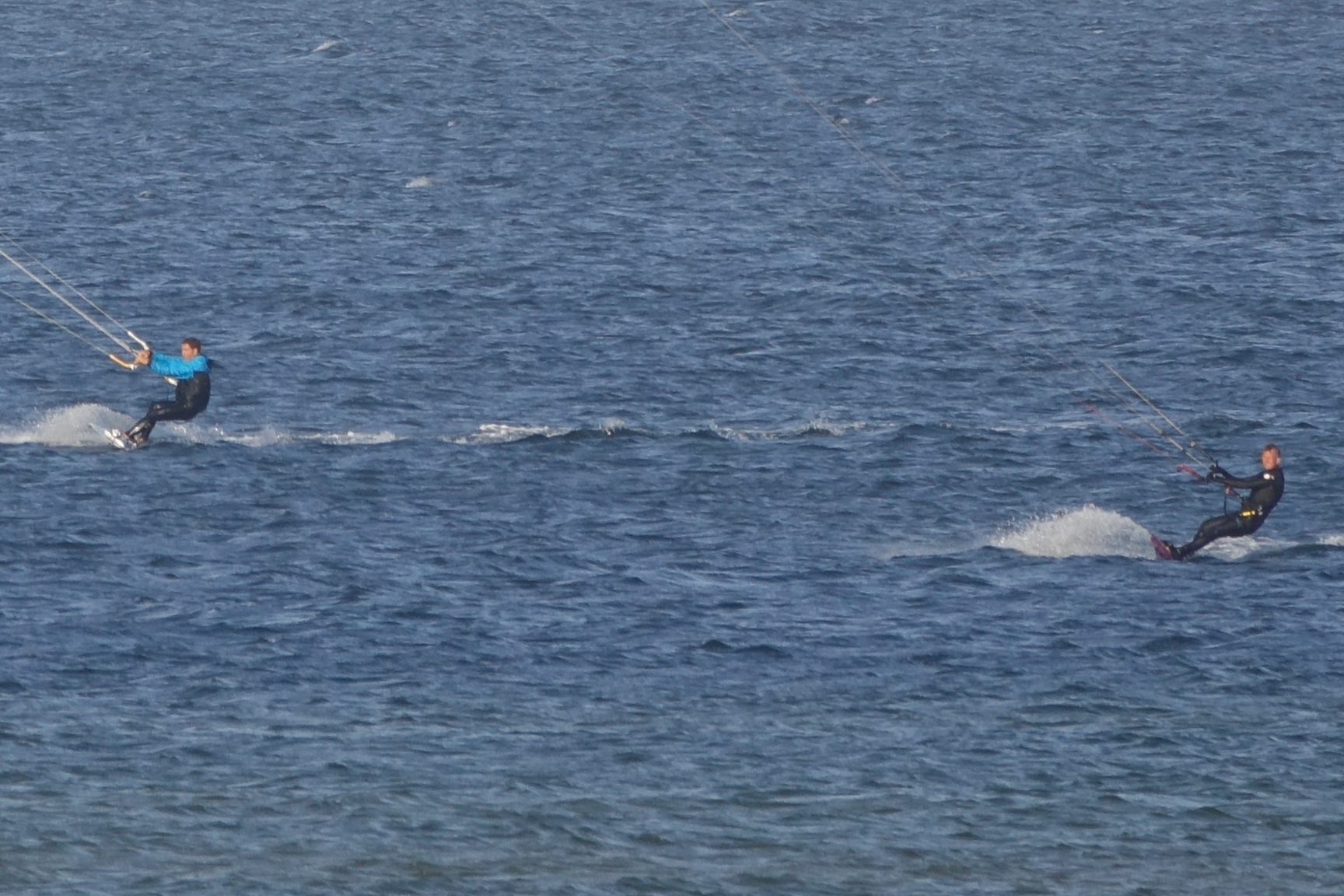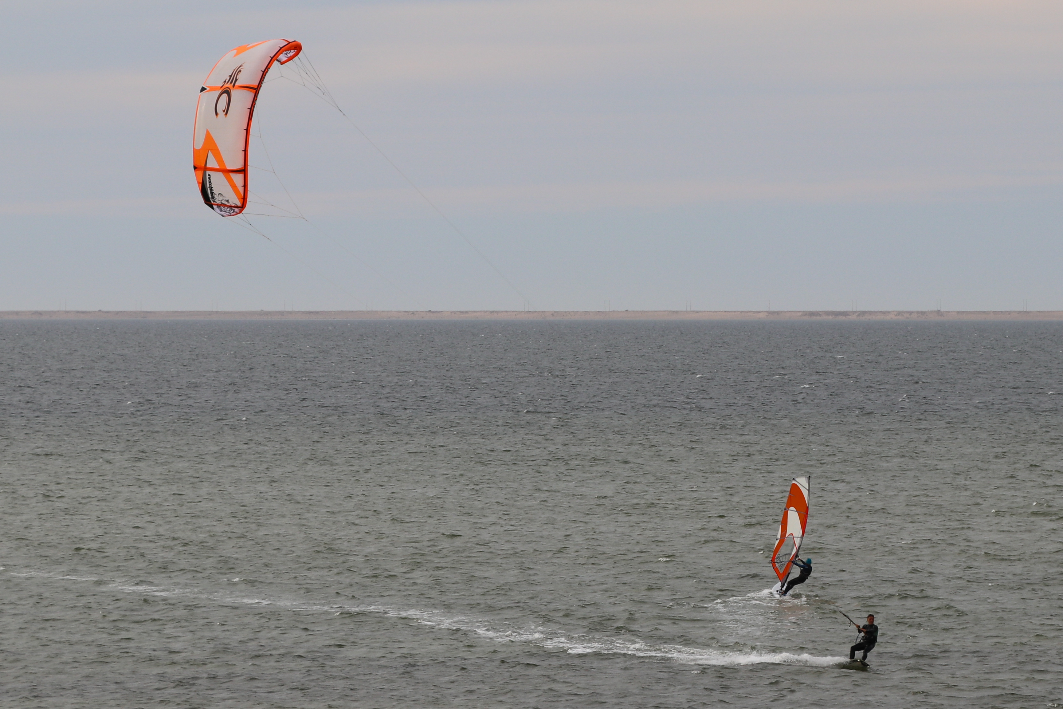 Und abends kommt tatsächlich noch ein Lüftchen (5 Beaufort) und wir können surfen und Kiten.