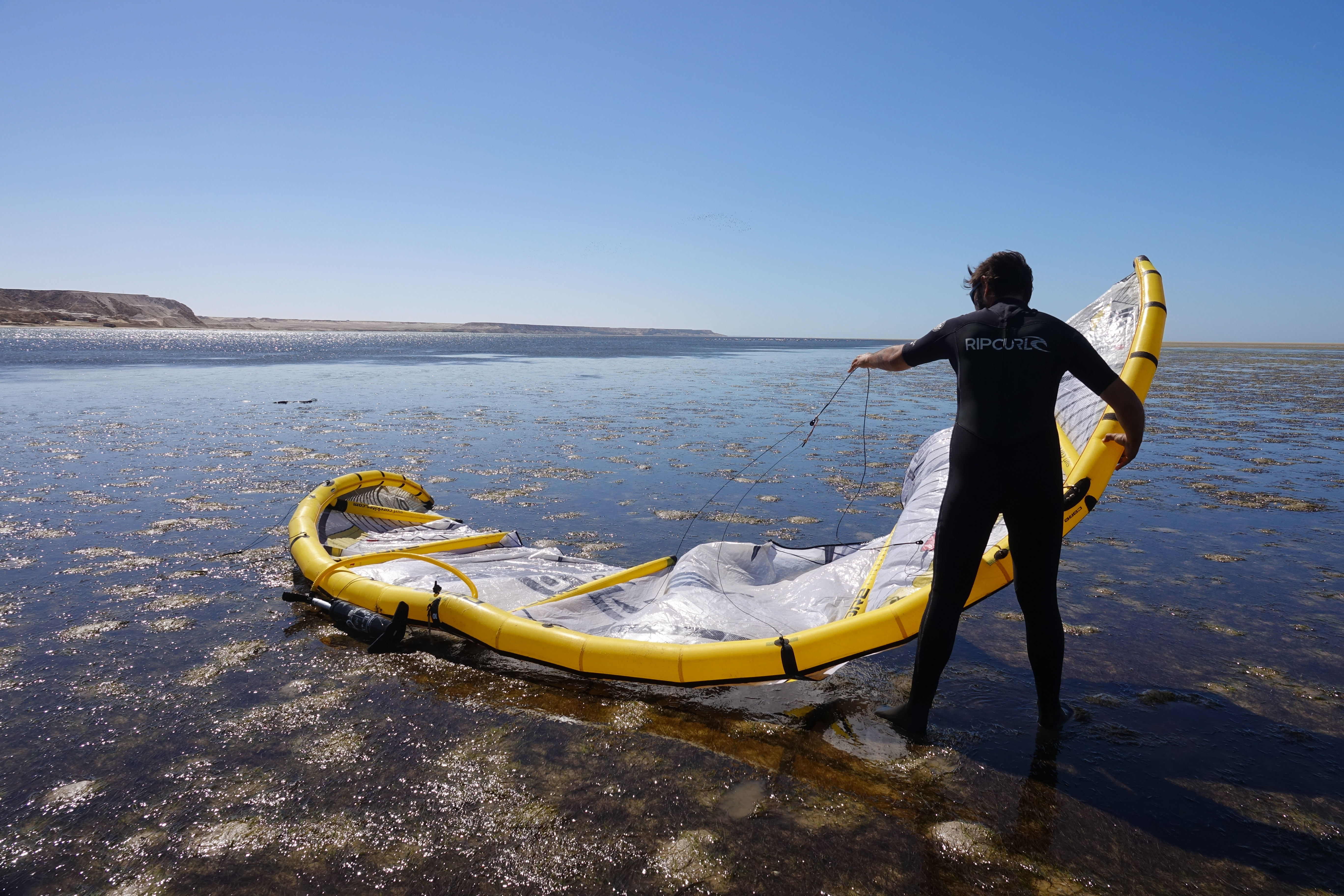 Damit die Kites nicht so sandig werden, starten wir heute direkt vom Wasser aus.